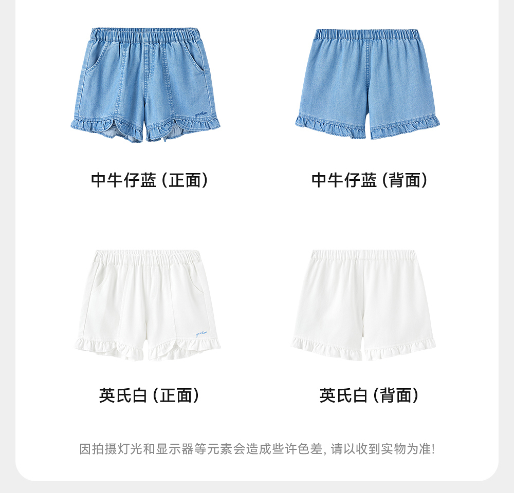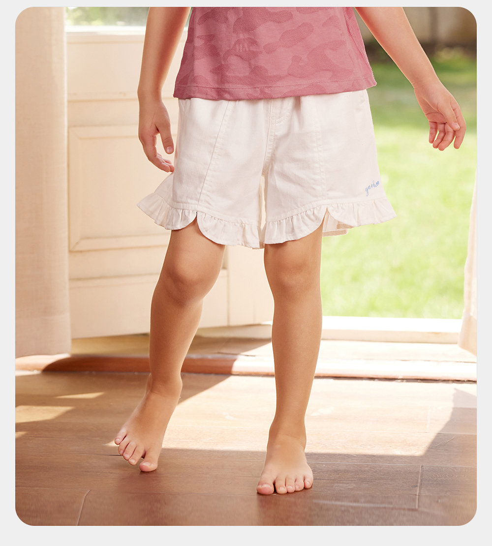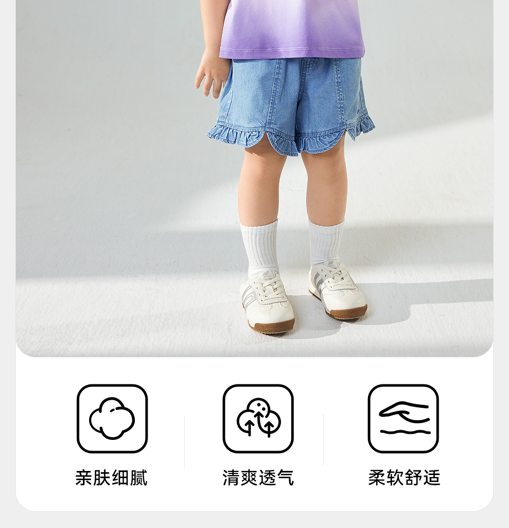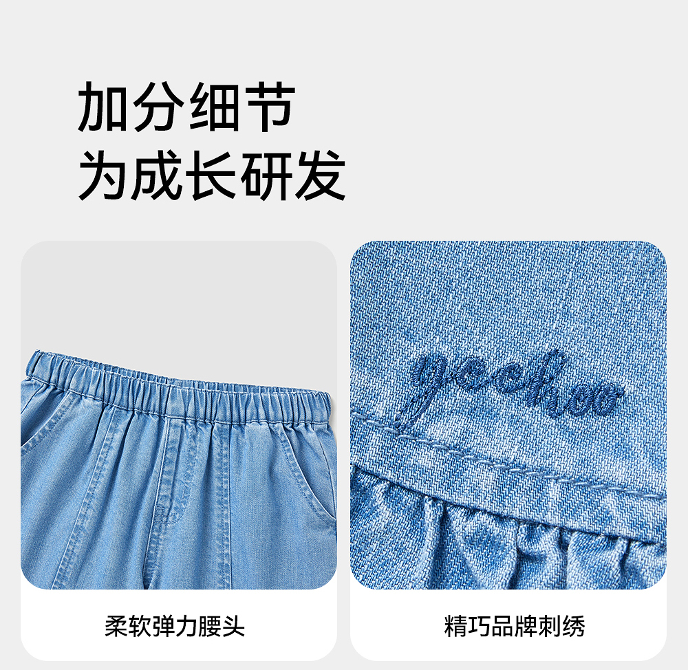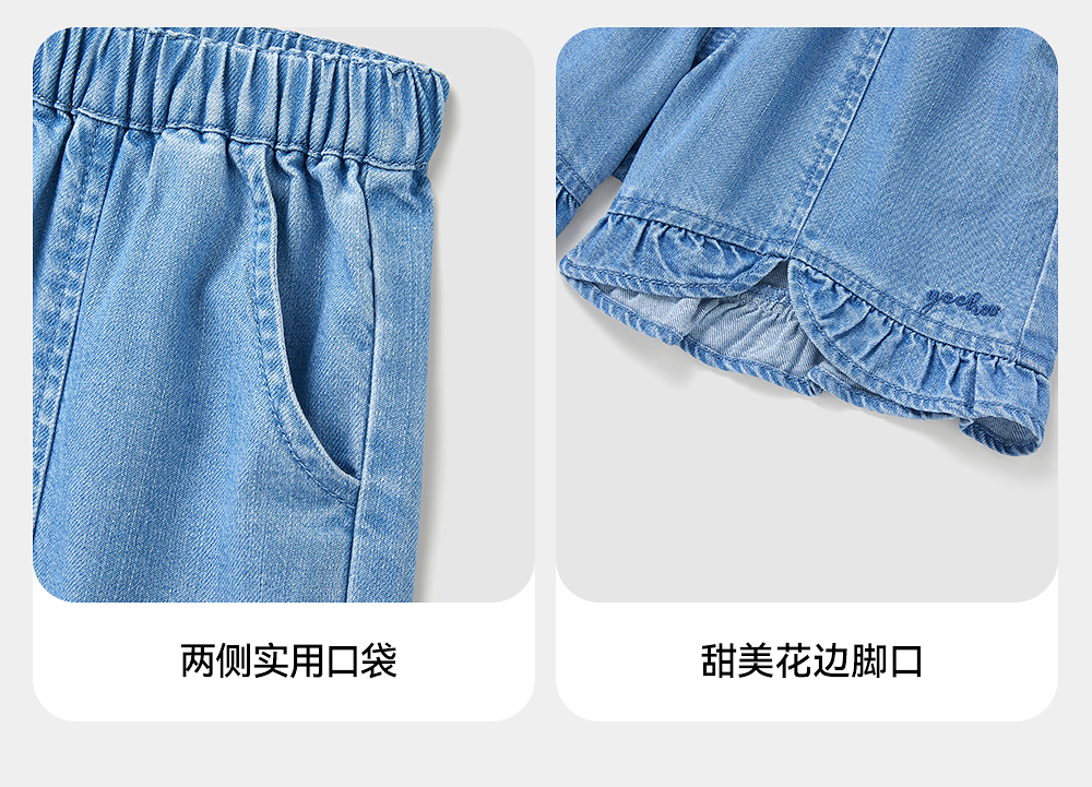 英氏儿童裤子夏季女宝休闲牛仔裤透气宽松短裤2025新款女童裤子