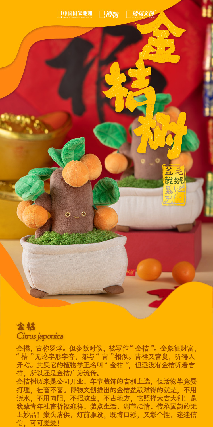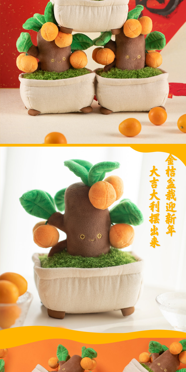 博物文创 金桔树毛绒仿真盆景摆件大吉大利新年春节礼物