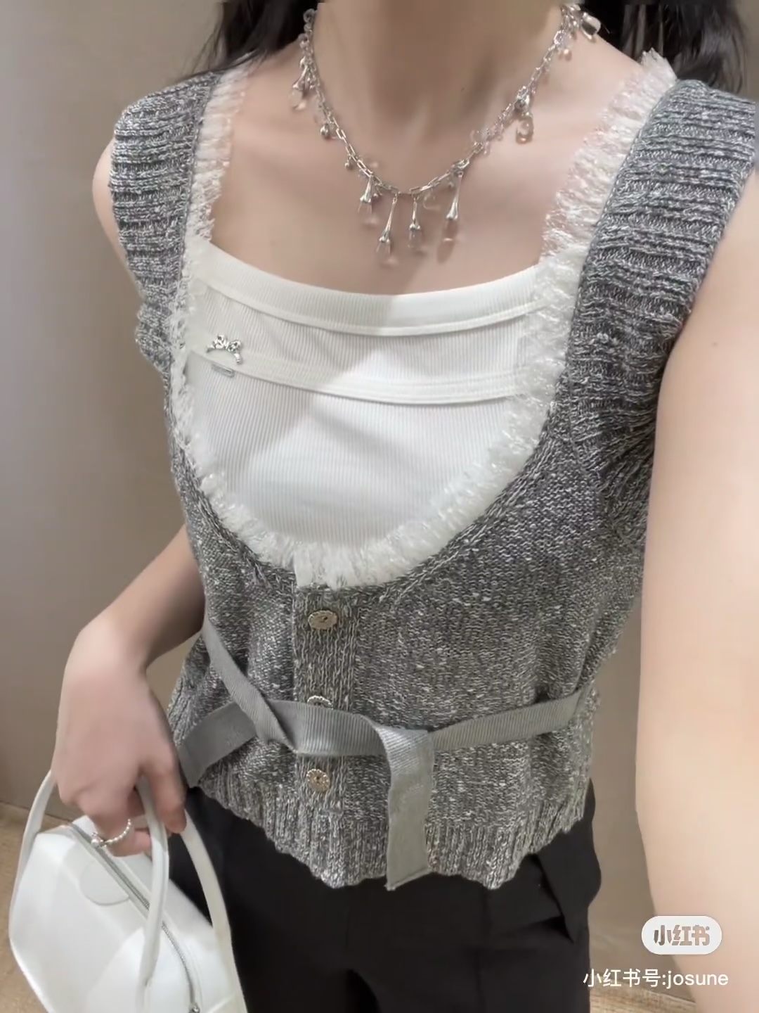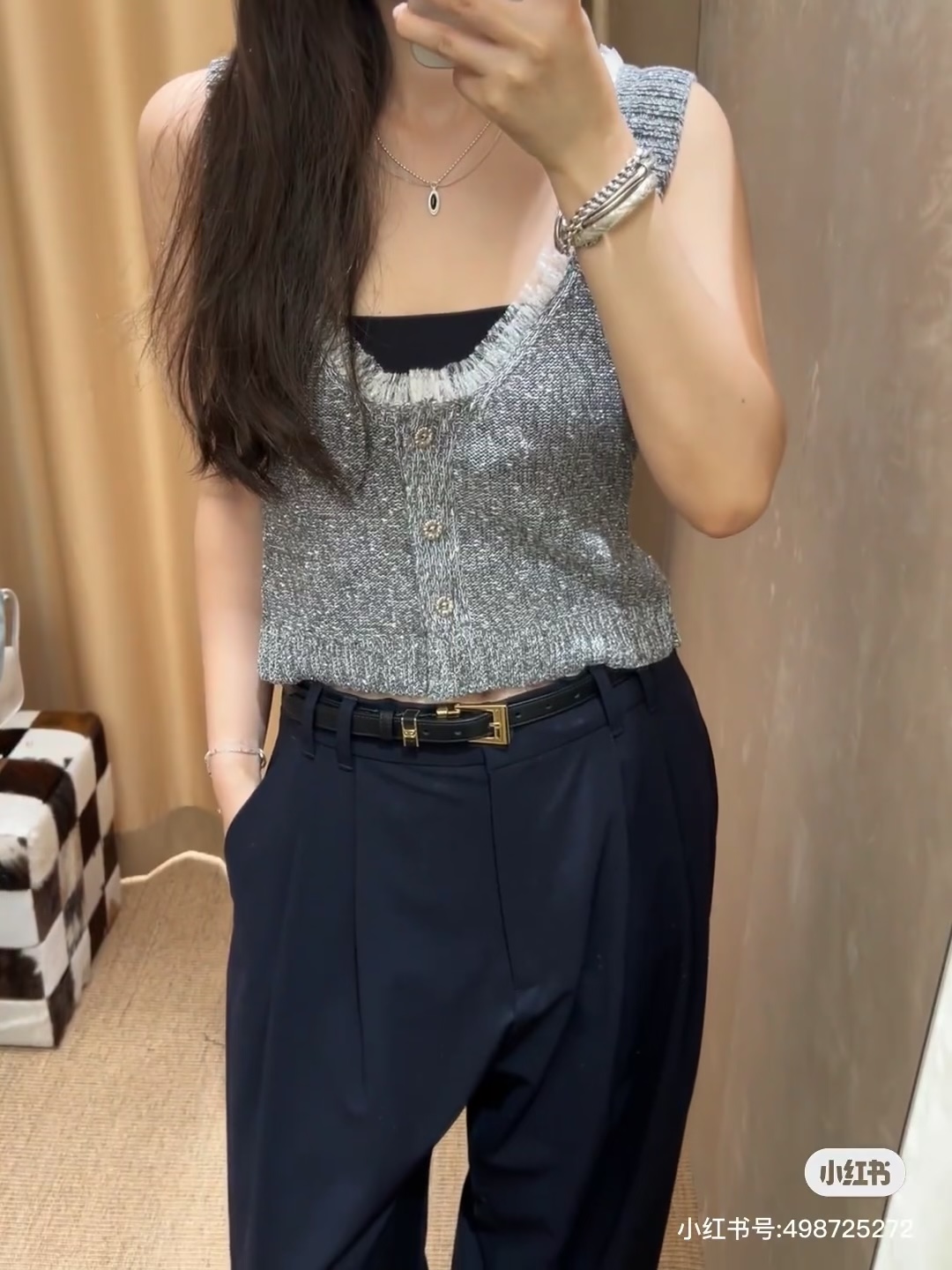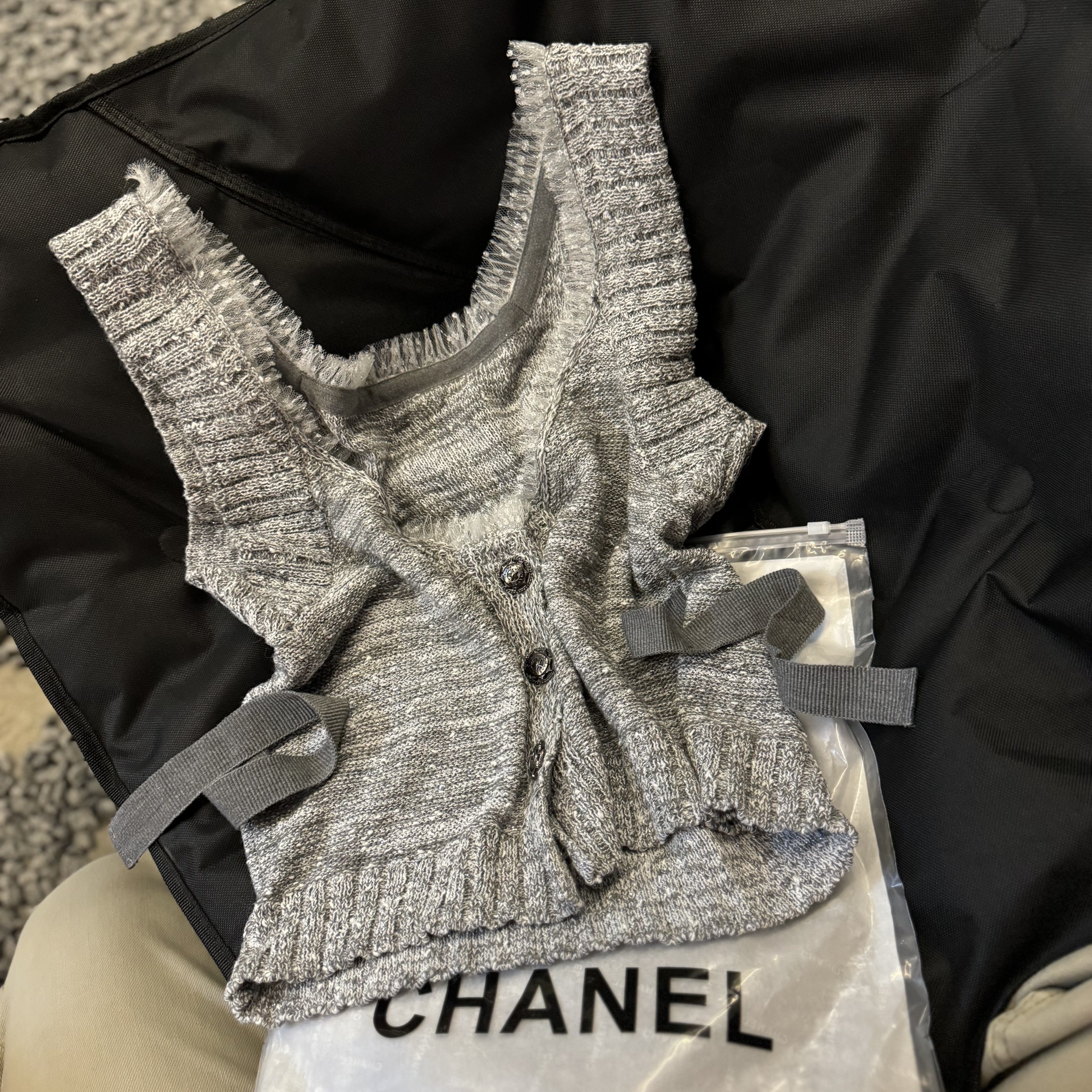 这个一定要买!必需重点推荐!!香奈儿真的绝!绝美!!之前正价没舍得入手的,今天这个价格一定别错过!这才是真正媲美专柜的Chanel 灰色花呢马甲!穿梭于经典与现代之间,千金风马甲,每一针一线,都透露着香奈儿对美的追求与执着。银线蕾丝腰带的编织,如同夏日的彩虹,绚烂而不失温柔。洗标!羊毛含量百分之85 香奈儿经典花呢,高级灰色调!银线!精湛的编织工艺、顶级的材质选择和细节的把控,衣橱里挂着,看到都是视觉享受!38码80-110斤!40码100-130斤以内⚠️