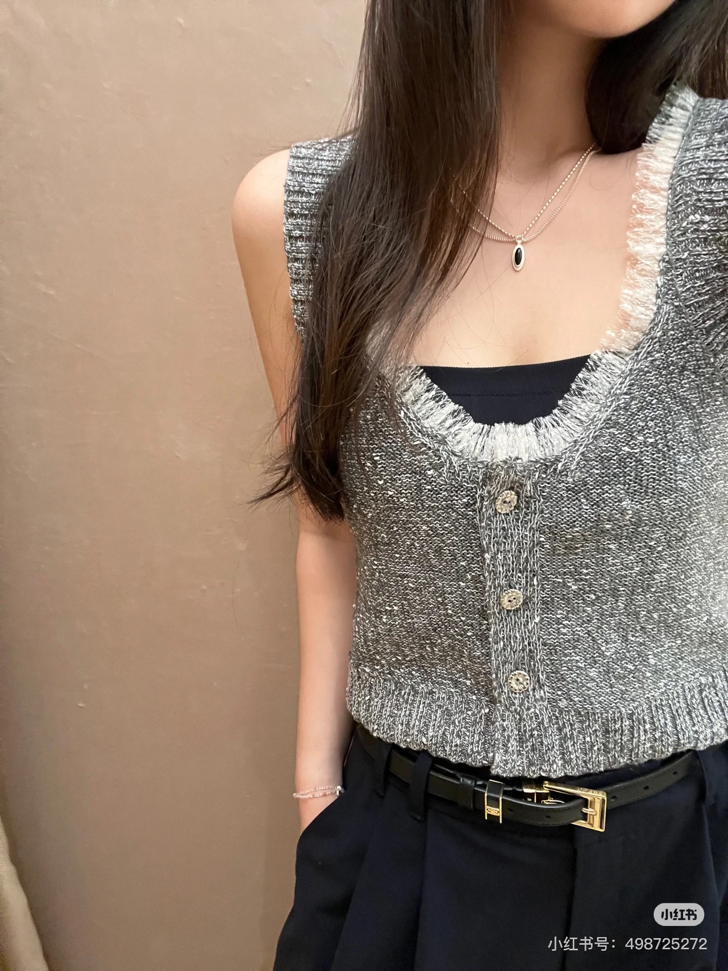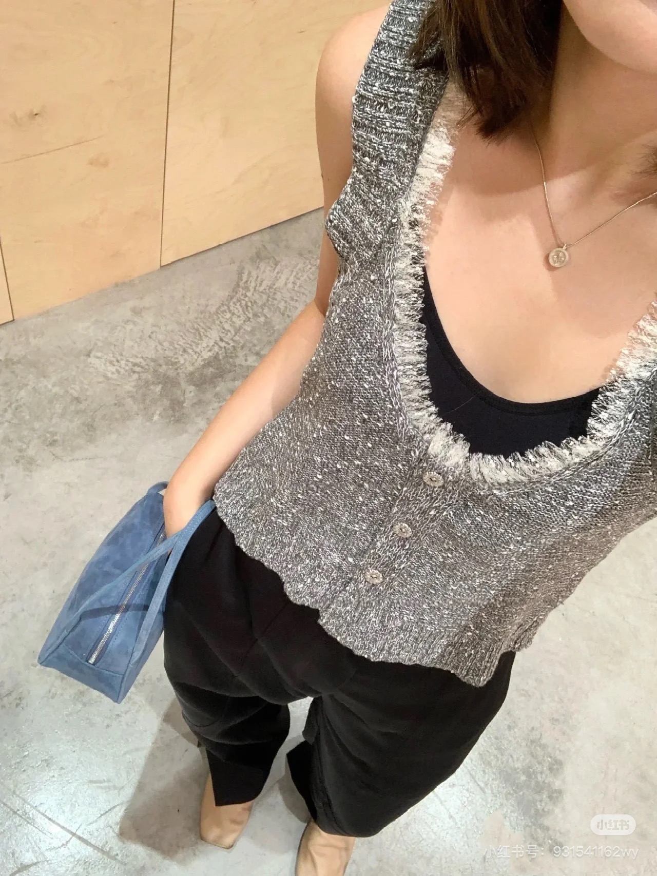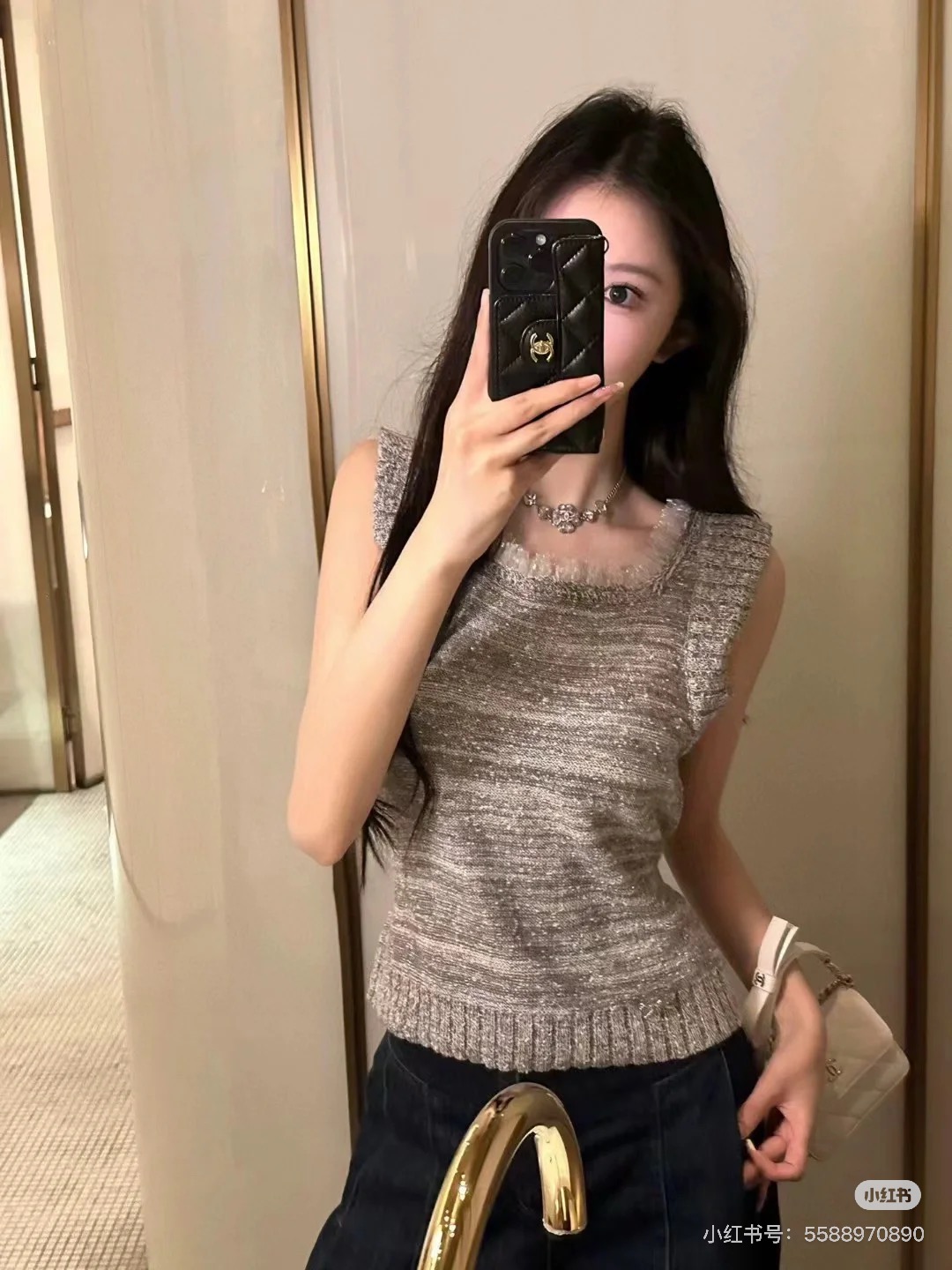 这个一定要买!必需重点推荐!!香奈儿真的绝!绝美!!之前正价没舍得入手的,今天这个价格一定别错过!这才是真正媲美专柜的Chanel 灰色花呢马甲!穿梭于经典与现代之间,千金风马甲,每一针一线,都透露着香奈儿对美的追求与执着。银线蕾丝腰带的编织,如同夏日的彩虹,绚烂而不失温柔。洗标!羊毛含量百分之85 香奈儿经典花呢,高级灰色调!银线!精湛的编织工艺、顶级的材质选择和细节的把控,衣橱里挂着,看到都是视觉享受!38码80-110斤!40码100-130斤以内⚠️