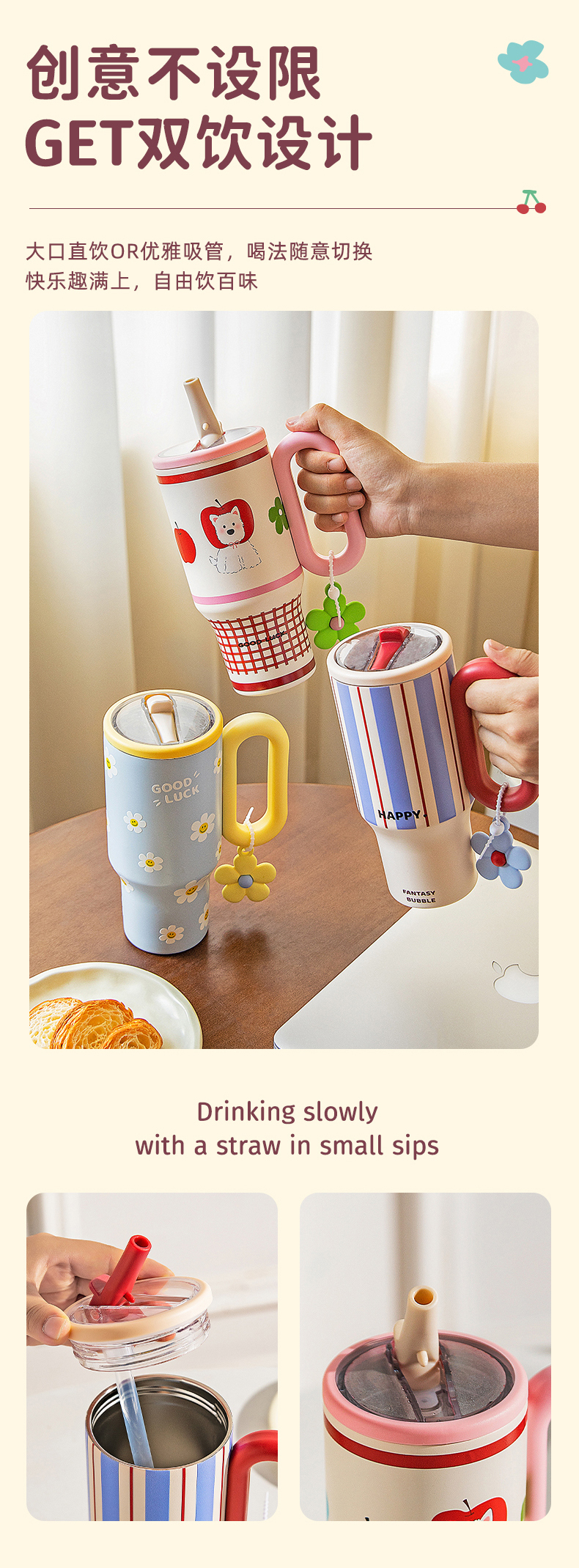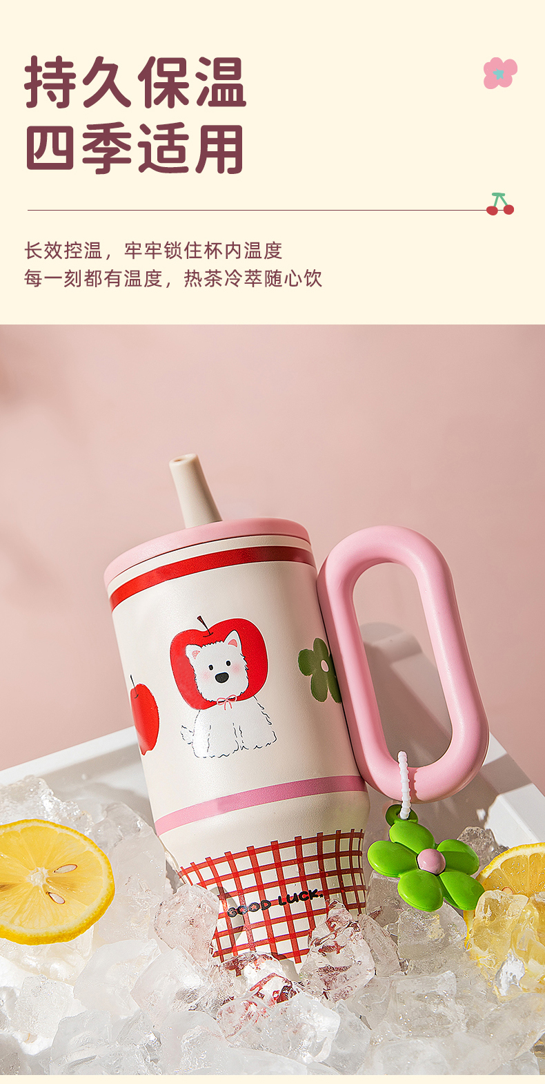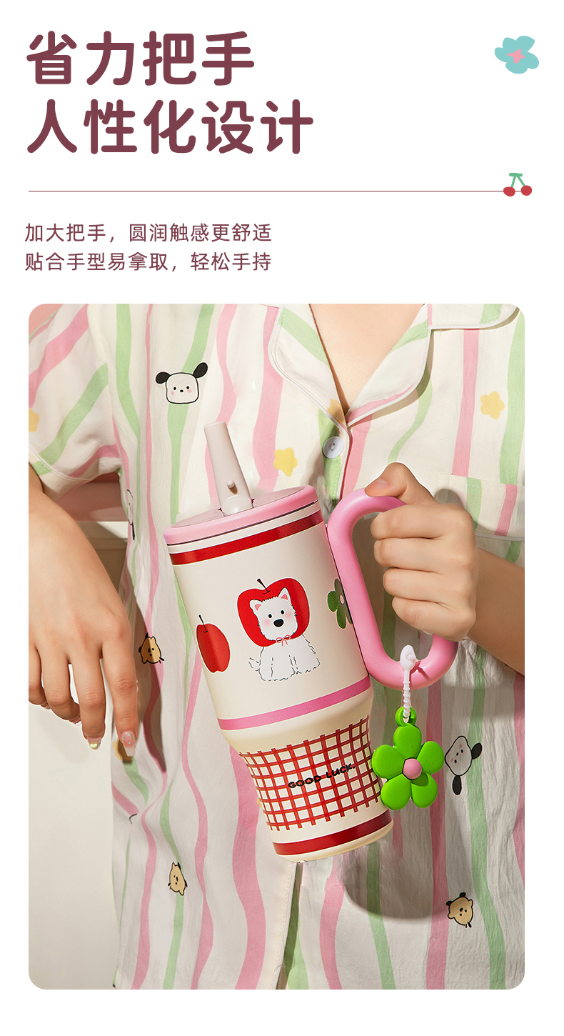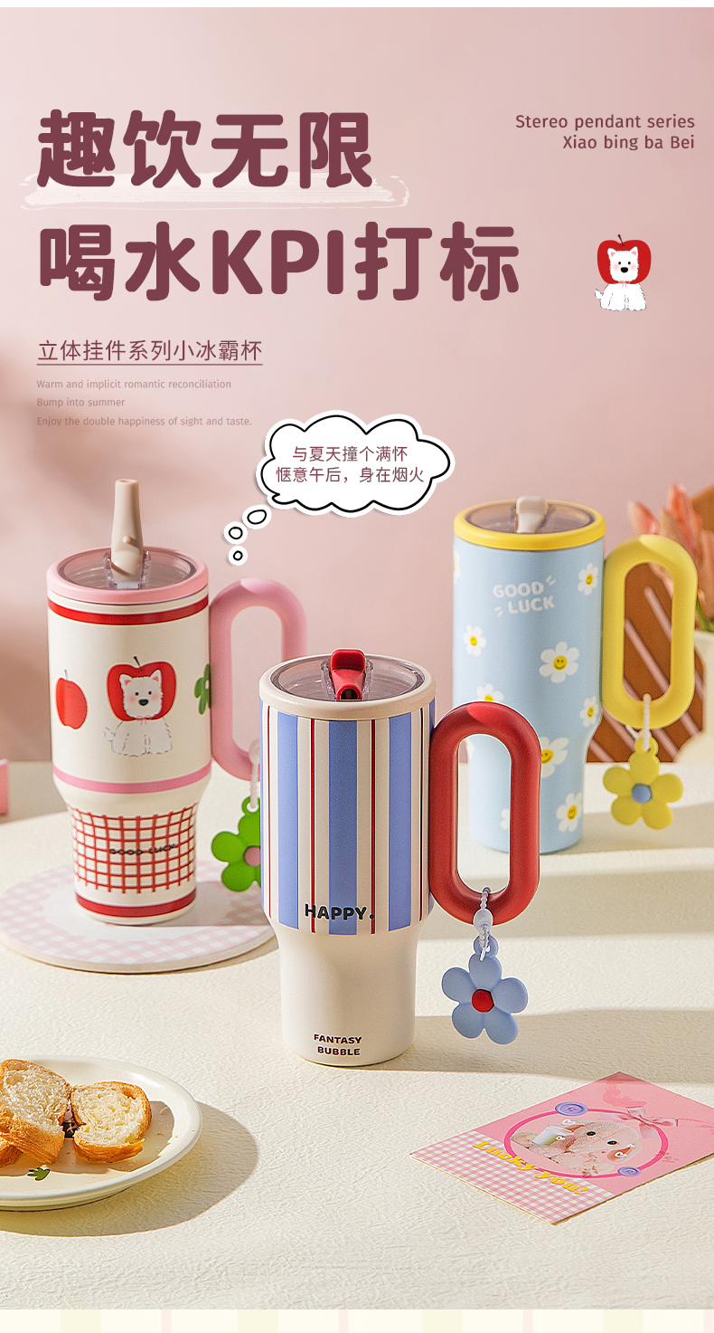 摩登主妇保温杯高颜值女生水杯新款儿童冰霸杯挂件大容量吸管杯子