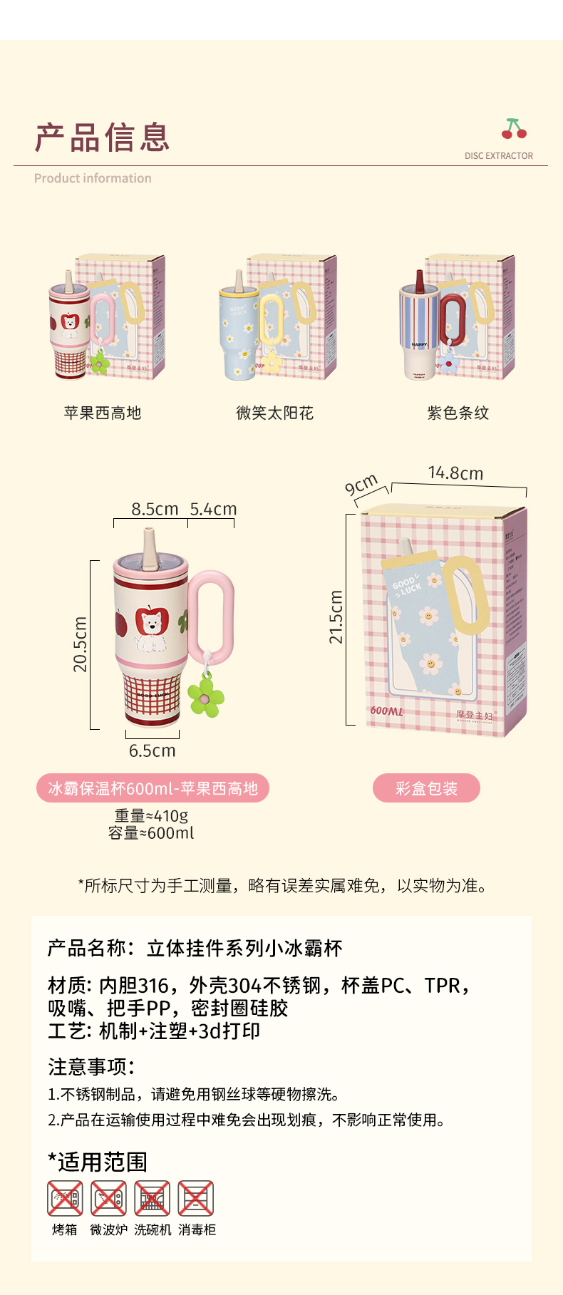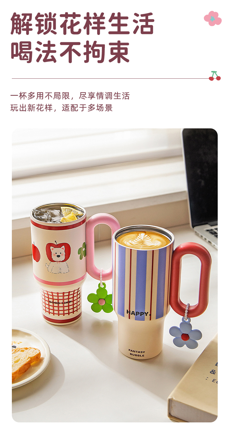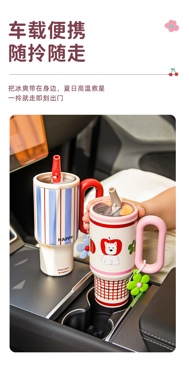 摩登主妇保温杯高颜值女生水杯新款儿童冰霸杯挂件大容量吸管杯子