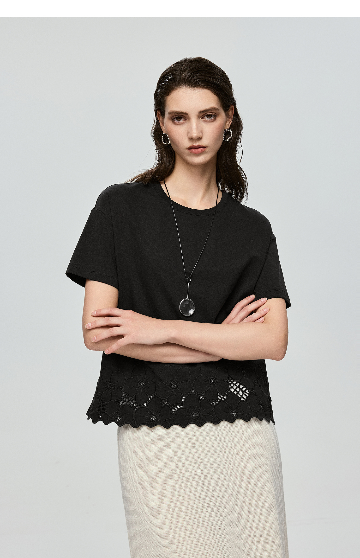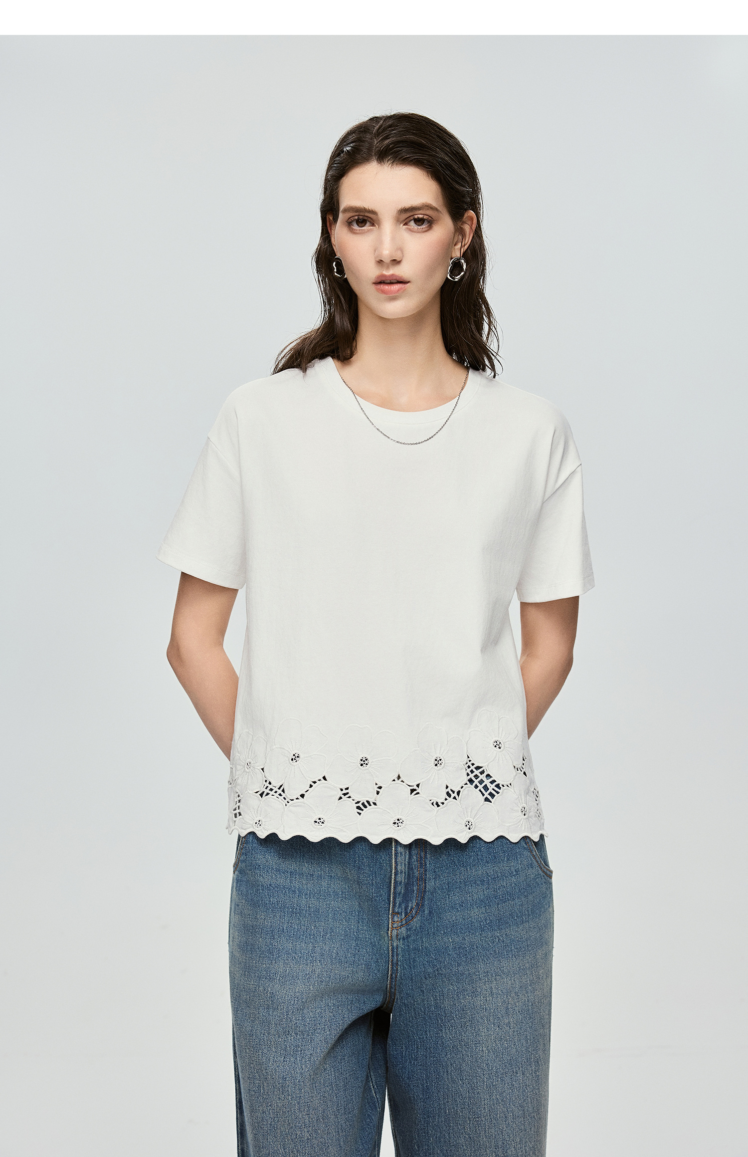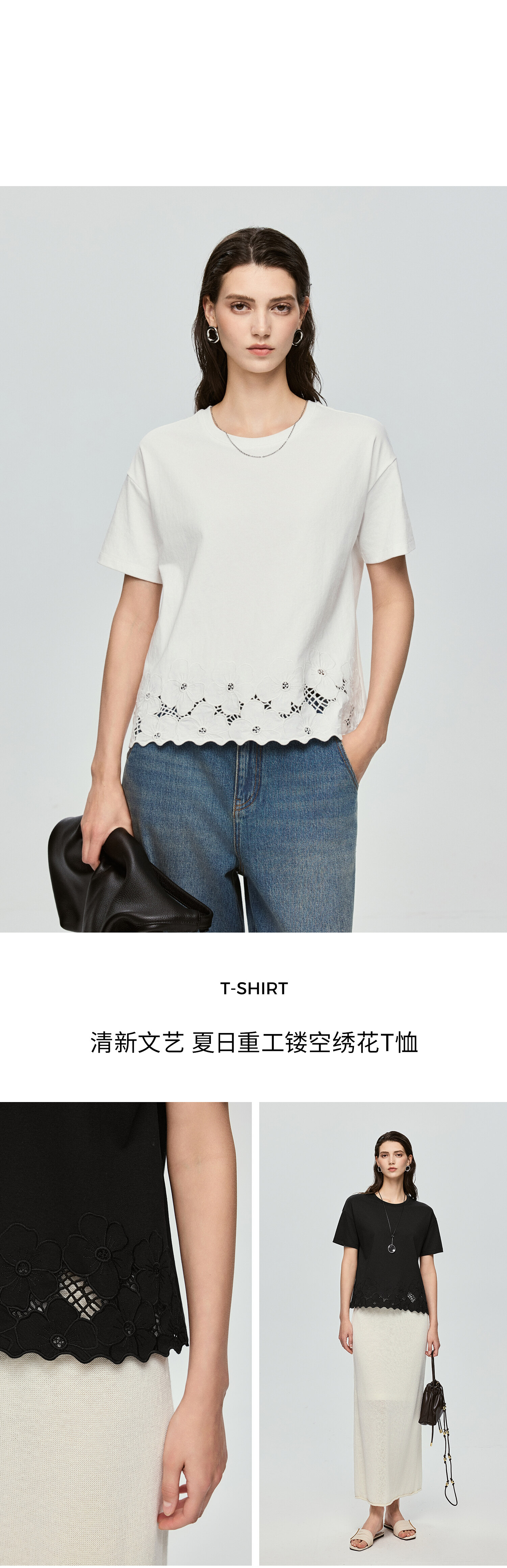 363601040-初棉清新文艺夏日重工镂空绣花T恤上衣