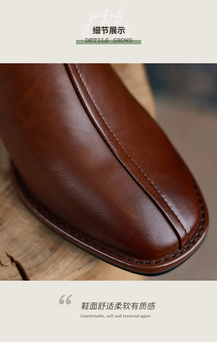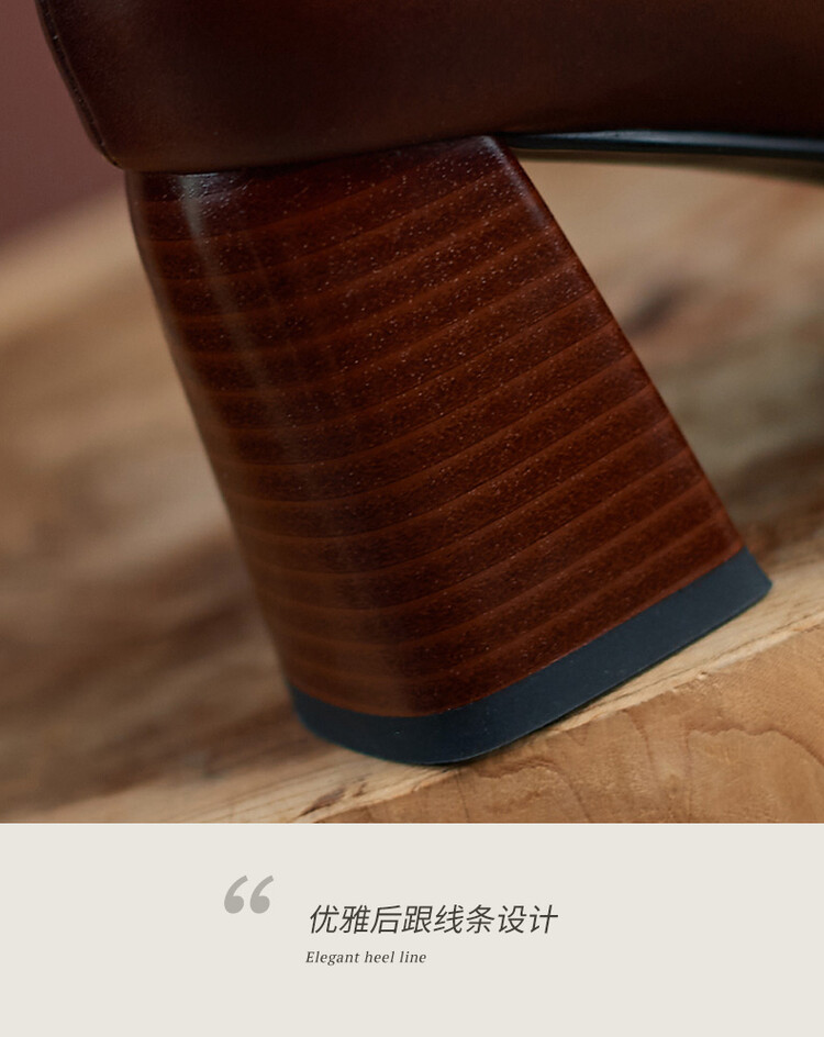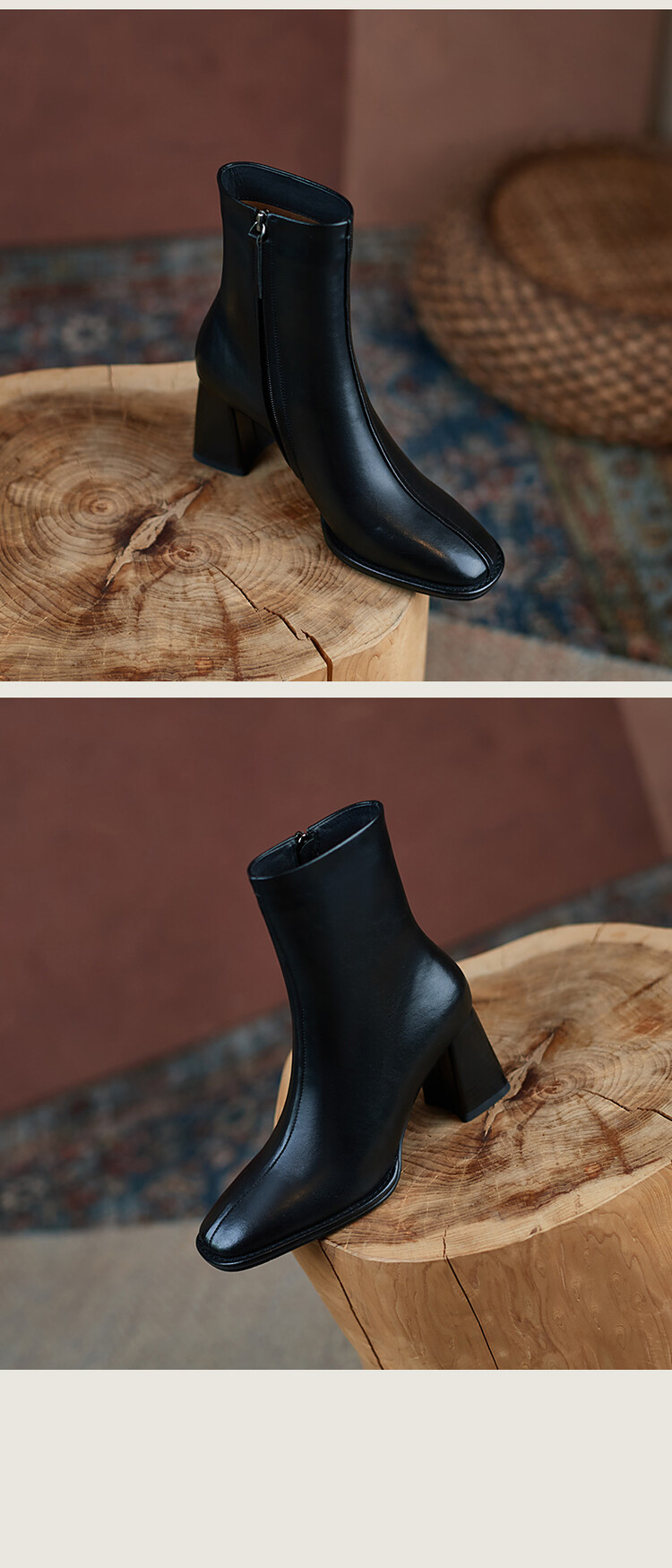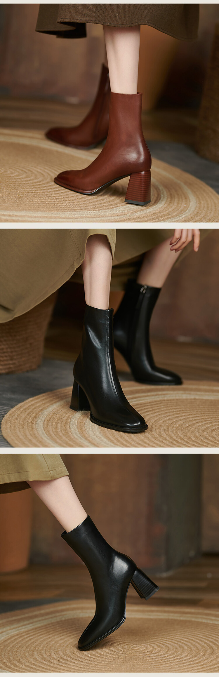 【预售5天】方头粗跟短靴牛皮加绒女靴复古单靴马丁靴高跟瘦瘦靴A08-8
