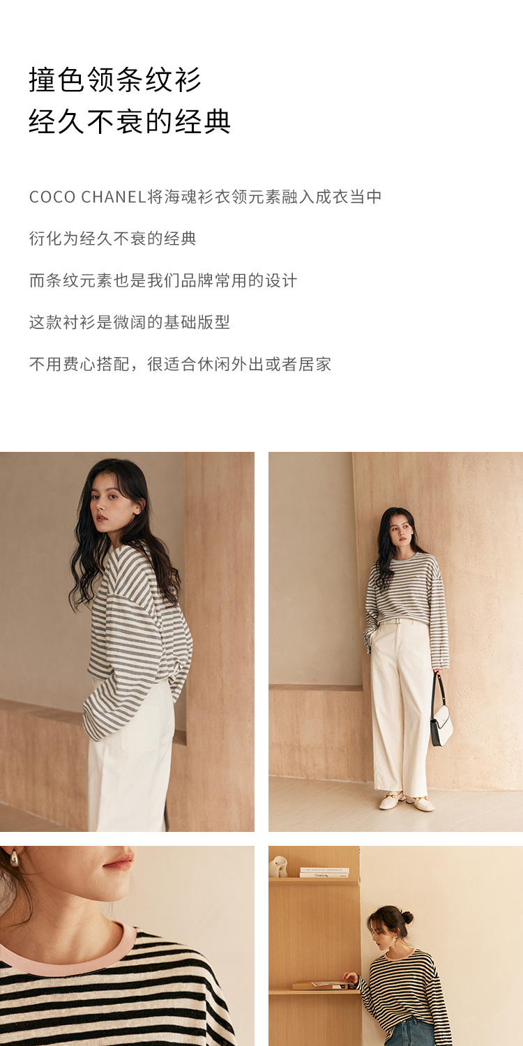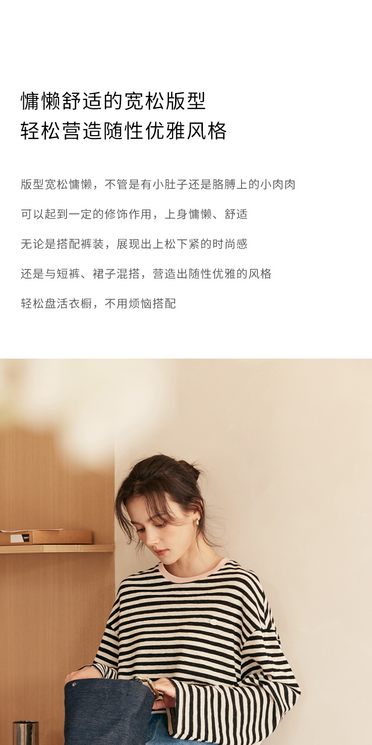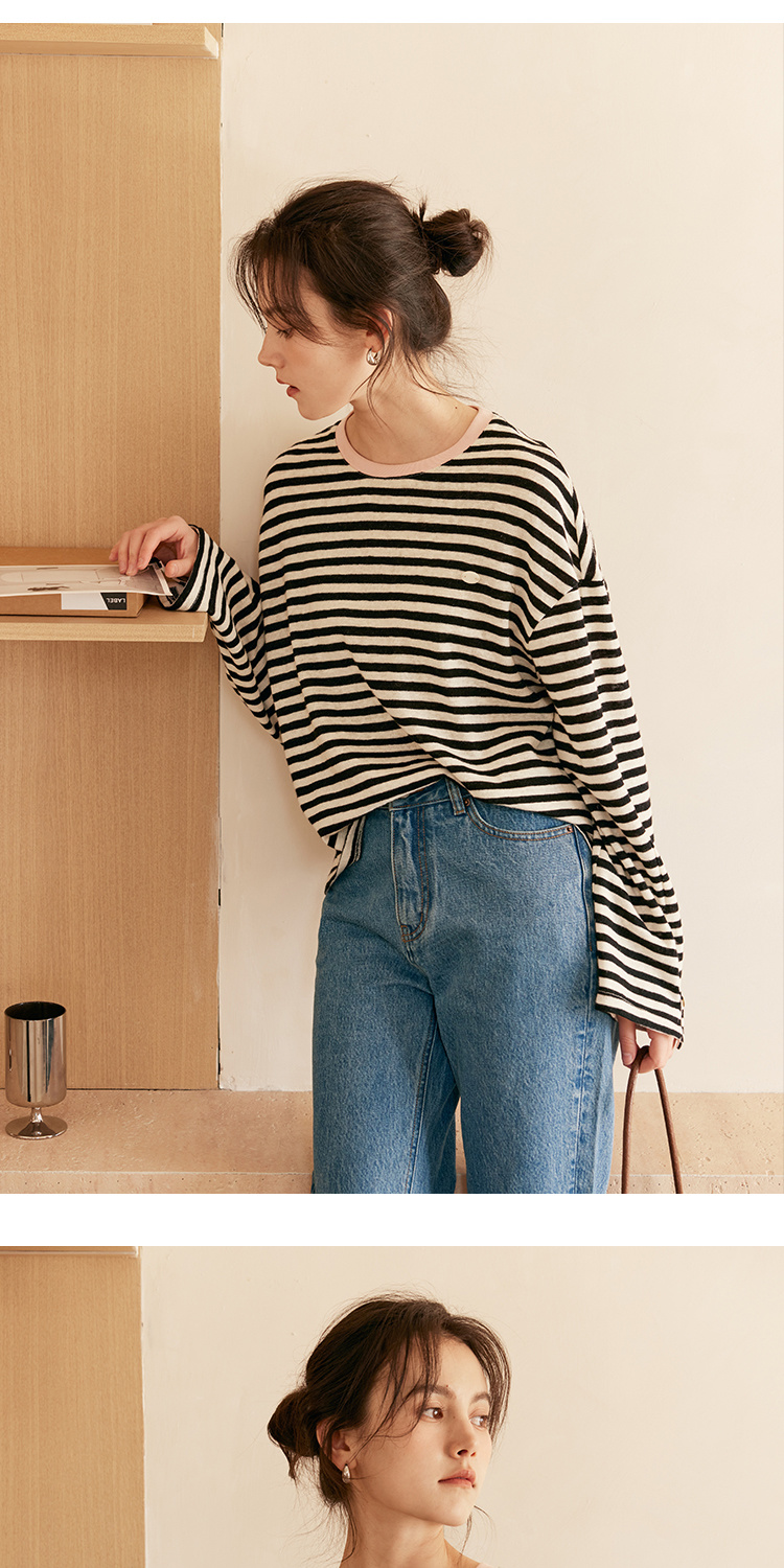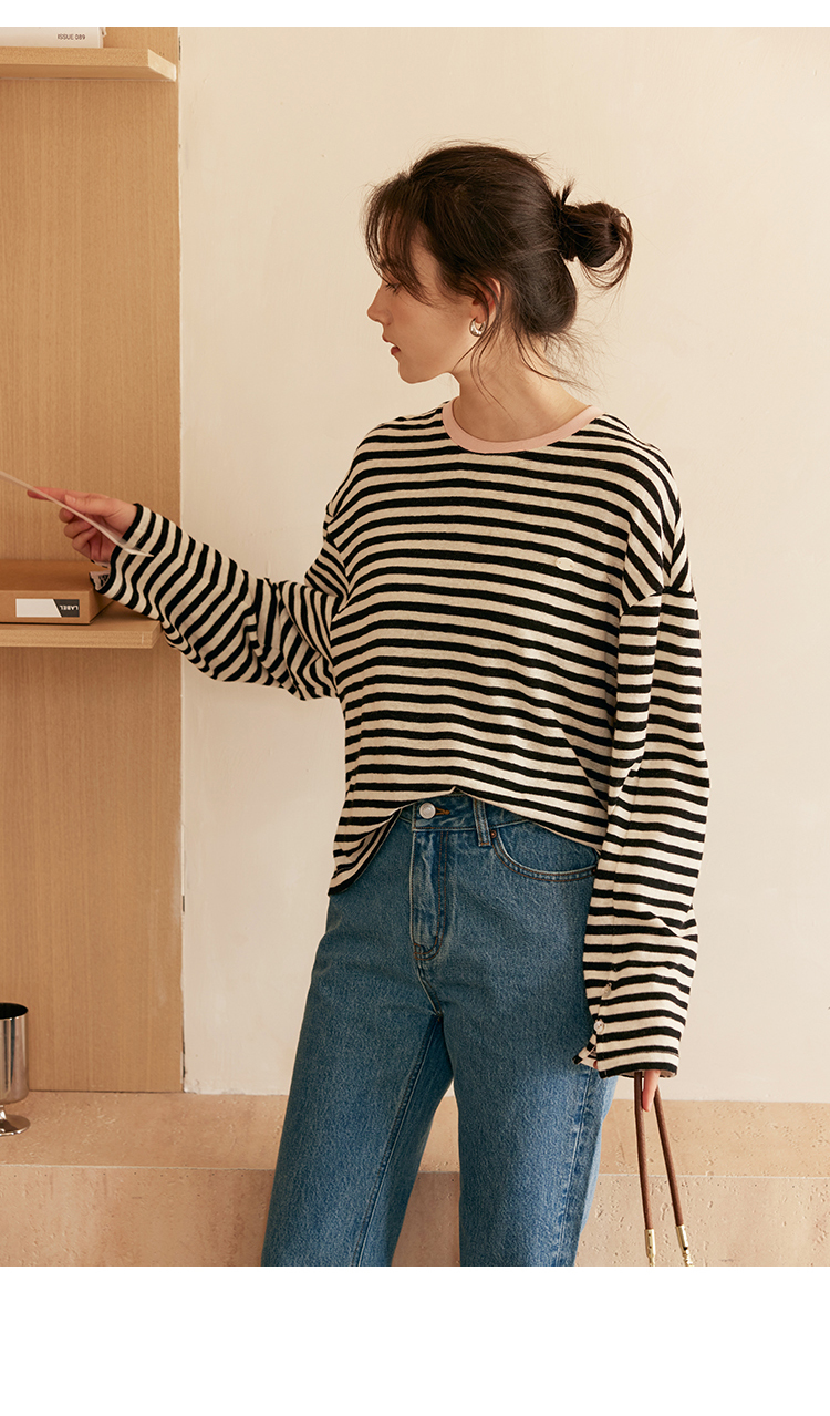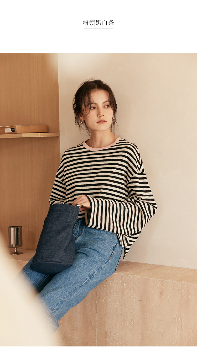 HeyDress撞色领宽松条纹衫