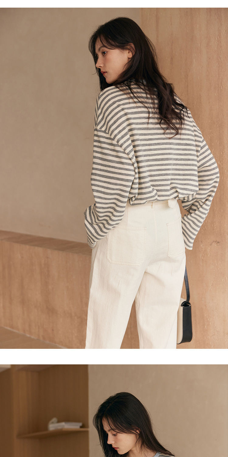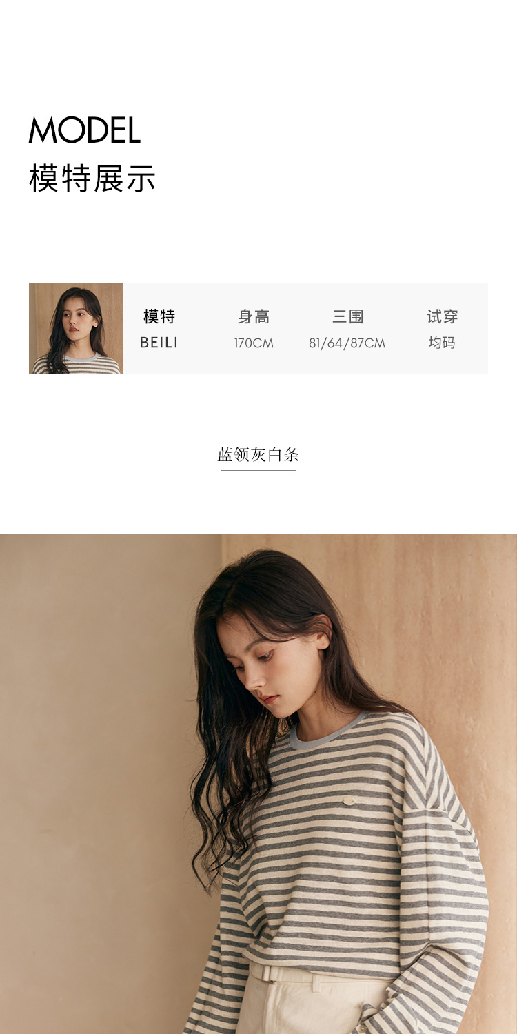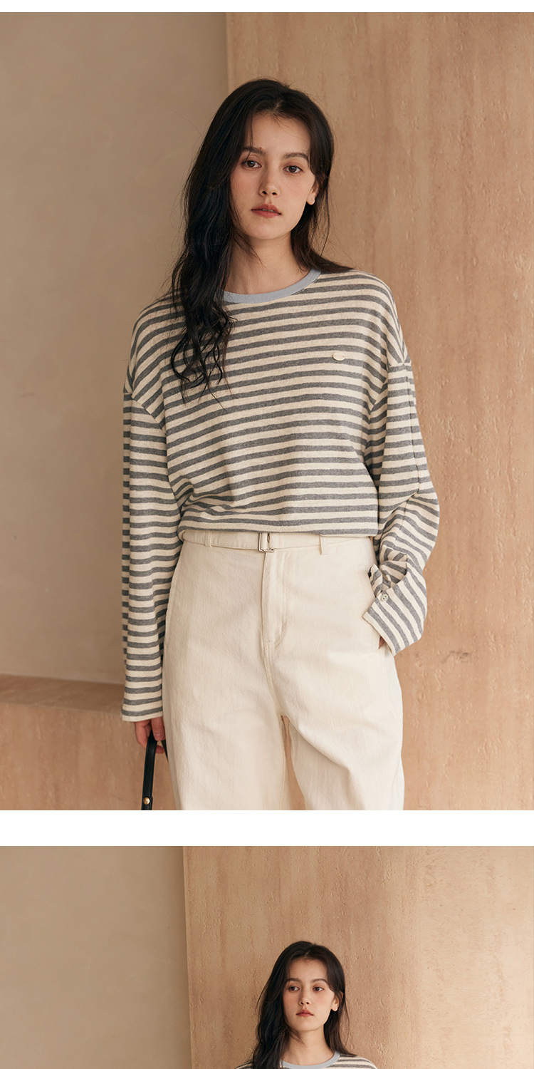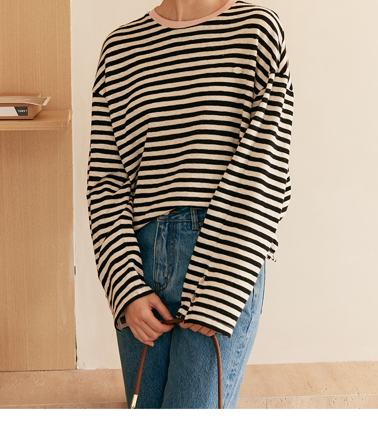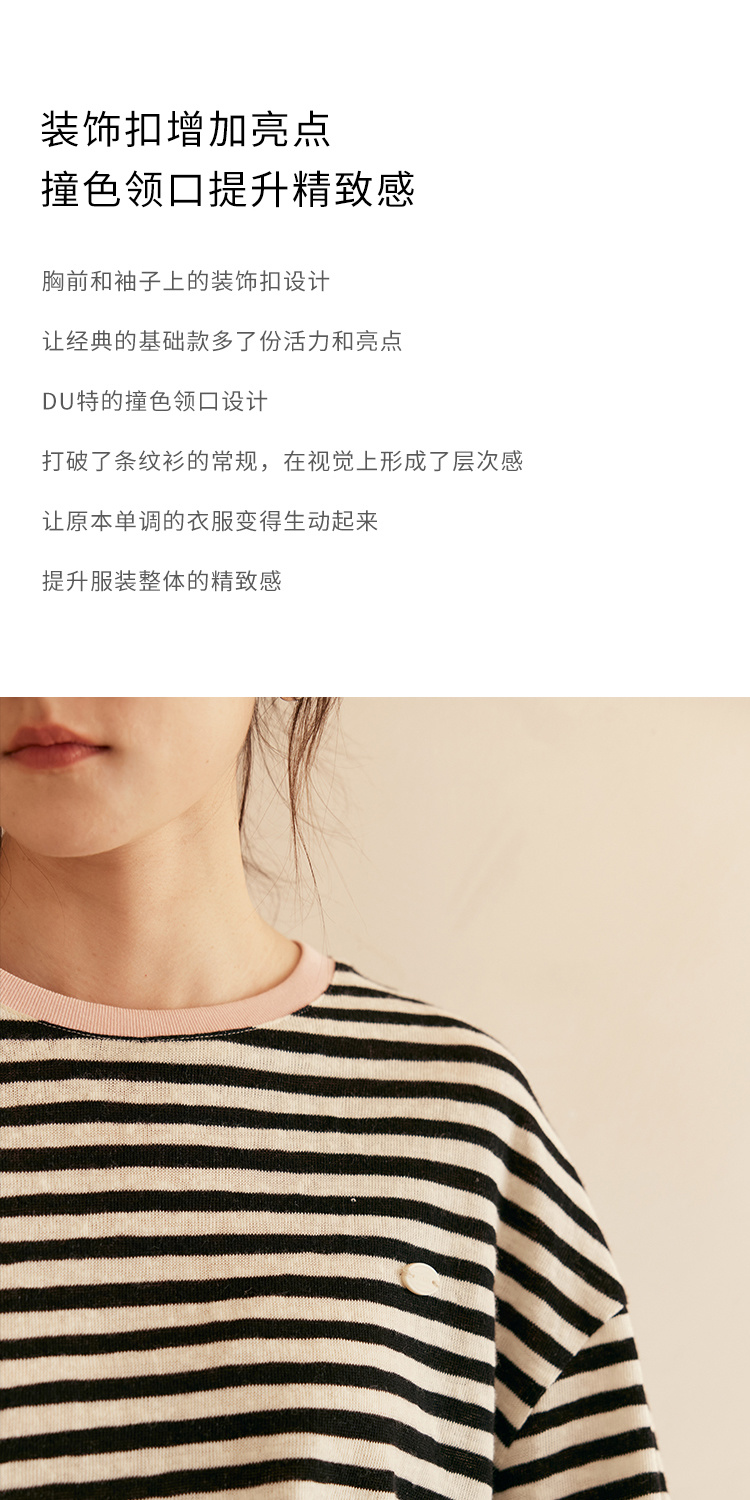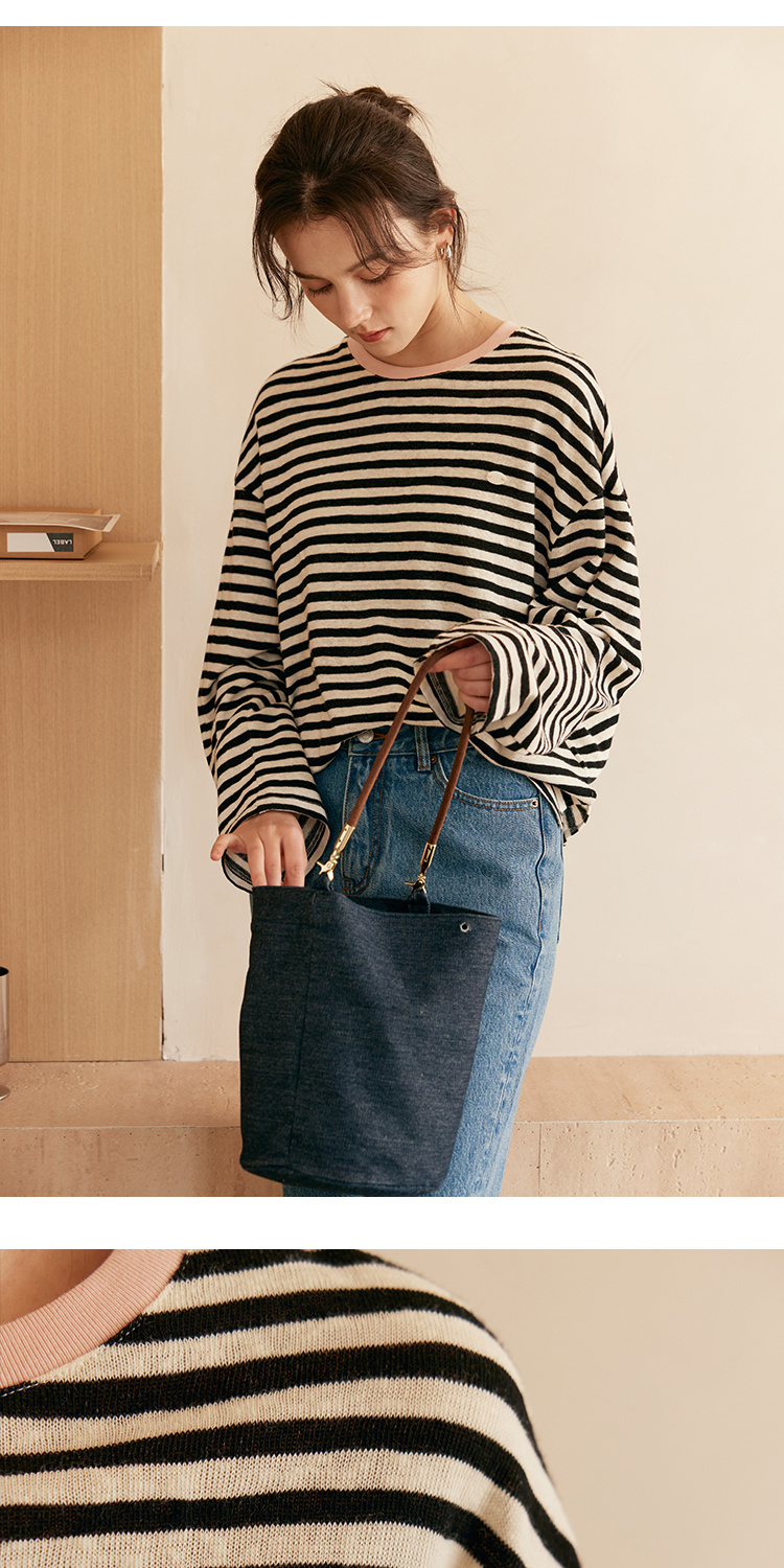 HeyDress撞色领宽松条纹衫