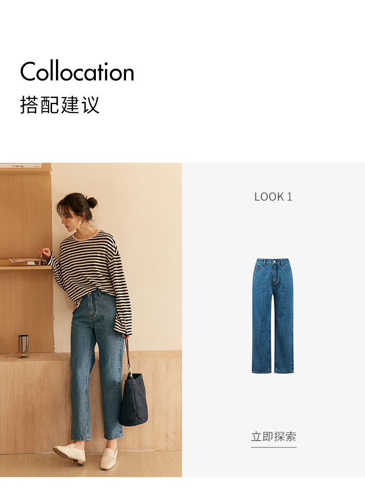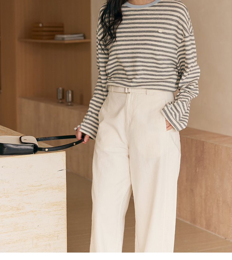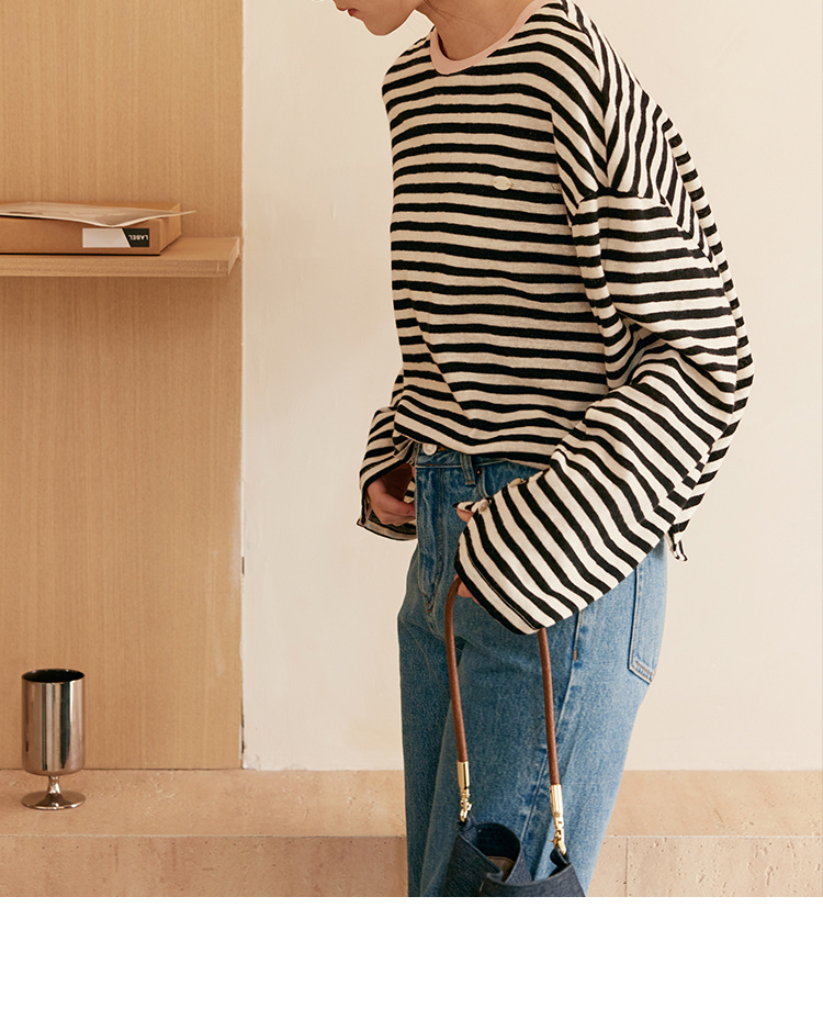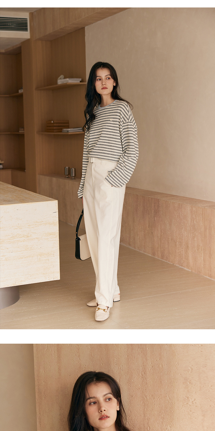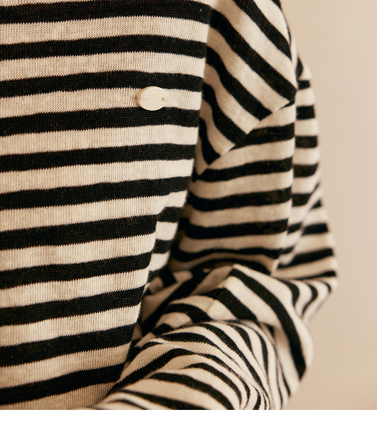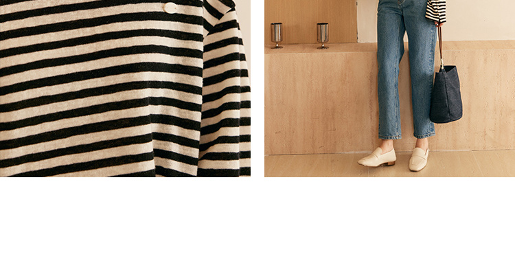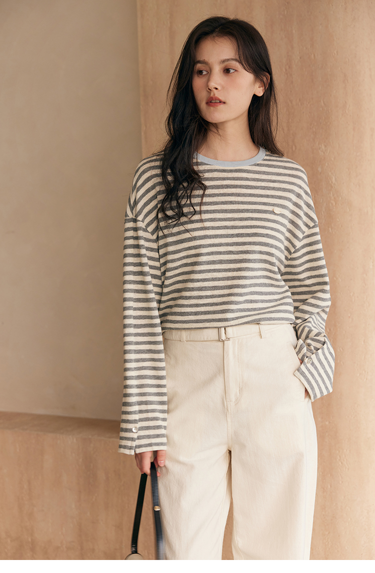 HeyDress撞色领宽松条纹衫