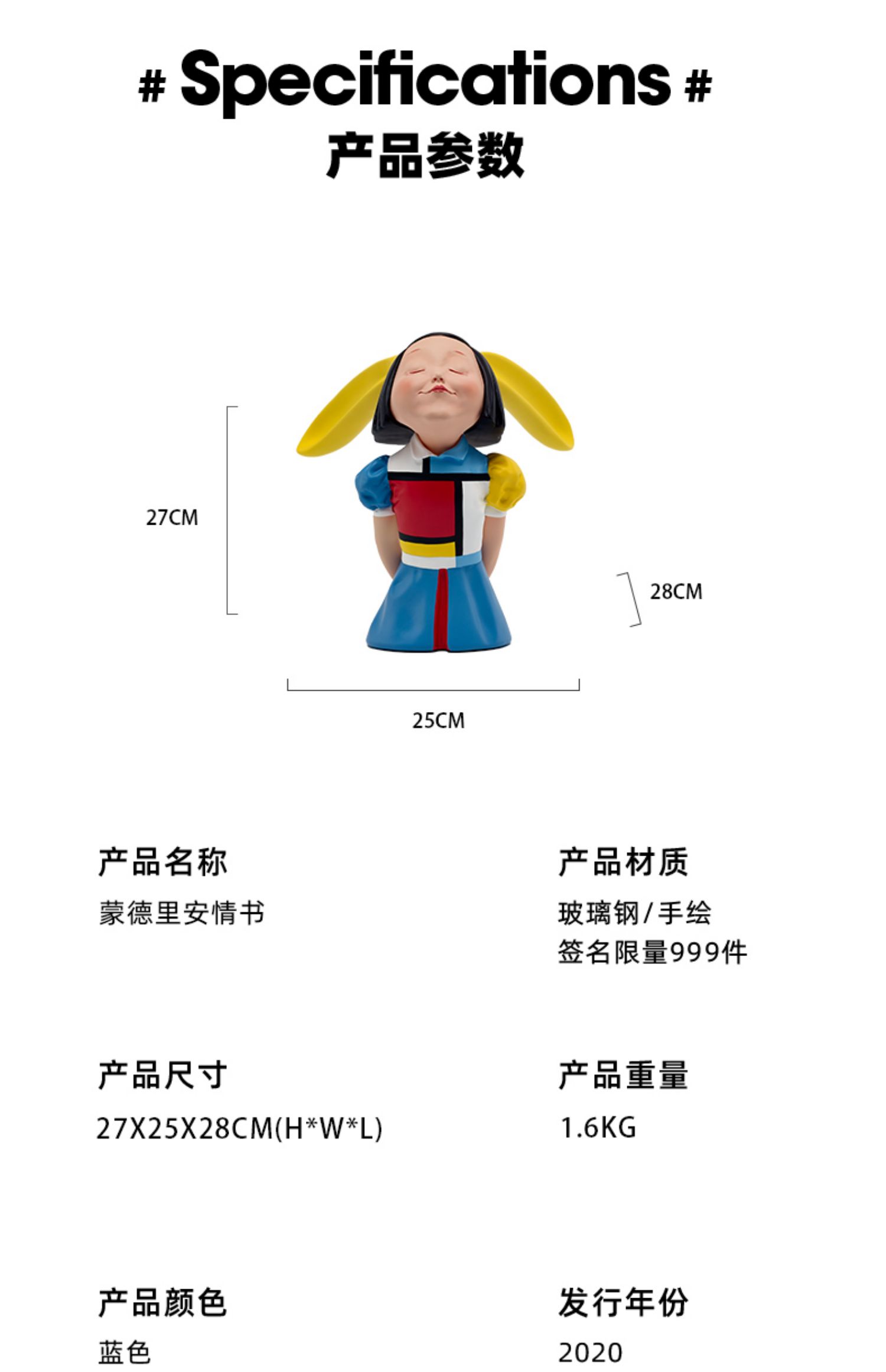 稀奇艺术限量版雕塑摆件《我看到了幸福》-蒙德里安情书