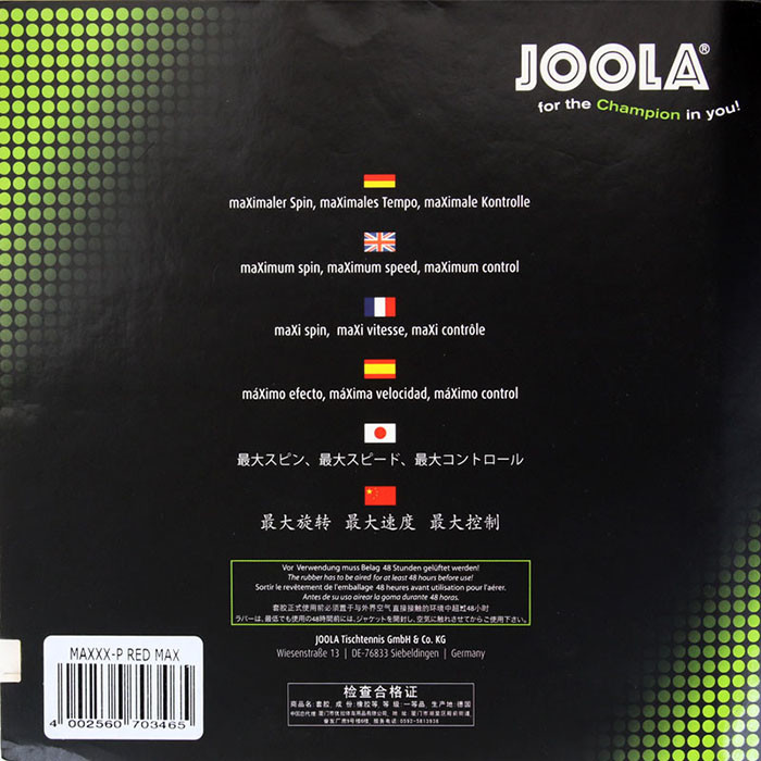 商品名称:优拉JOOLA MAXXX-P 进攻型套胶 塑料球时代旗舰套胶