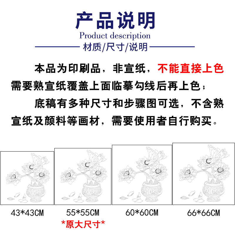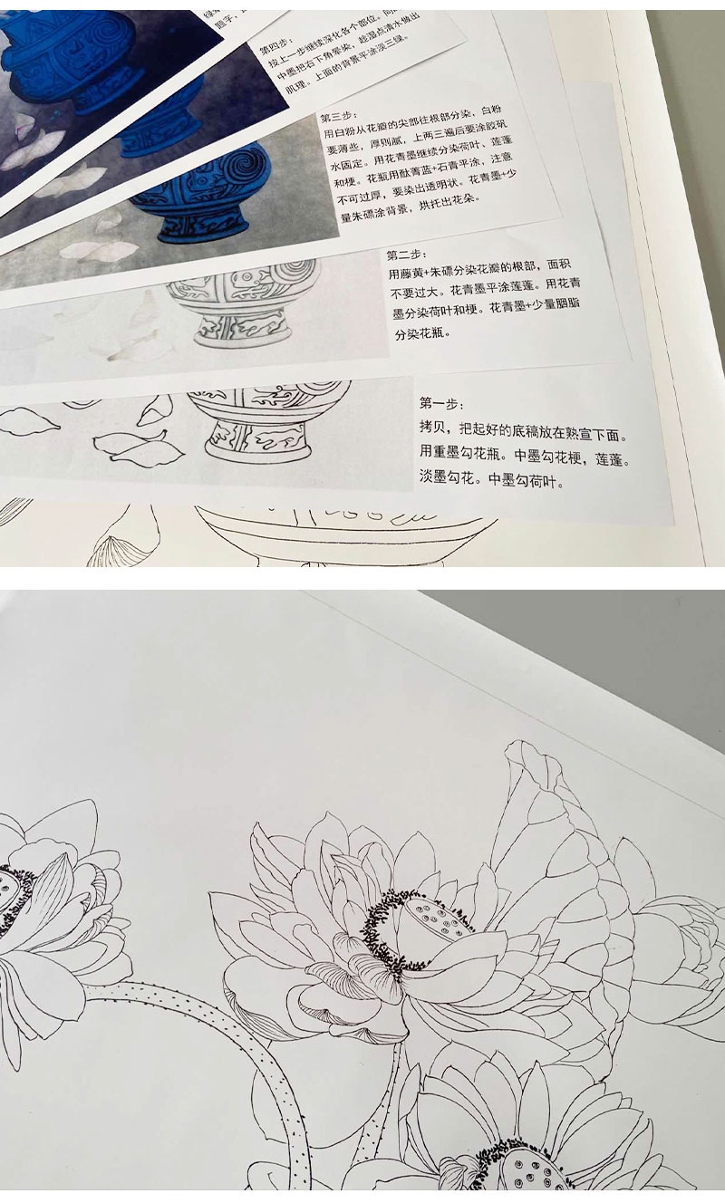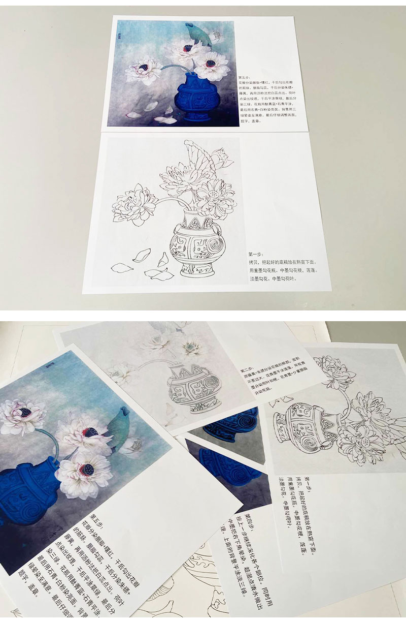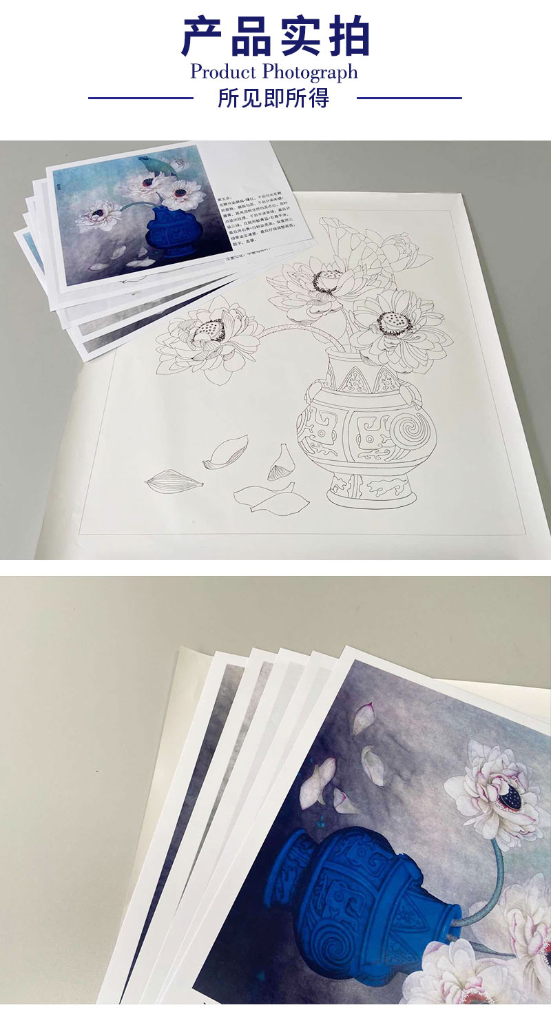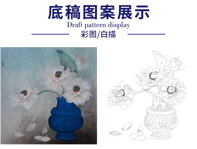 【有步骤】龚雪青工笔画白描底稿斗方小品《落愁》荷花花瓶图初学者临摹花鸟线稿XQ83