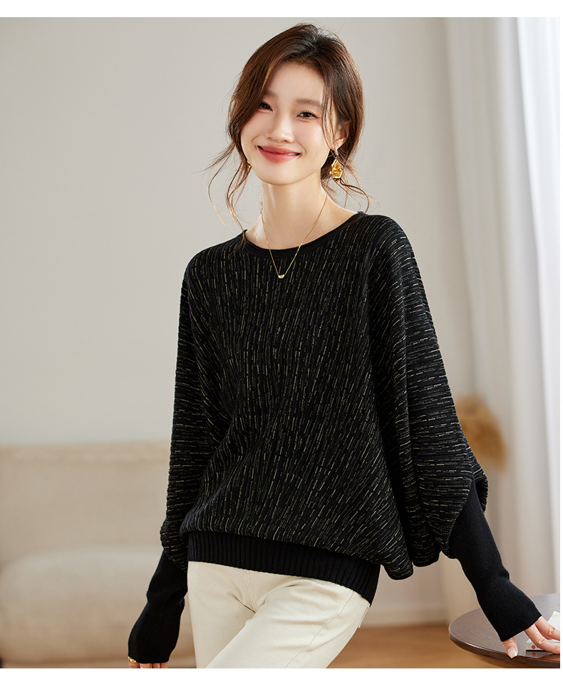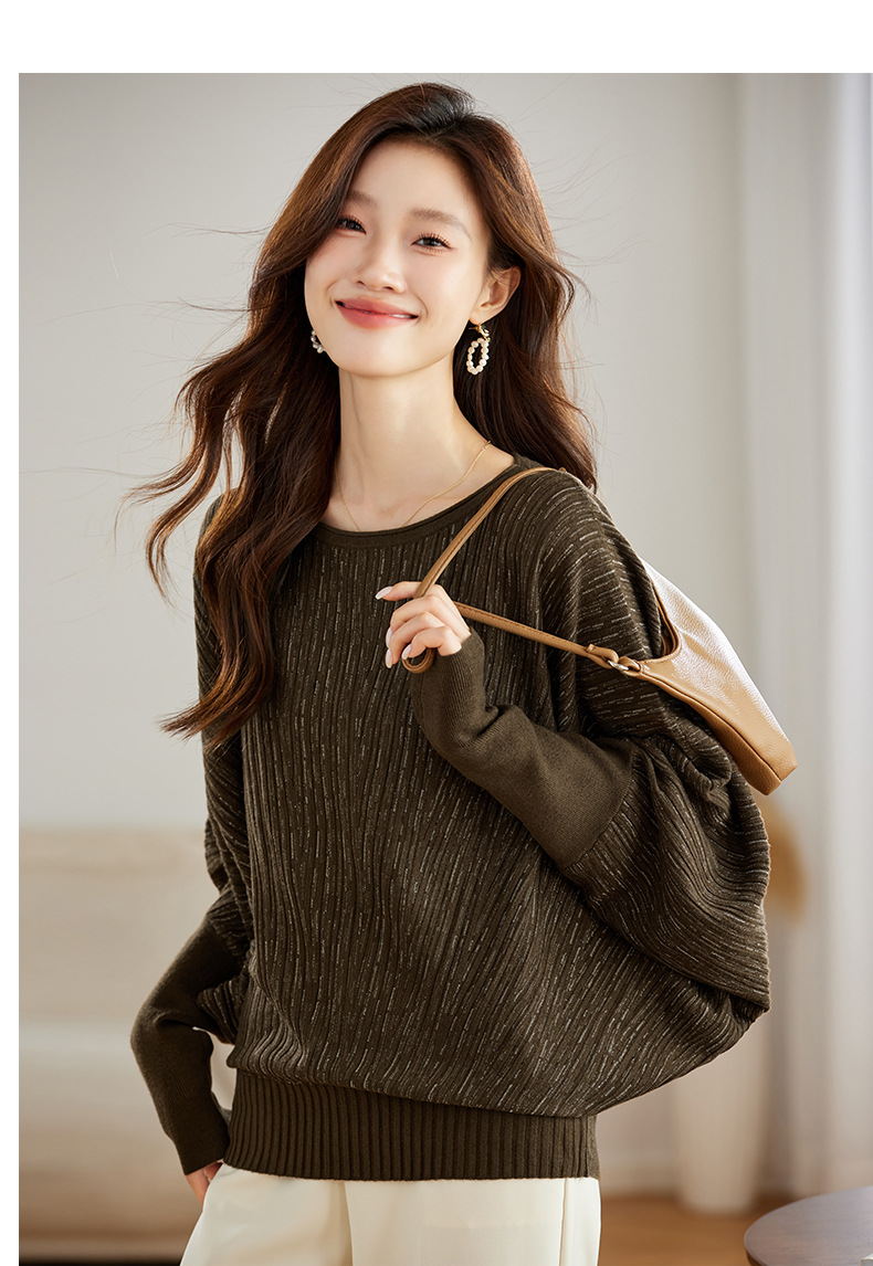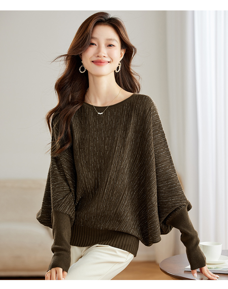 CC-JDS-8879秋冬新款蝙蝠袖针织衫宽松大码薄款洋气上衣慵懒风港风毛衣女