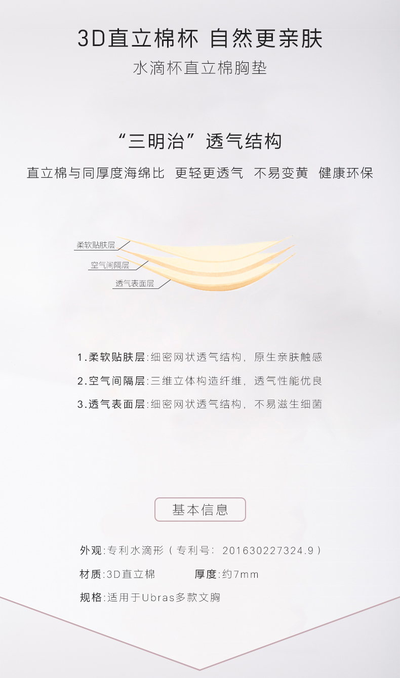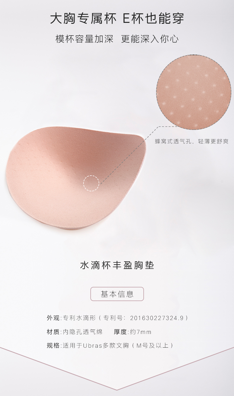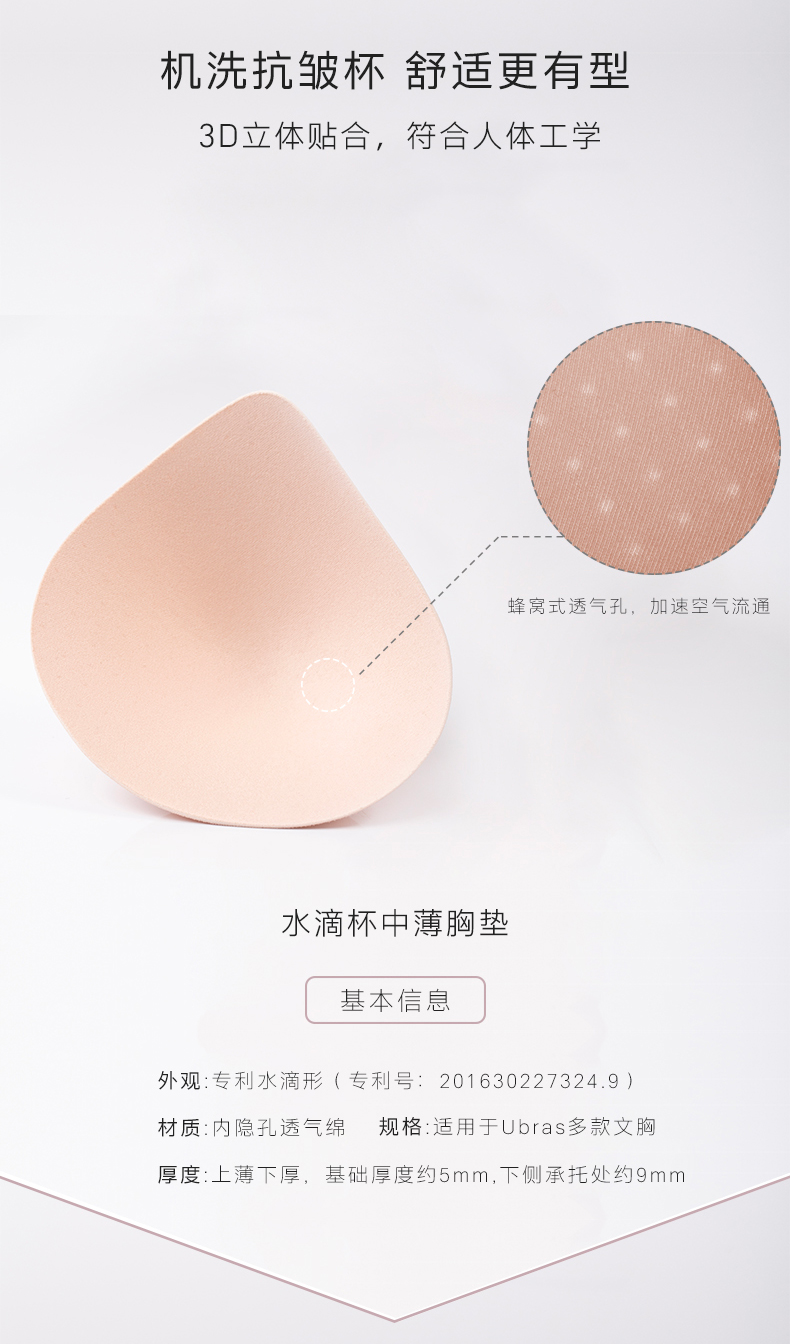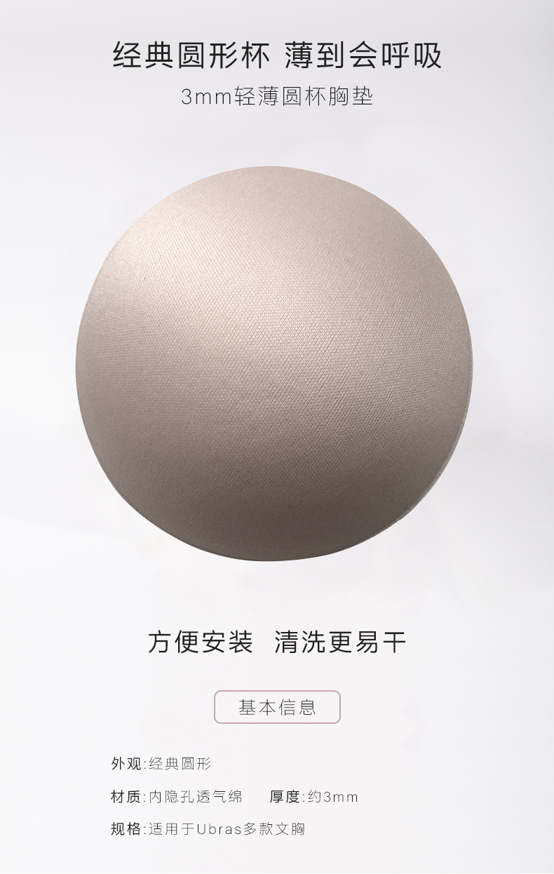 Ubras水滴杯机洗抗皱胸垫洞洞杯胸垫圆形款任选一对替换海绵垫