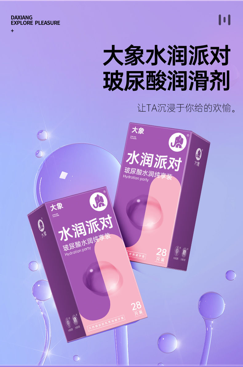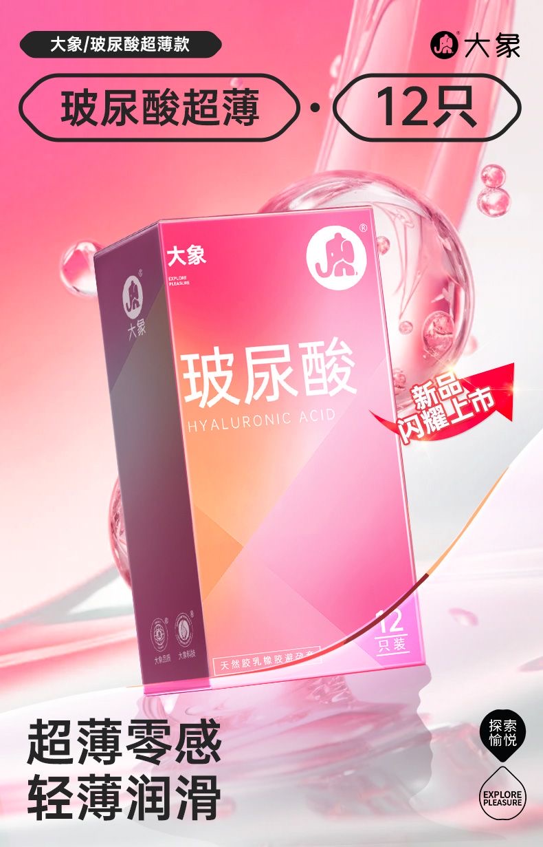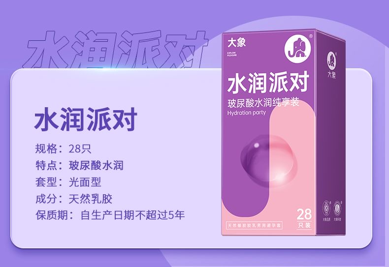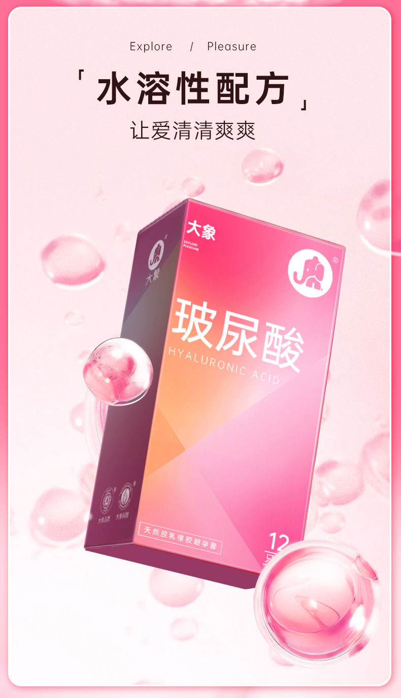 【女性友好玻尿酸】大象避孕套安全套 玻尿酸12只/水润玻尿酸派对28只