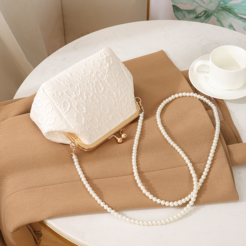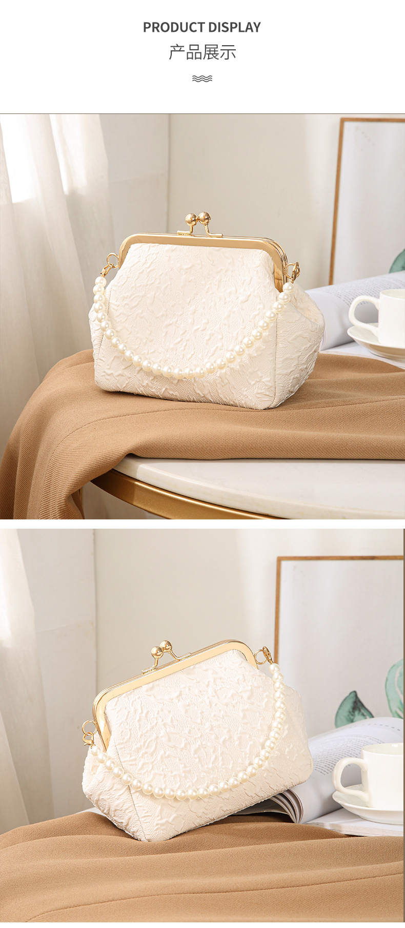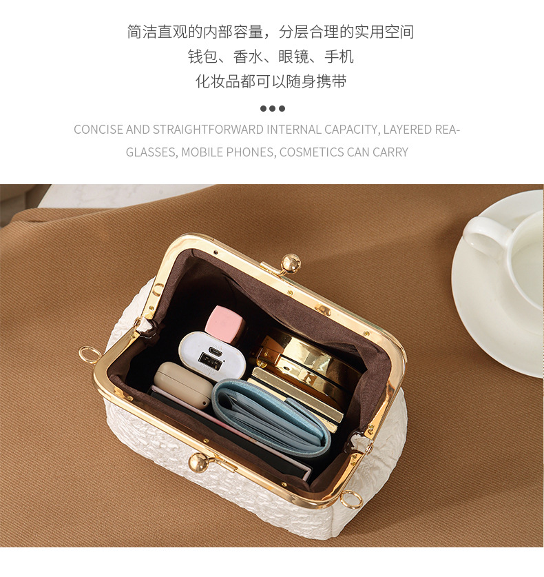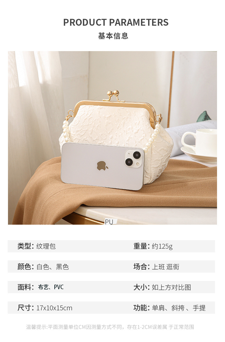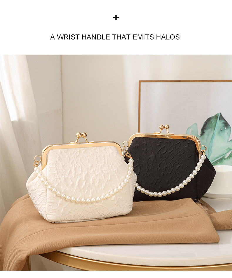 【日常百搭!耐用】包包女褶皱贝壳包新款女包斜挎包手机包串珠手提包迷你口金包。xb