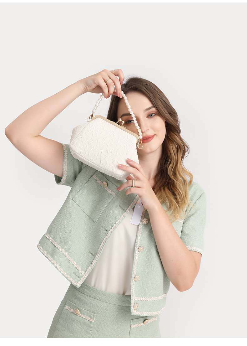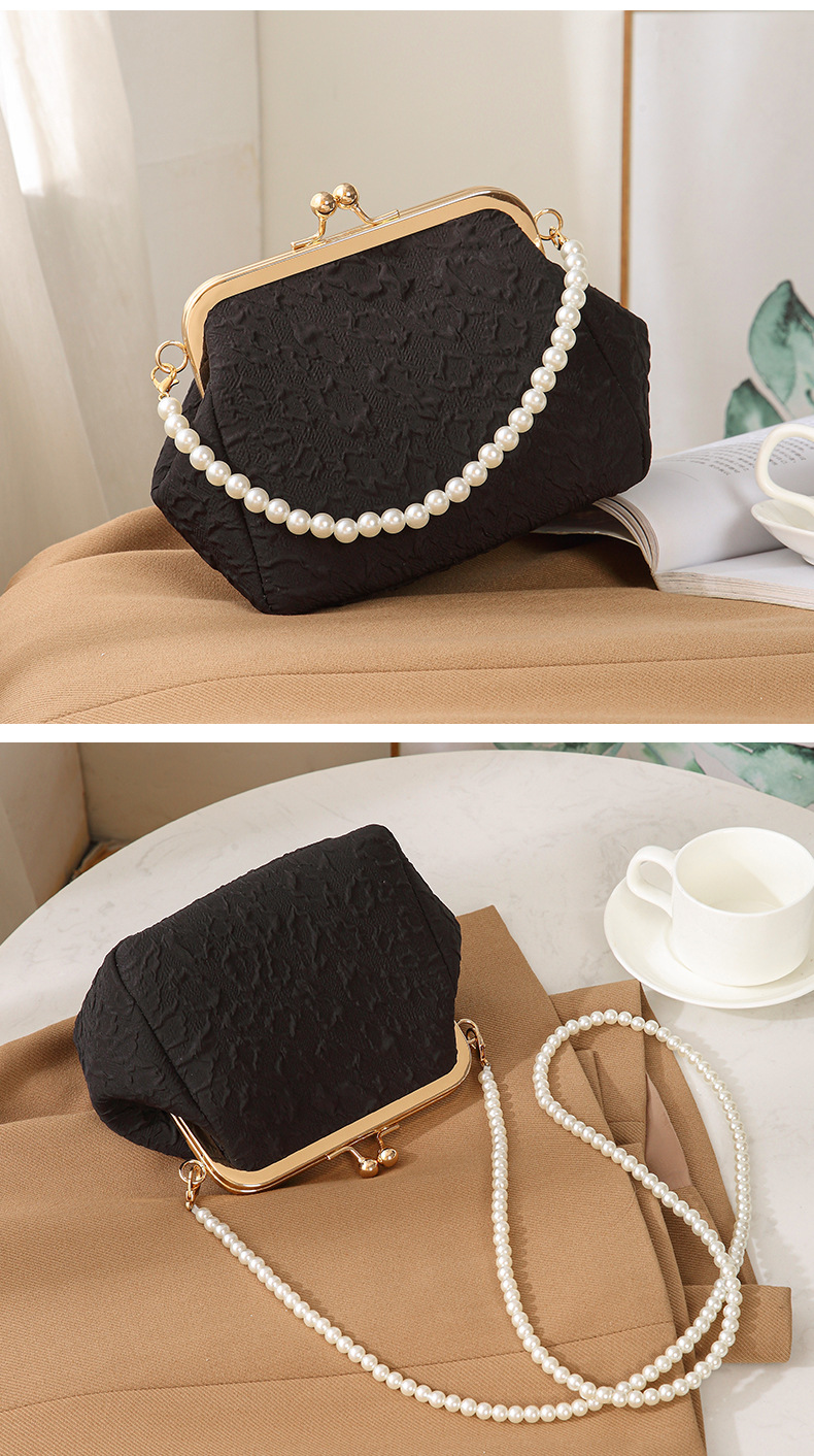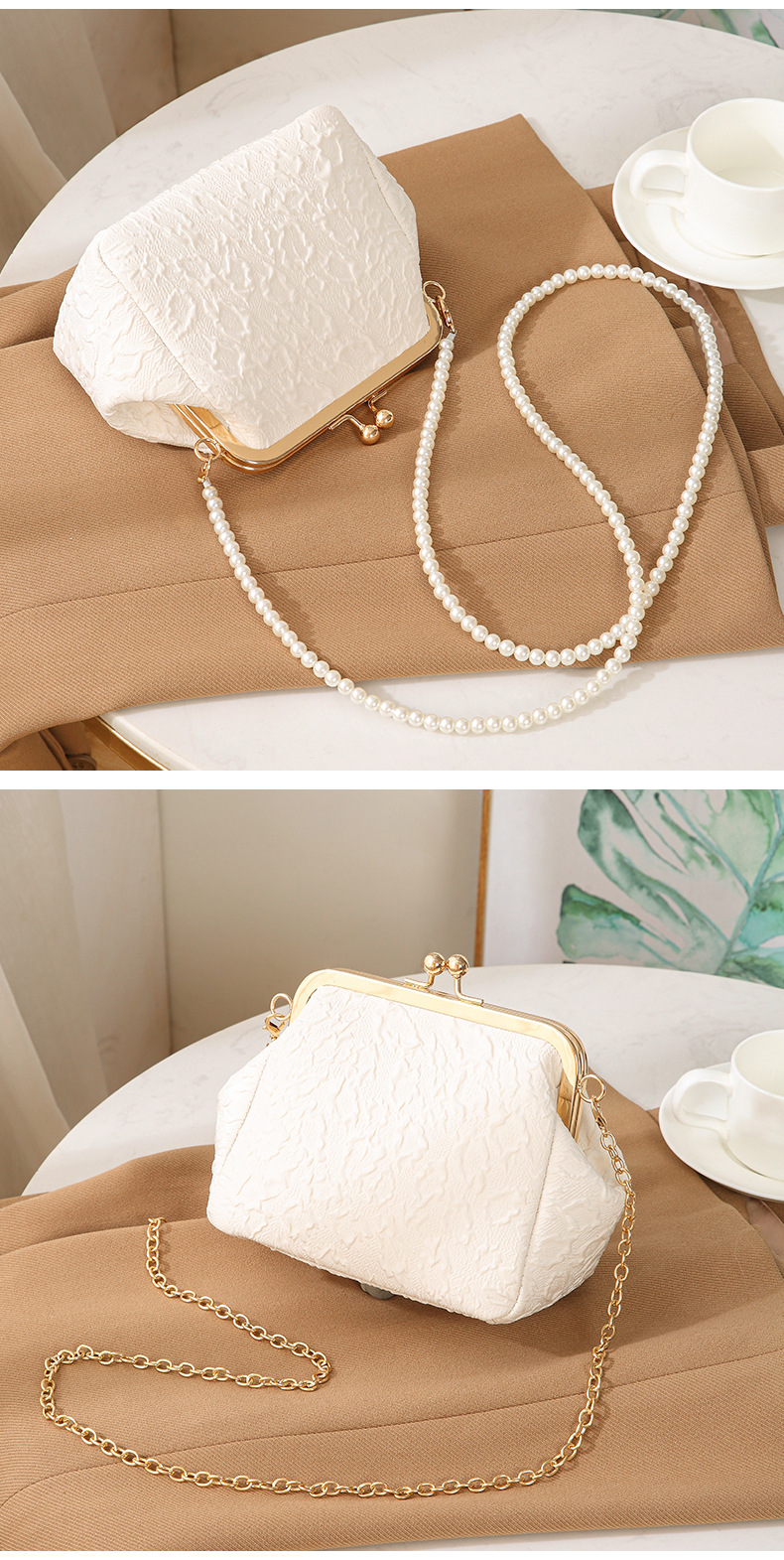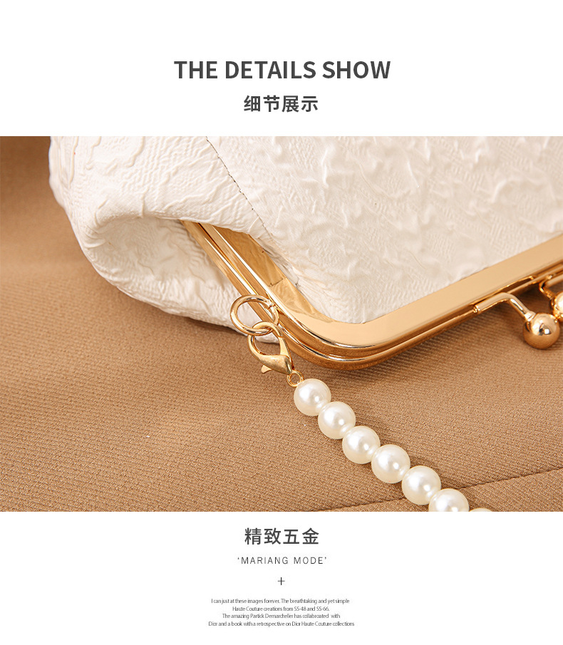 【日常百搭!耐用】包包女褶皱贝壳包新款女包斜挎包手机包串珠手提包迷你口金包。xb