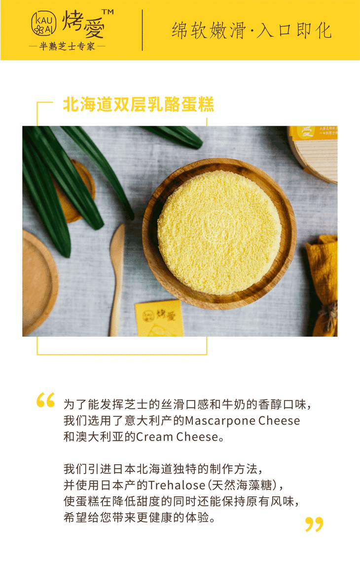 烤爱·经典款·北海道双层芝士系列·北海道双层乳酪蛋糕·双层乳酪·下午茶 全国配送(偏远地区除外)