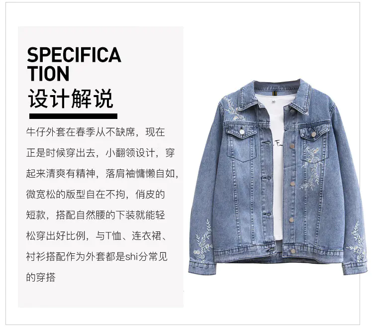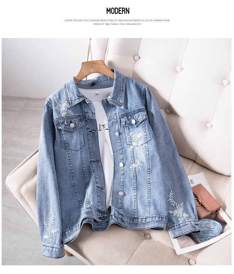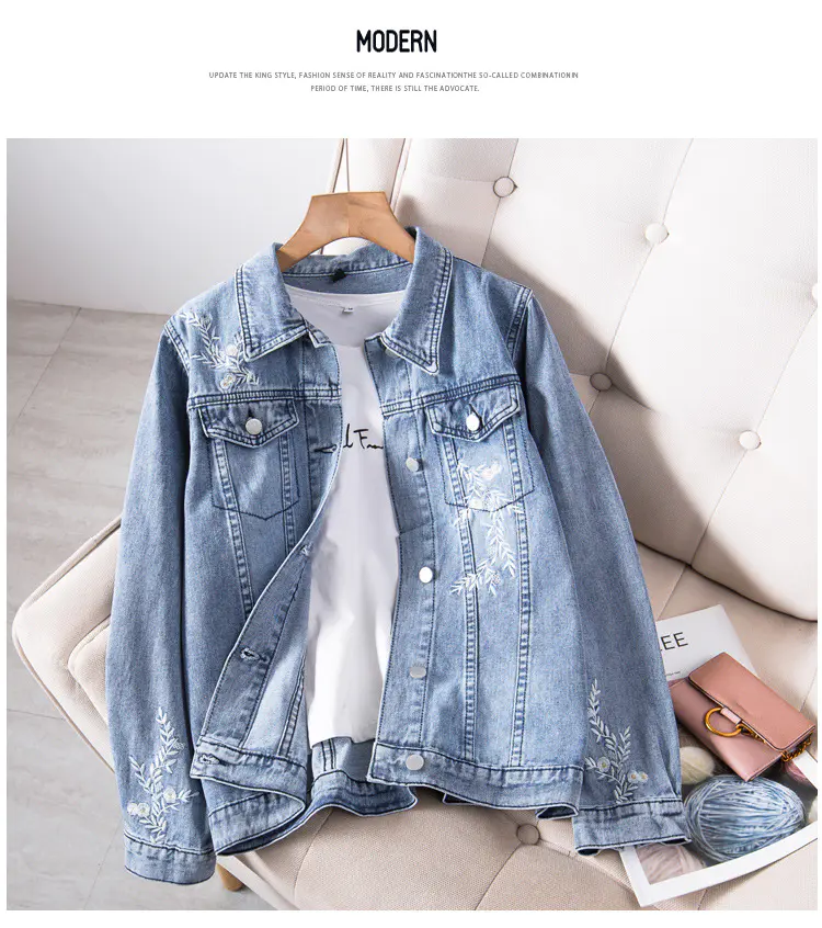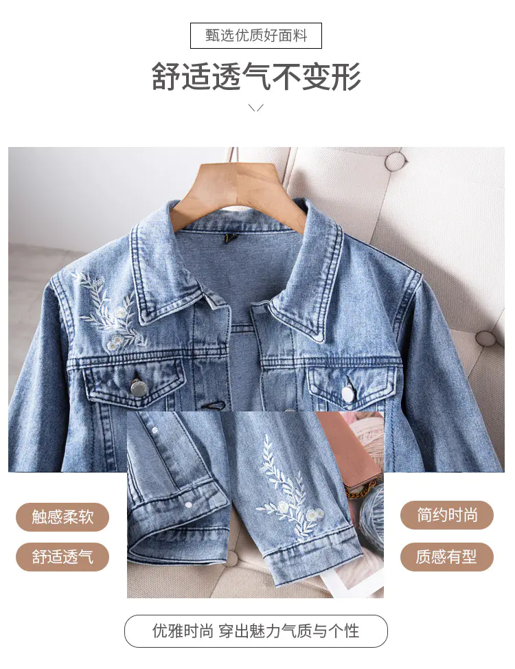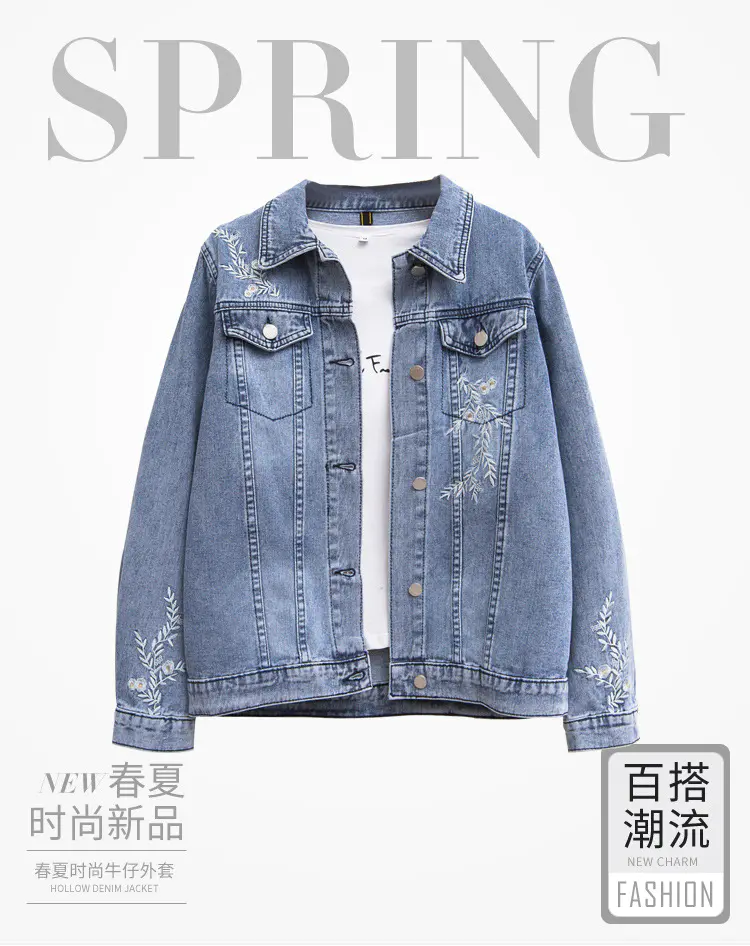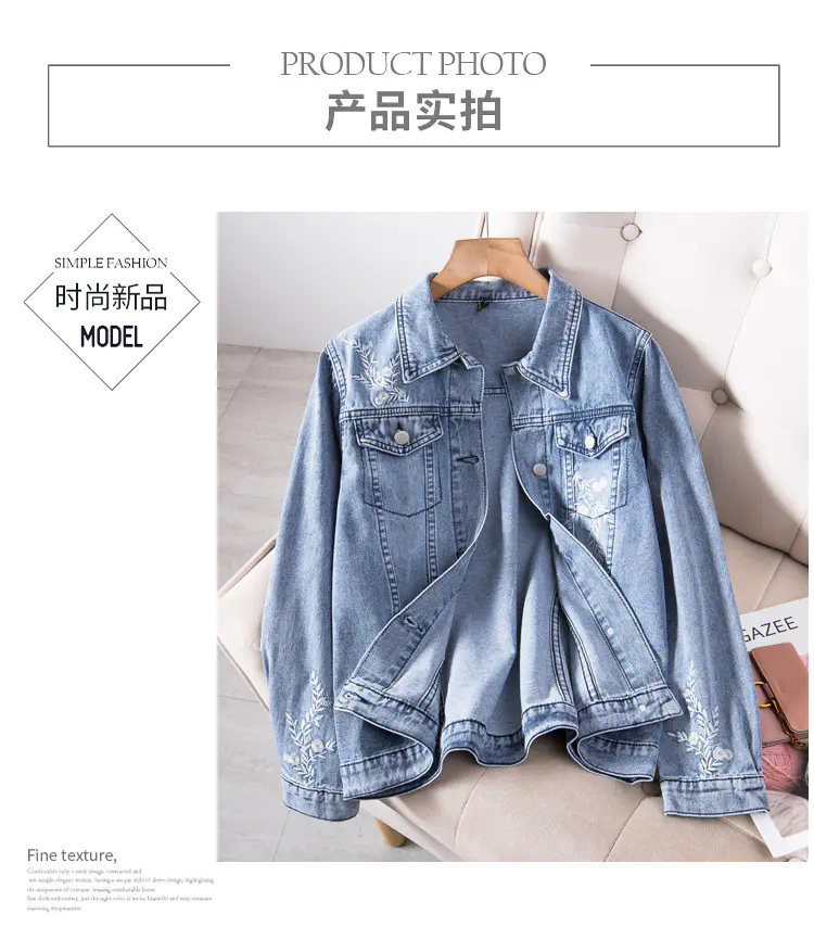 MZ9568胖妹妹秋季新款减龄夹克牛仔外套刺绣显瘦宽松上衣