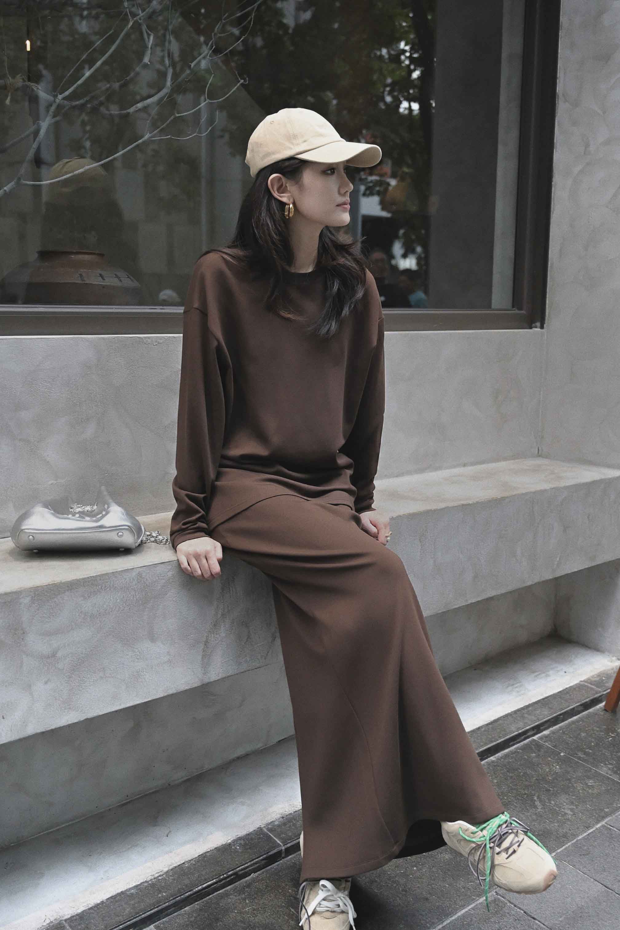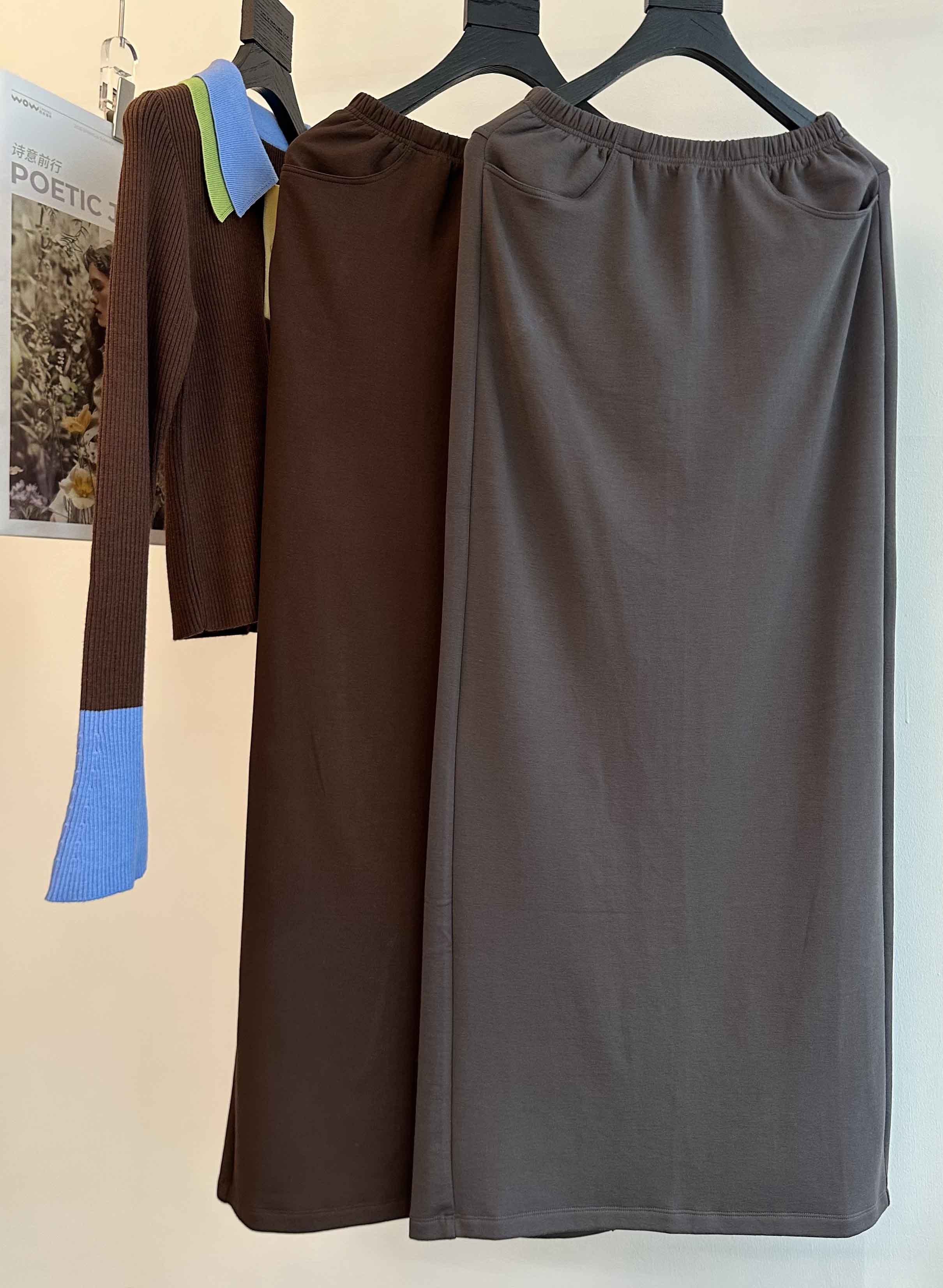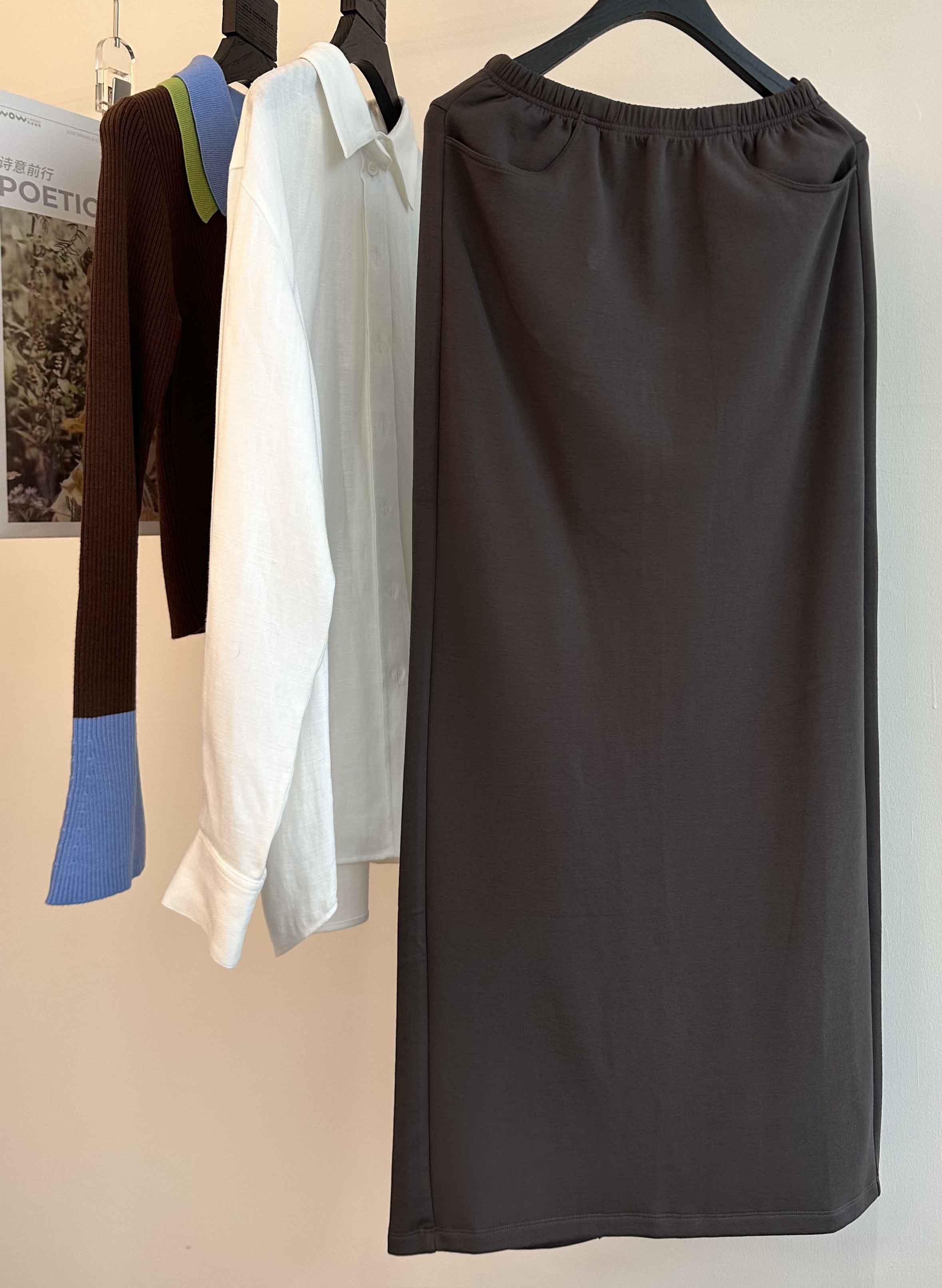 INS风陨石灰/马鞍棕· 松紧腰直筒长半裙|松弛随性廓形,利落显瘦