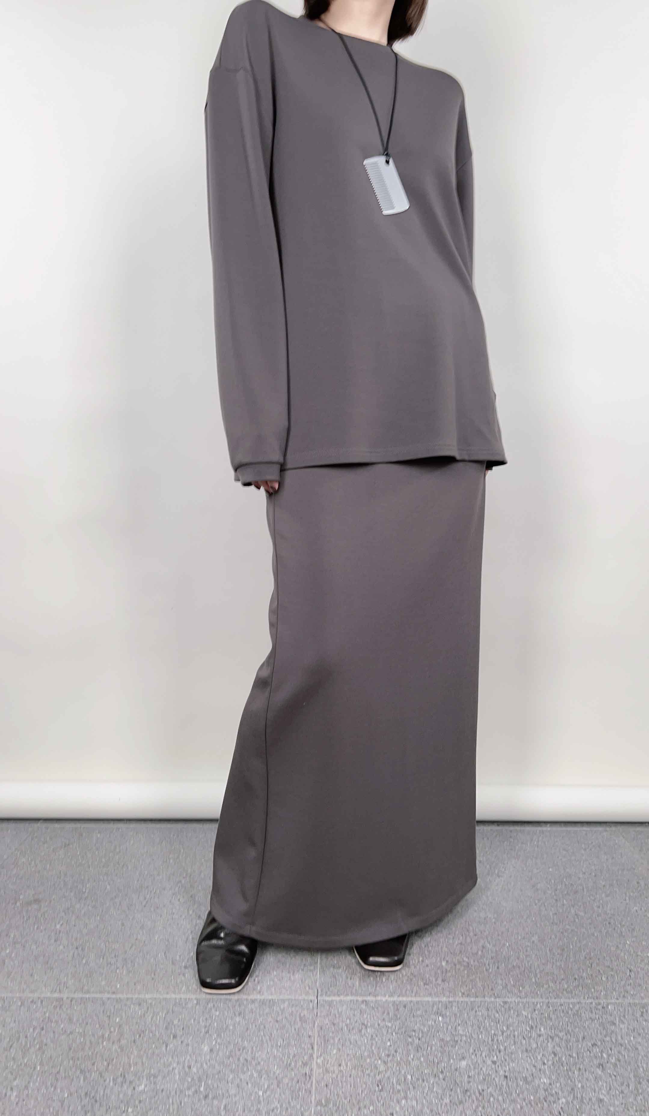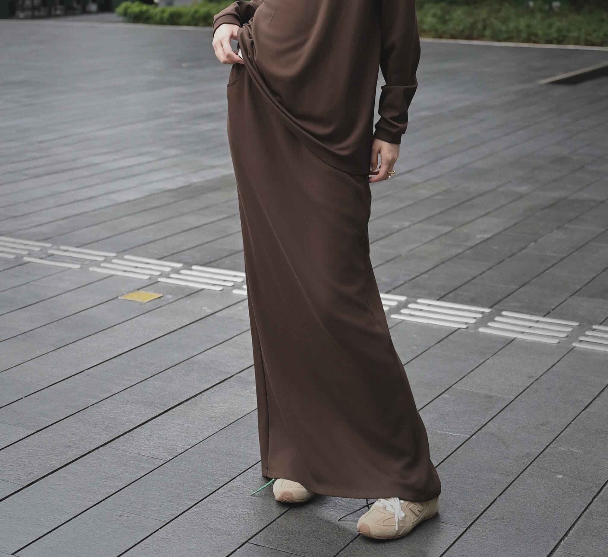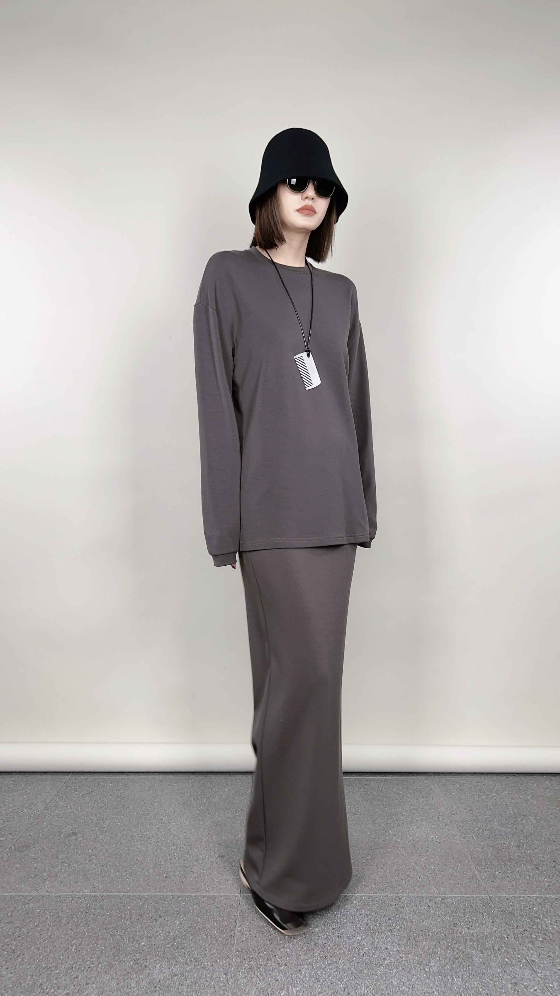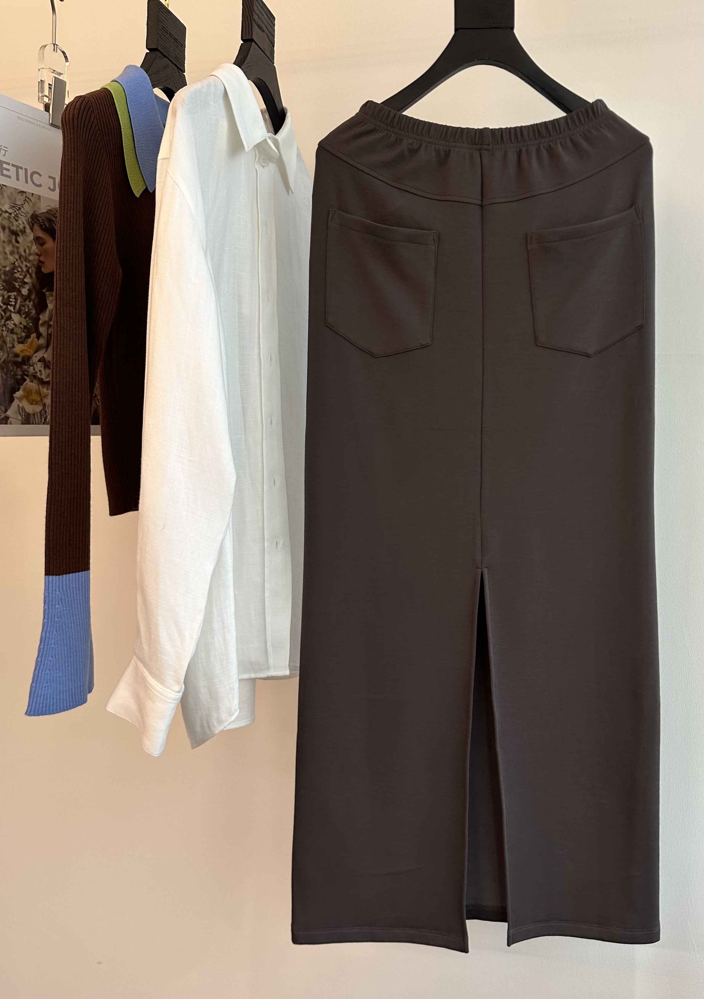 INS风陨石灰/马鞍棕· 松紧腰直筒长半裙|松弛随性廓形,利落显瘦