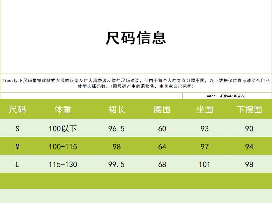 半裙采用经典松紧腰头,穿脱方便,包容性强