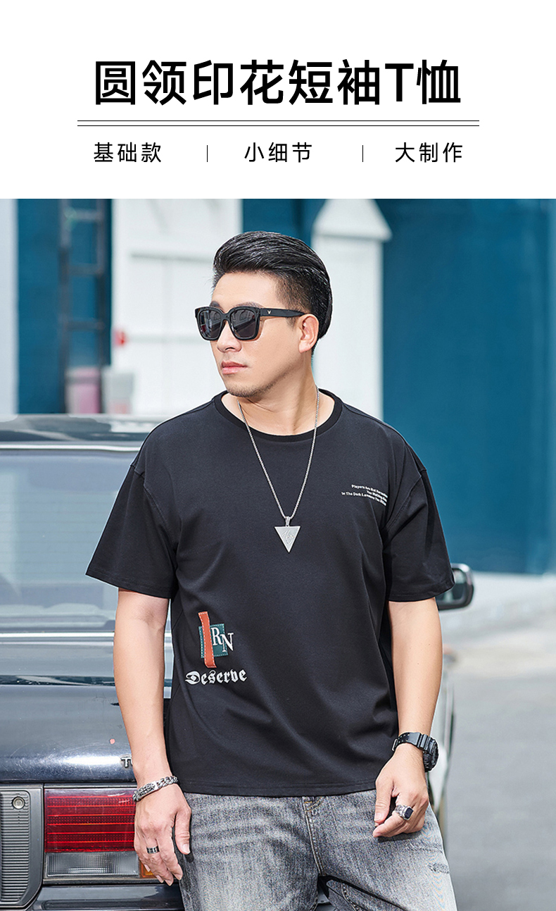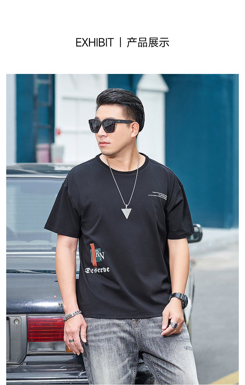 【新款DMH】大码男装圆领短袖T恤加肥加大休闲潮款肥佬男上衣夏季