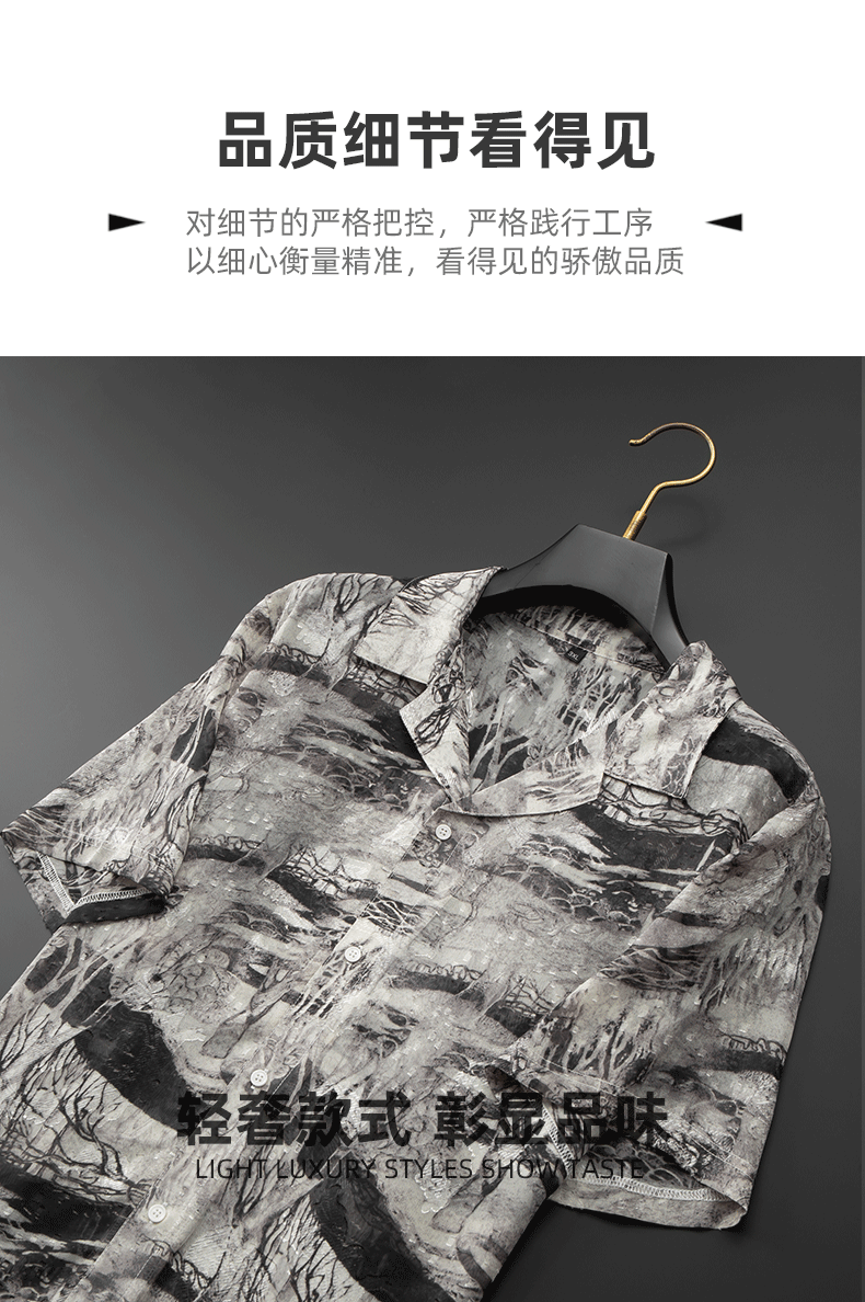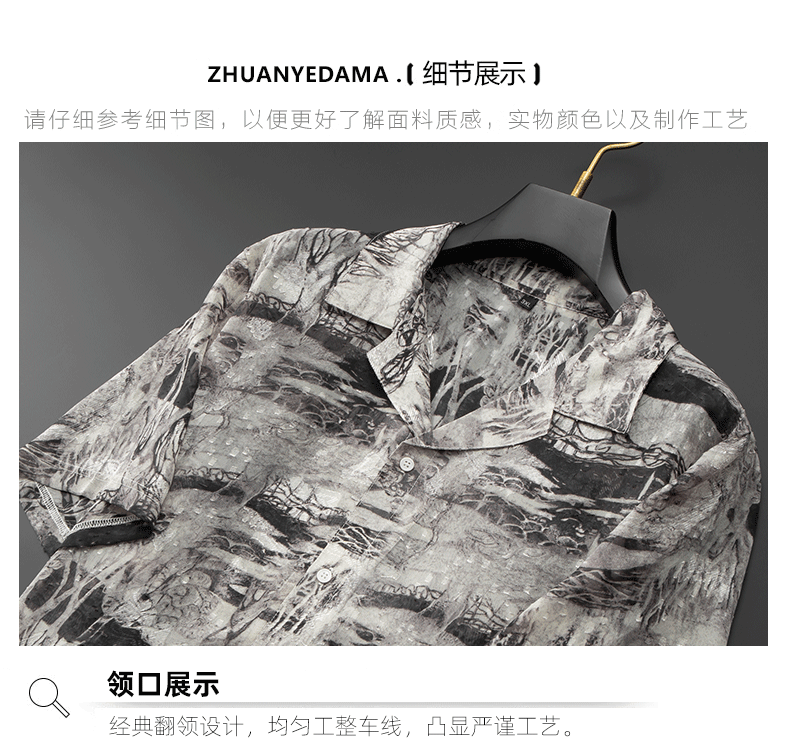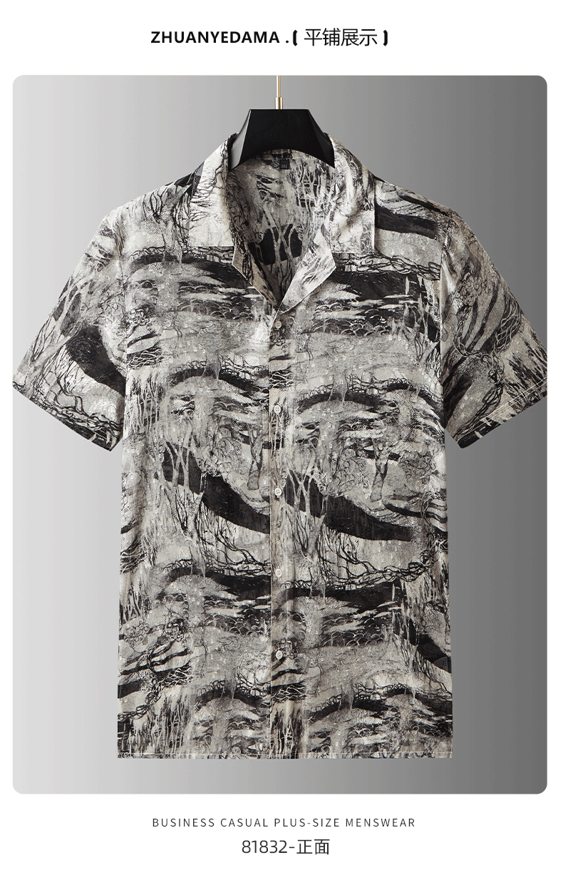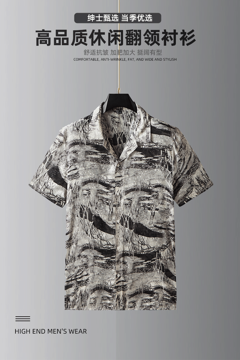 【戗驳领】【DDA】大依优型大码花衬衫短袖衬衫翻领衬衣商务休闲透气半袖夏季上衣男士