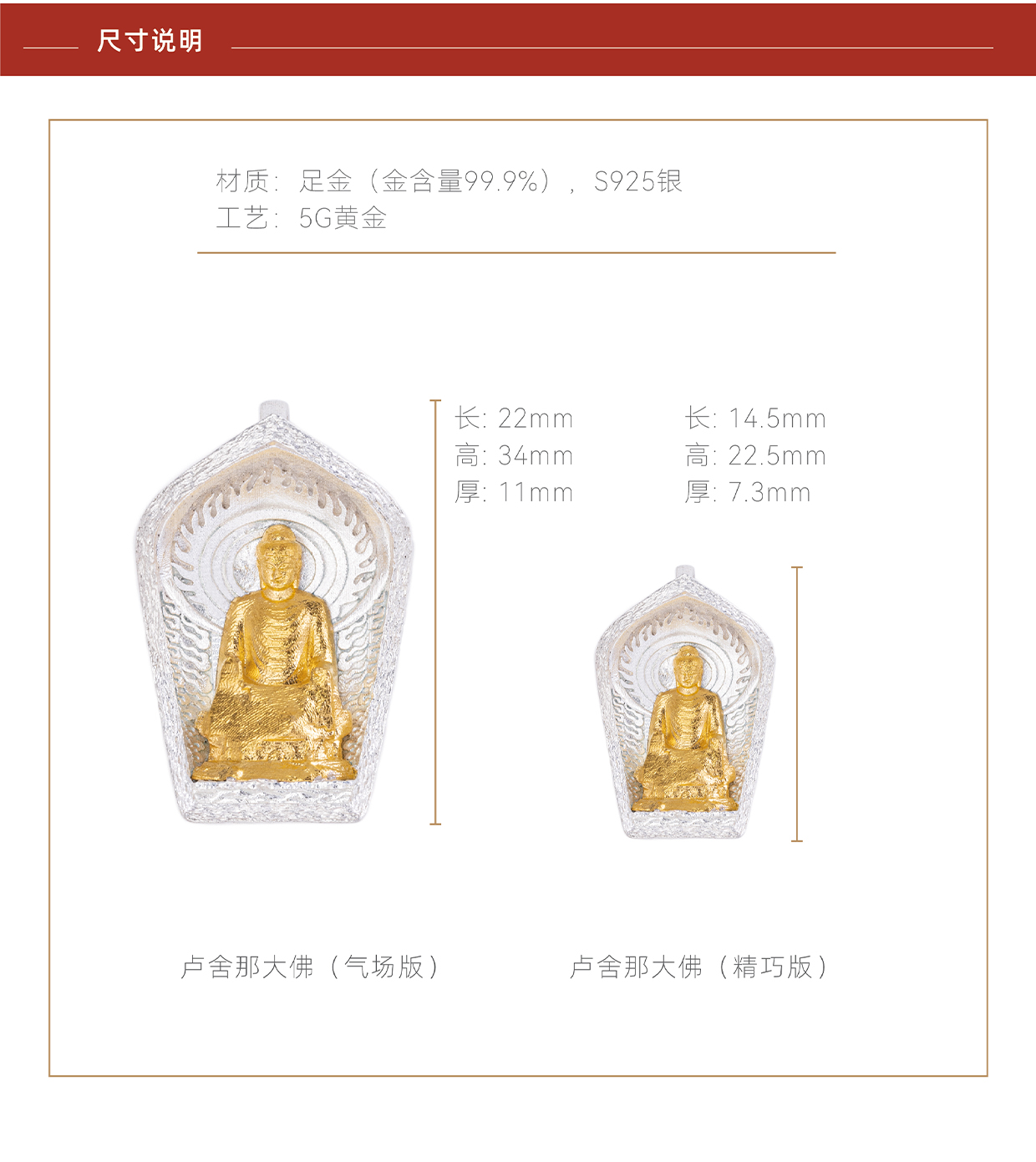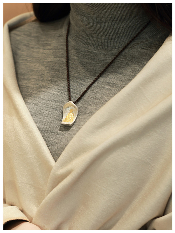 鹿鸣中式|金嵌银卢舍那大佛吊坠