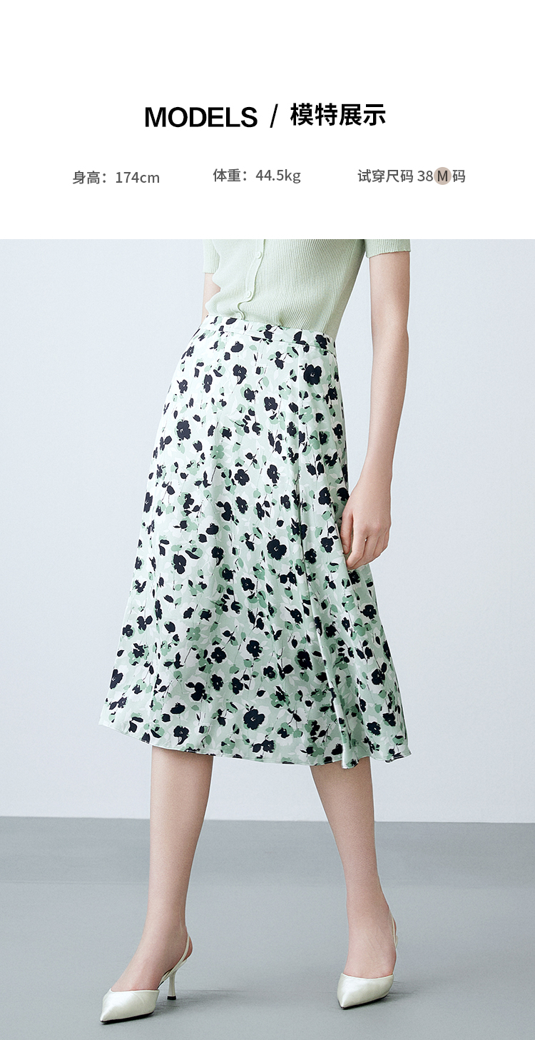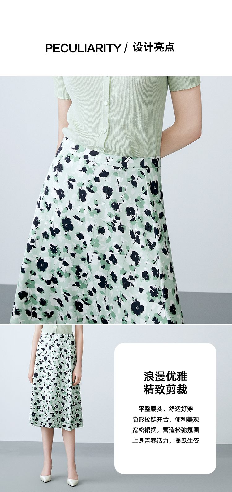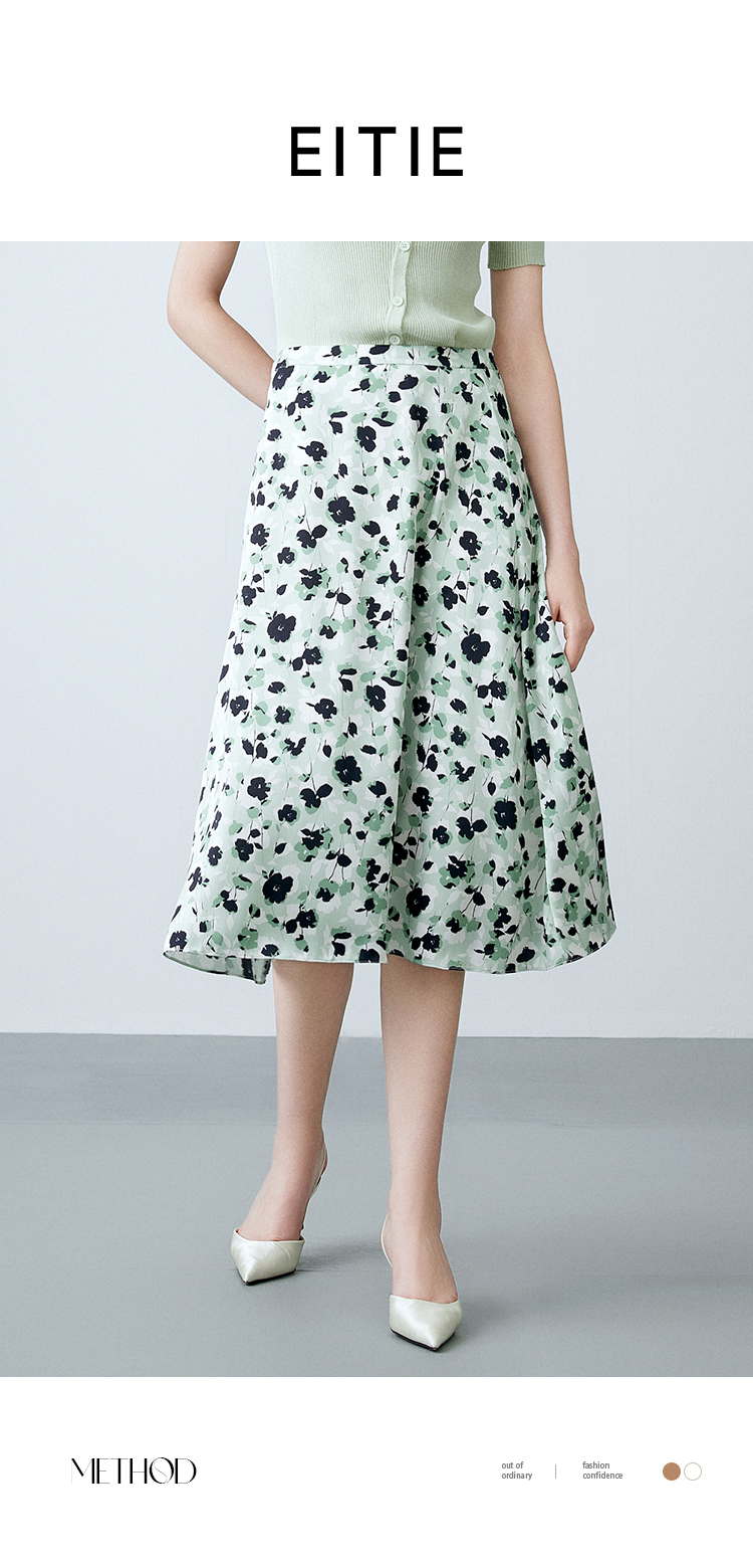EITIE爱特爱夏季新款时尚高腰a字显瘦法式通勤印花半身裙7806509