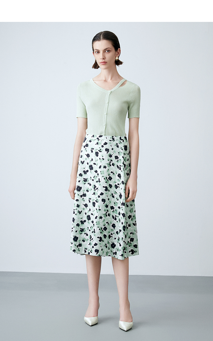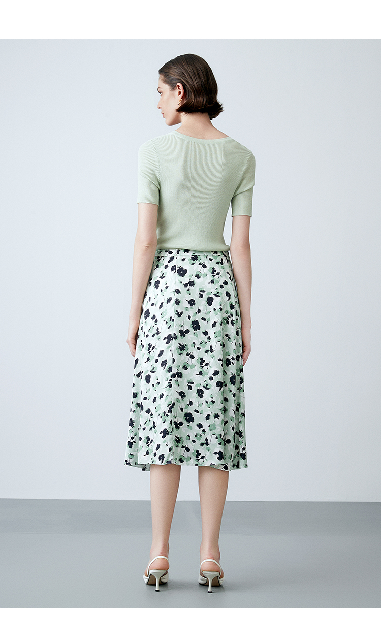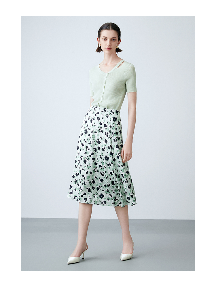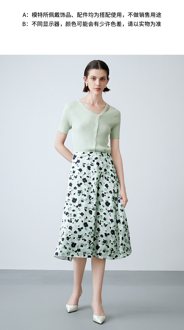 EITIE爱特爱夏季新款时尚高腰a字显瘦法式通勤印花半身裙7806509