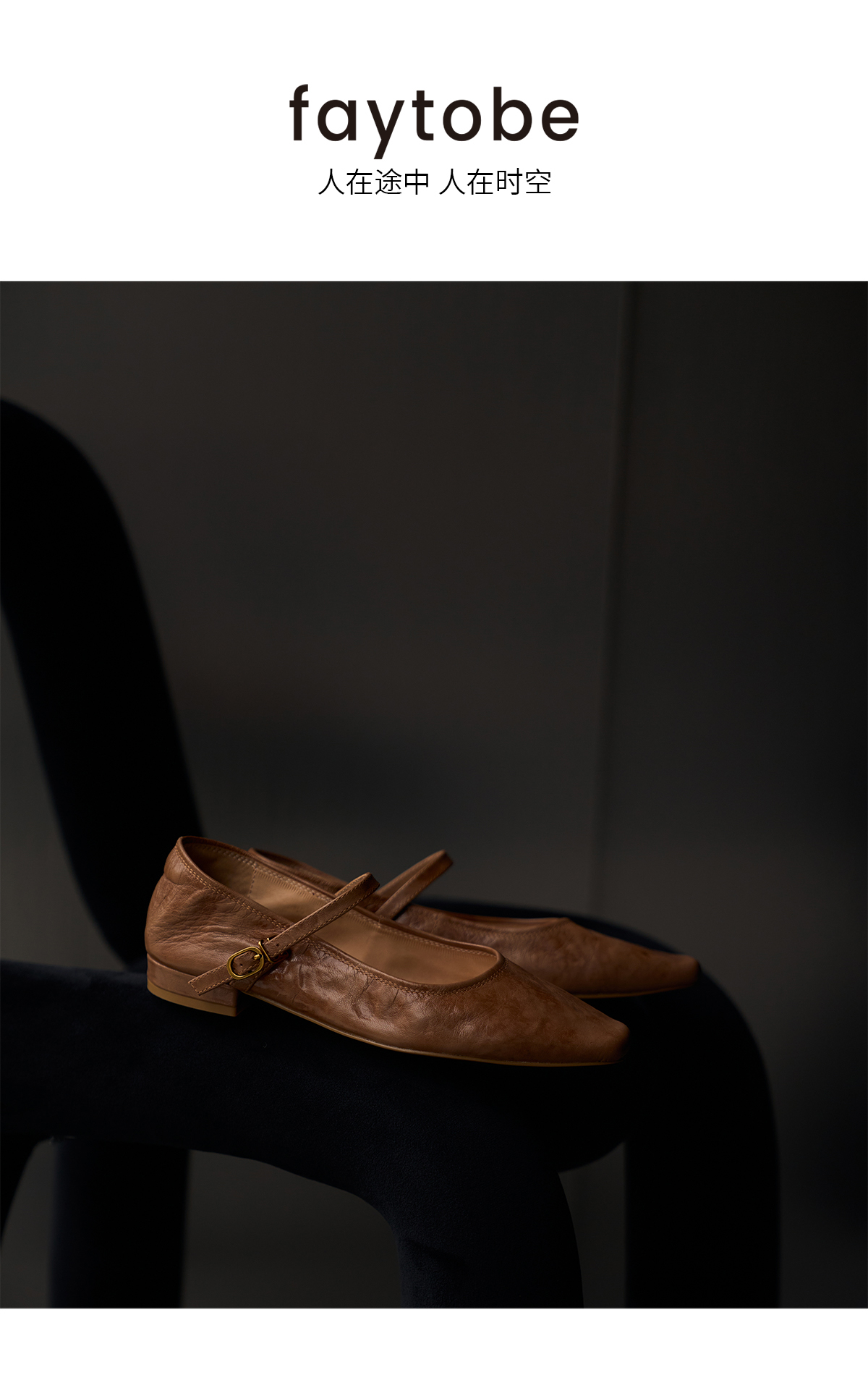 faytobe褶皱做旧玛丽珍25早春清冷新中式风尖方头一字扣单鞋