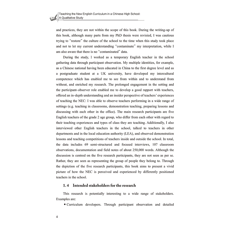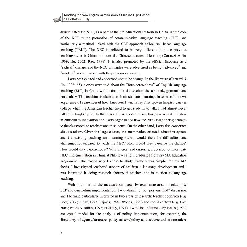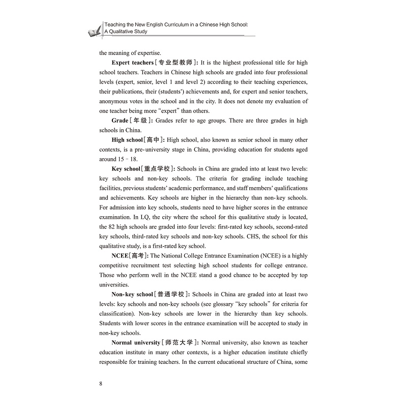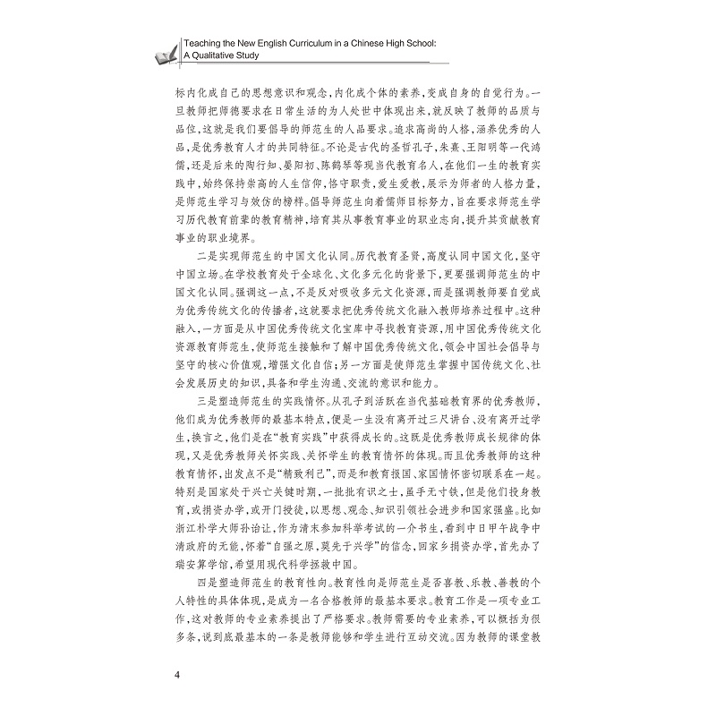 书名:Teaching the New English Curriculum in a Chinese High School: A Qualitative Study(高中英语教师与新课程实施:一项质的研究)