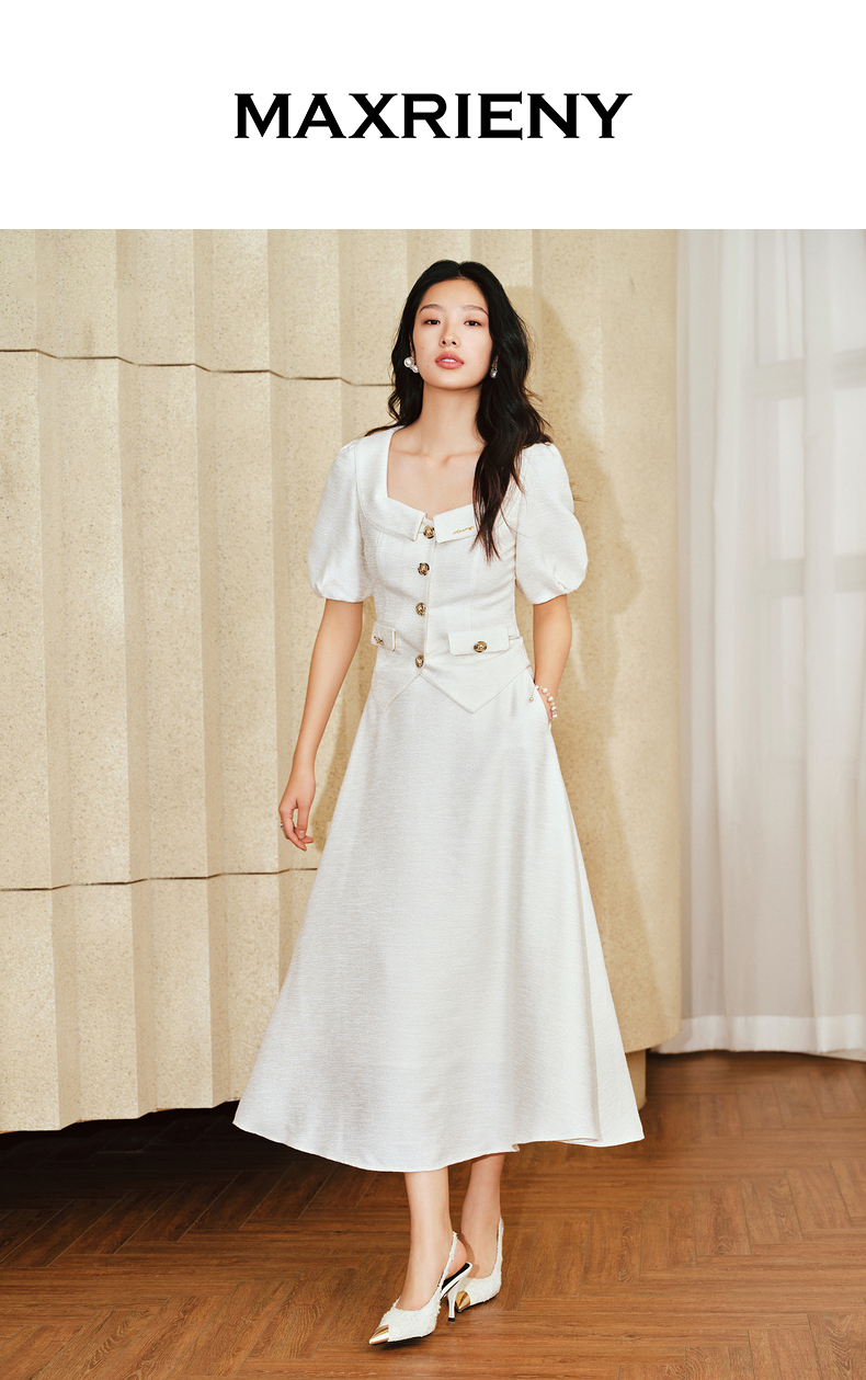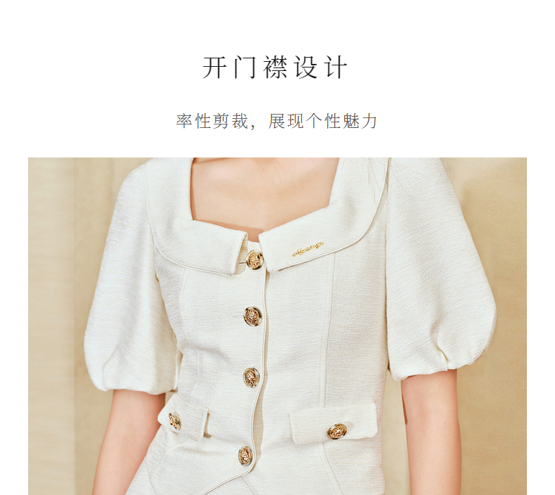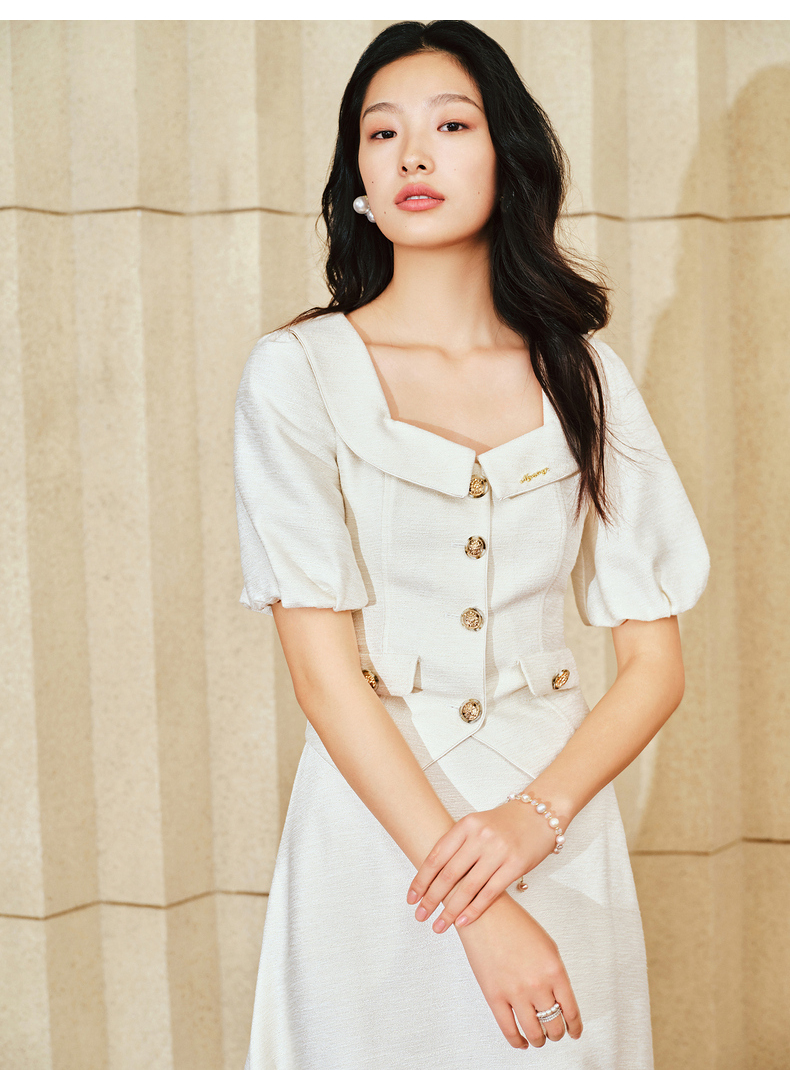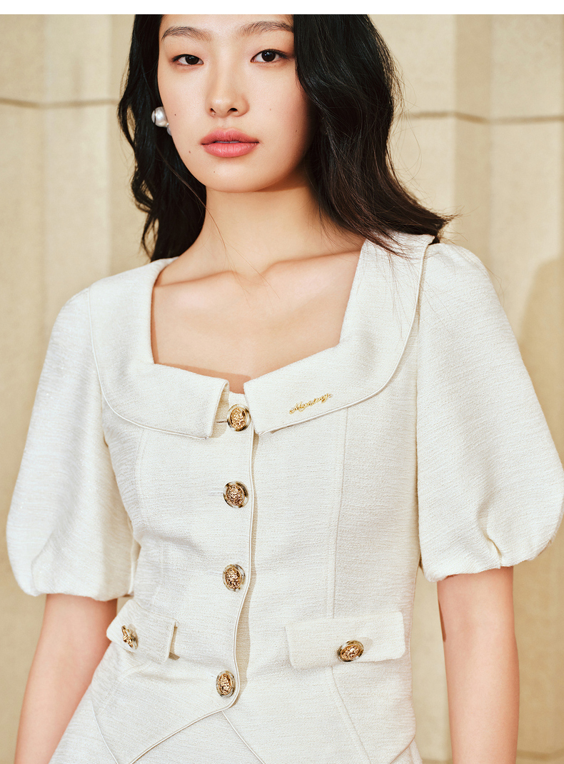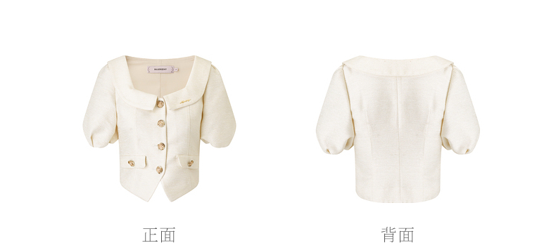 MAXRIENY复古小香风泡泡袖衬衫2025春季新品花纱方领上衣修身显瘦(货号:MS85TP010)