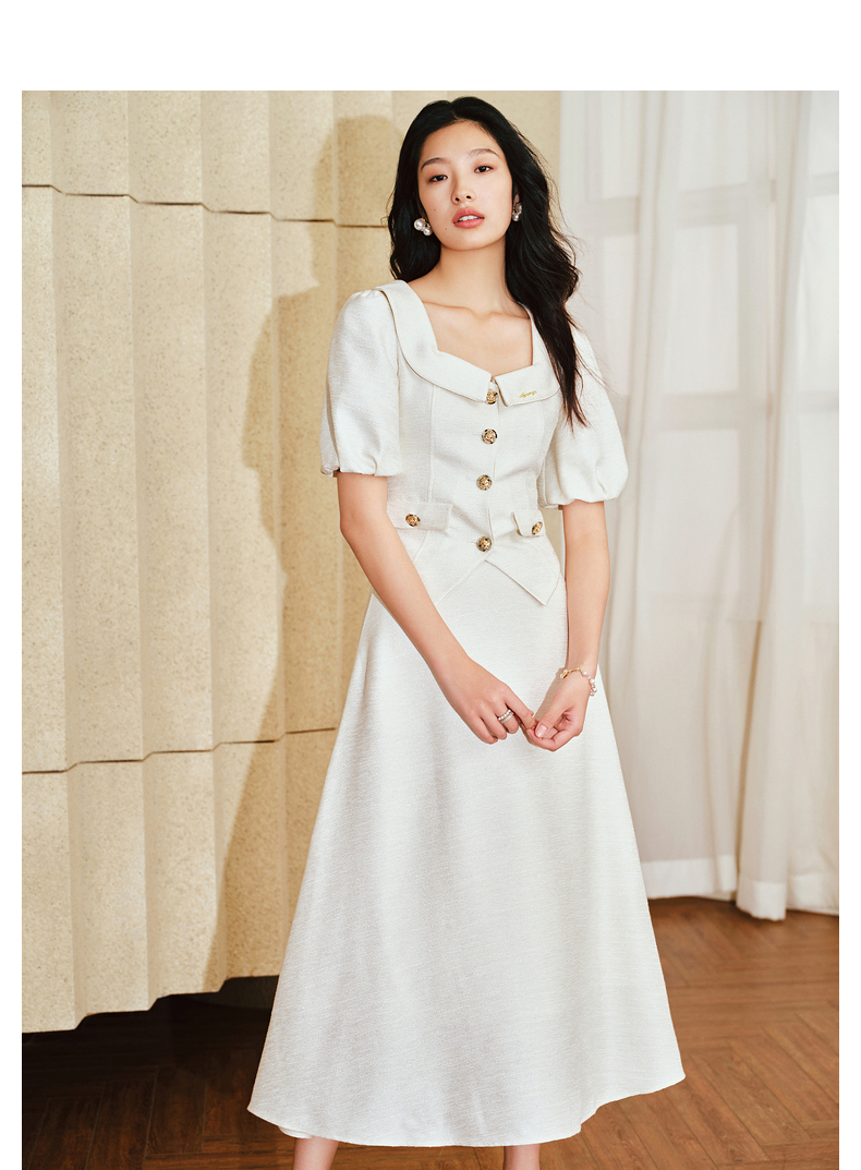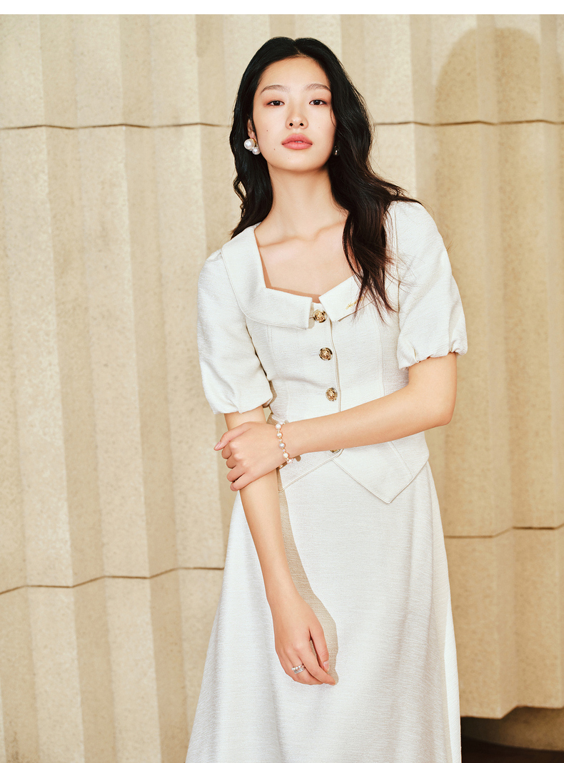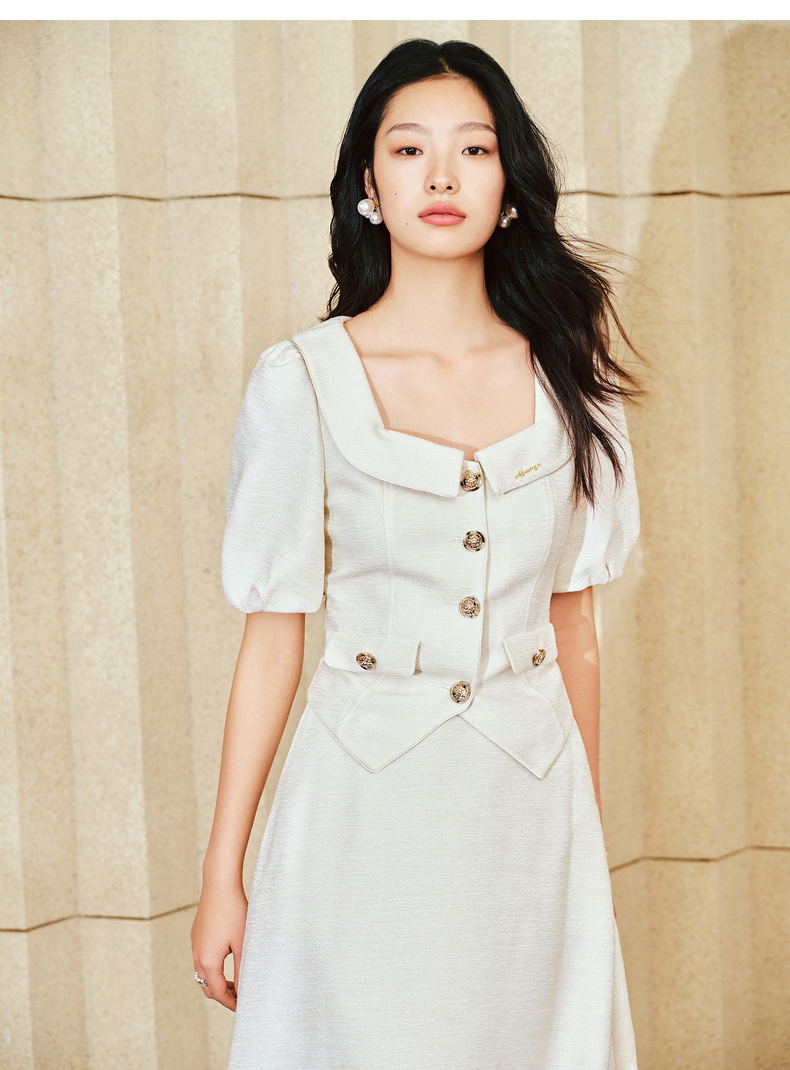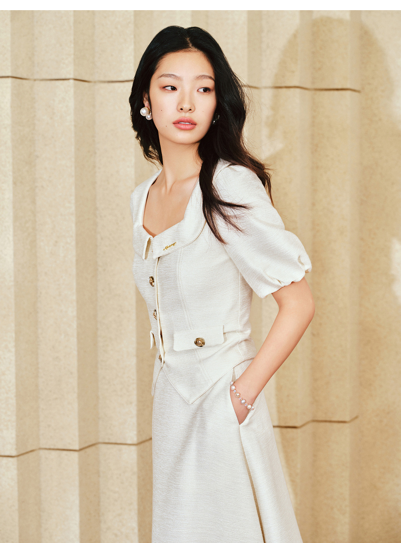 MAXRIENY复古小香风泡泡袖衬衫2025春季新品花纱方领上衣修身显瘦(货号:MS85TP010)