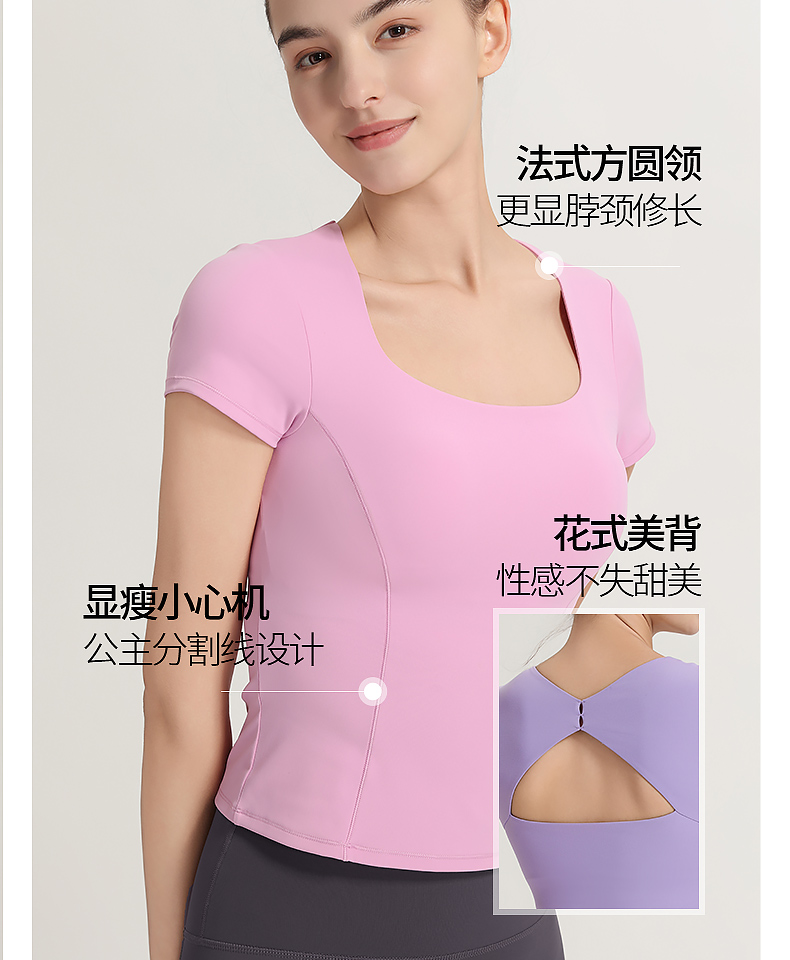 (断码清仓)梵美人 F1116R 瑜伽短袖 带胸垫 云糯柔感