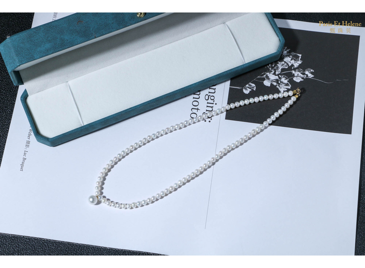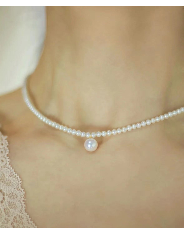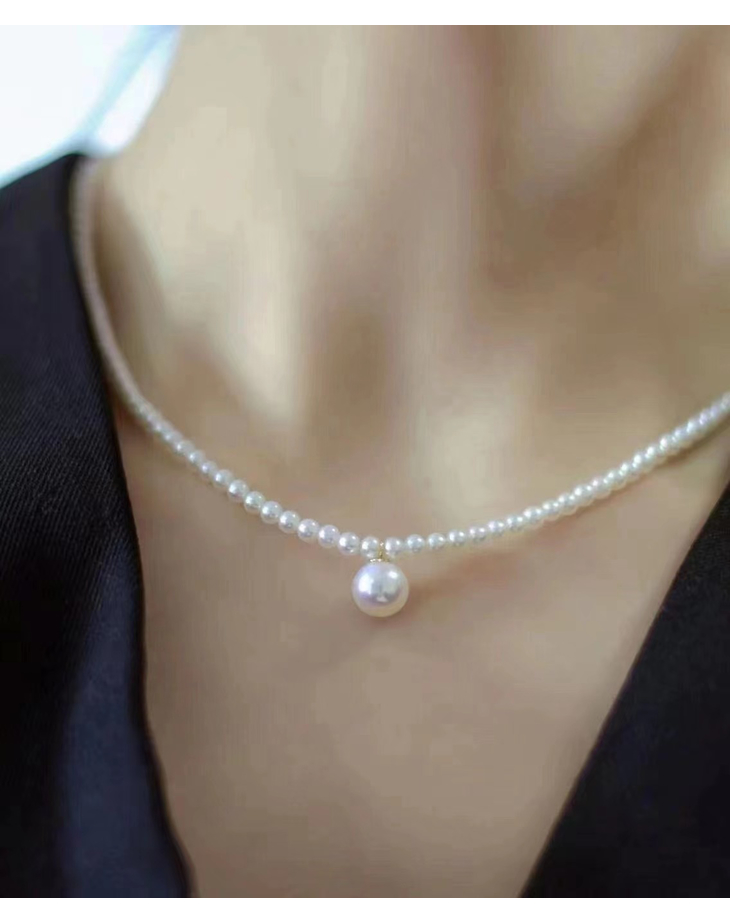 【下单2-3个工作日发】甄珠贝 4-5mm小珍珠+8mm珍珠吊坠 项链 18k金扣