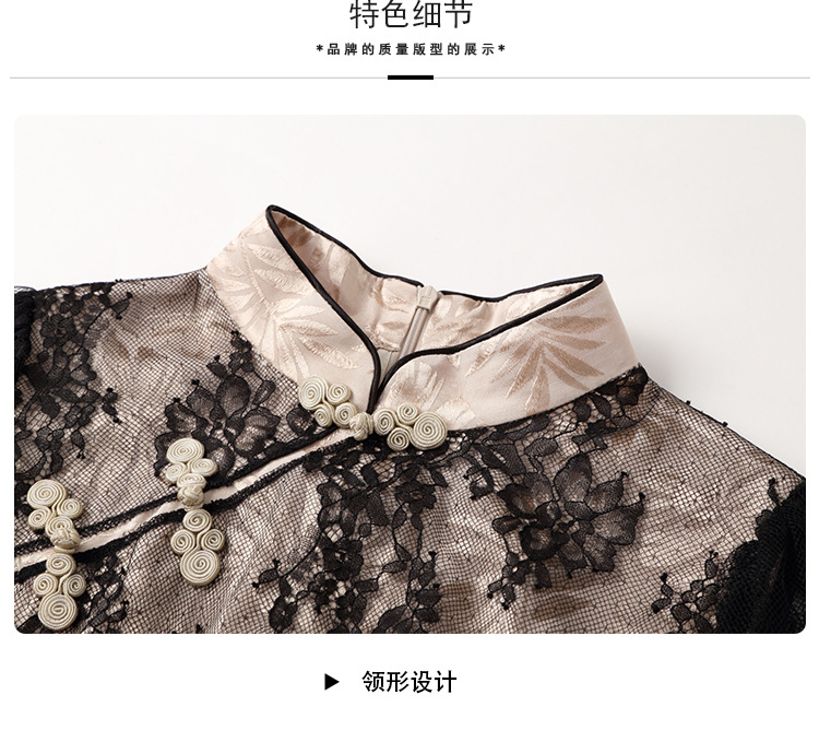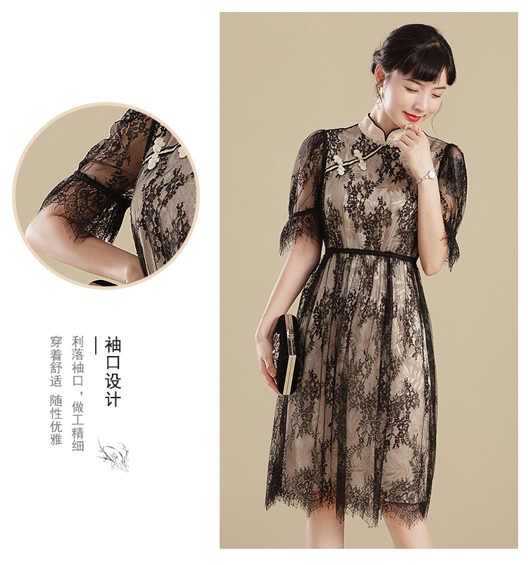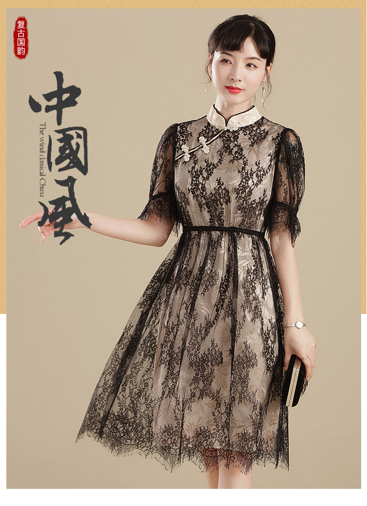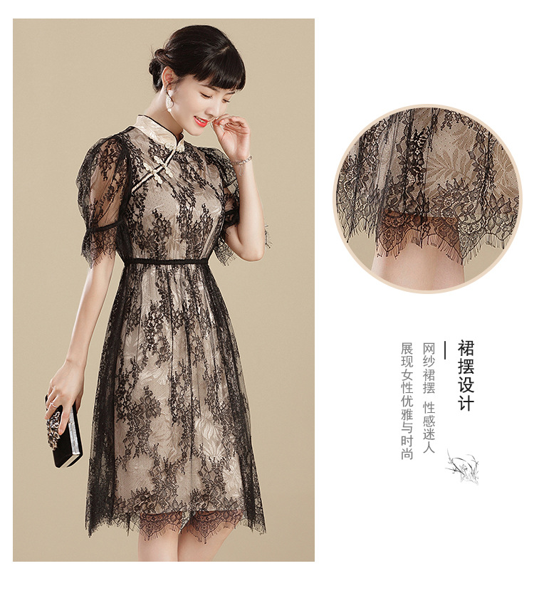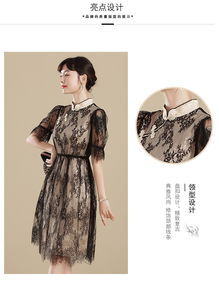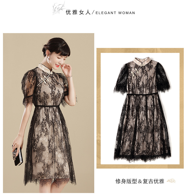 上海旗袍厂AYK-QF210406蕾丝假两件拼接时尚改良旗袍中国风收腰立领连衣裙2021夏女装