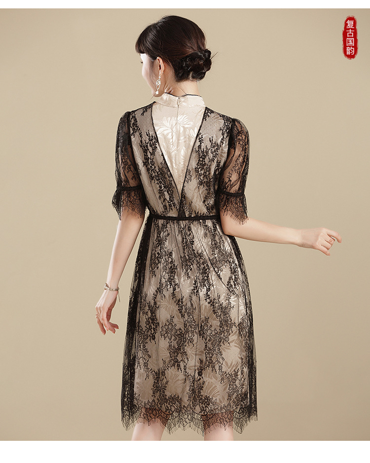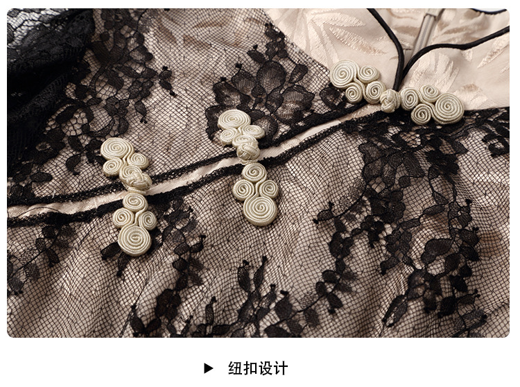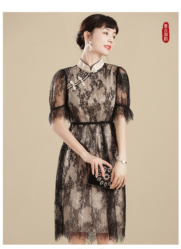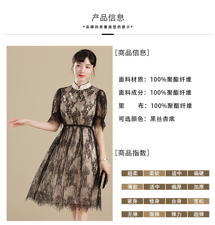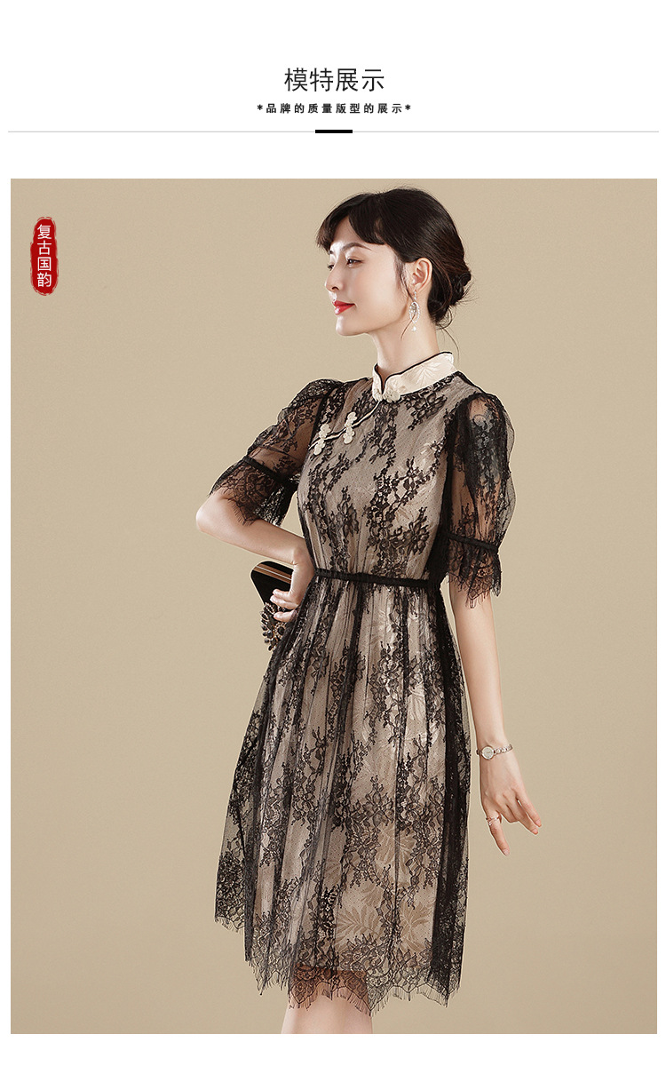 上海旗袍厂AYK-QF210406蕾丝假两件拼接时尚改良旗袍中国风收腰立领连衣裙2021夏女装