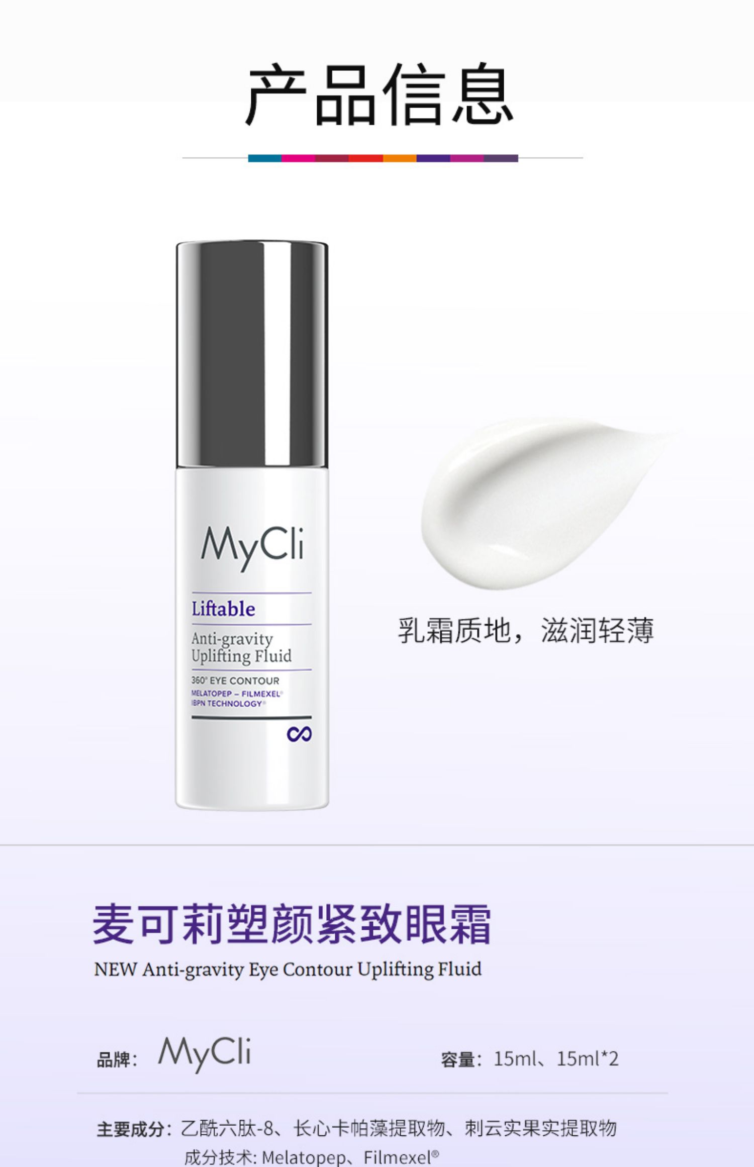 MyClI360反重力抗皱紧致眼霜紧致淡化细纹黑眼圈15ml