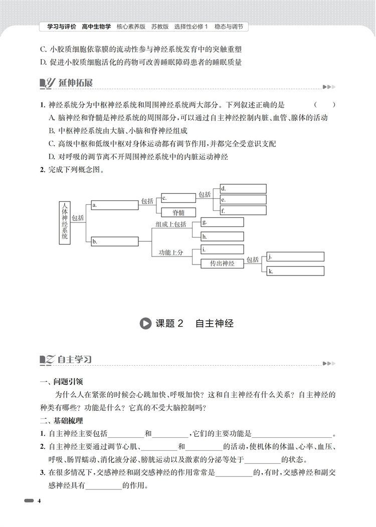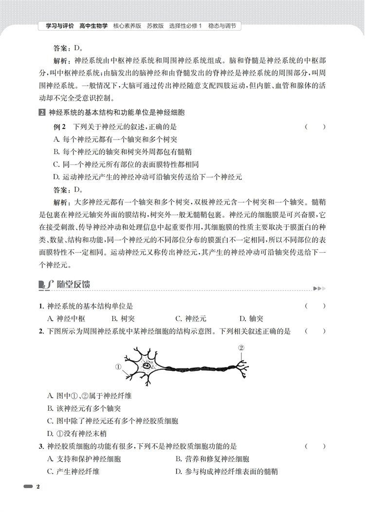 2025年 学习与评价 高中生物学 含答案 苏教版 选择性必修1 中学教辅 学生习题集练习