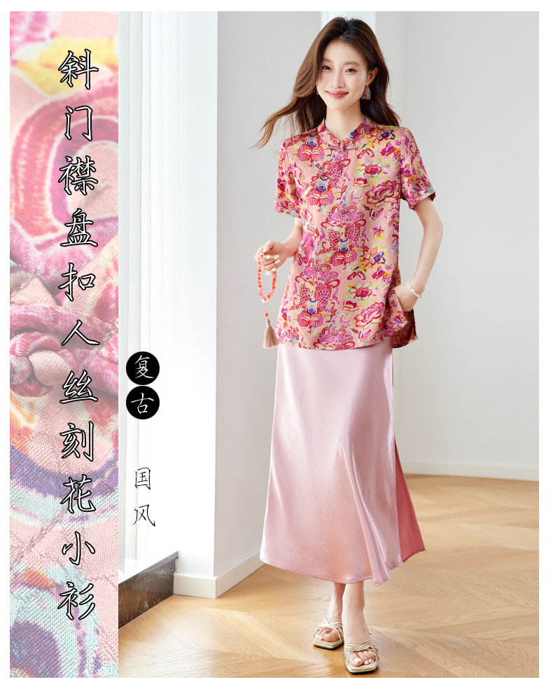 奥黛短袖改良旗袍衬衫,火暴套头刻花上衣HR-XYSP6073