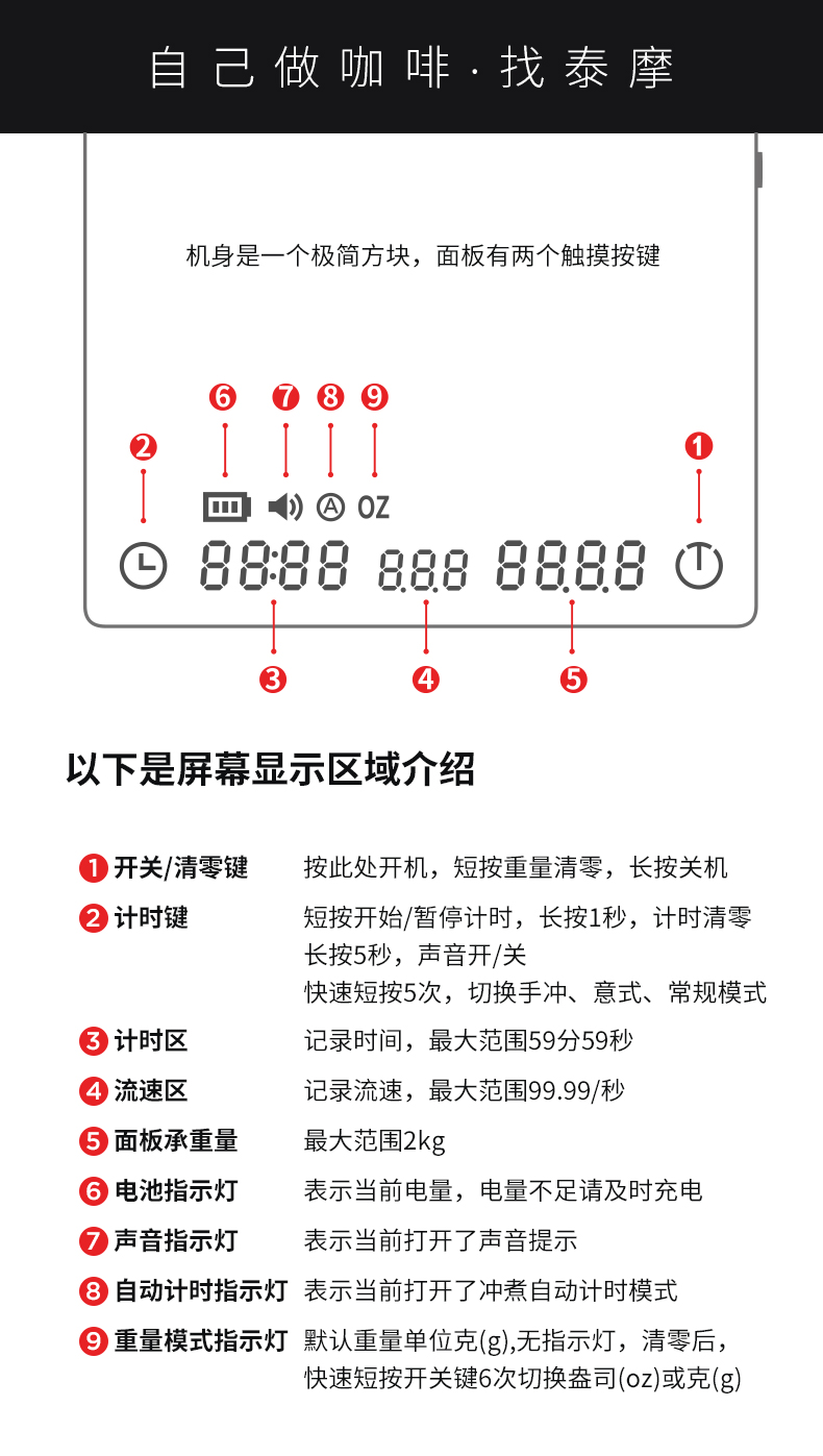 泰摩 黑镜MINI咖啡电子秤迷你智能称重 意式咖啡手冲电子称带流速