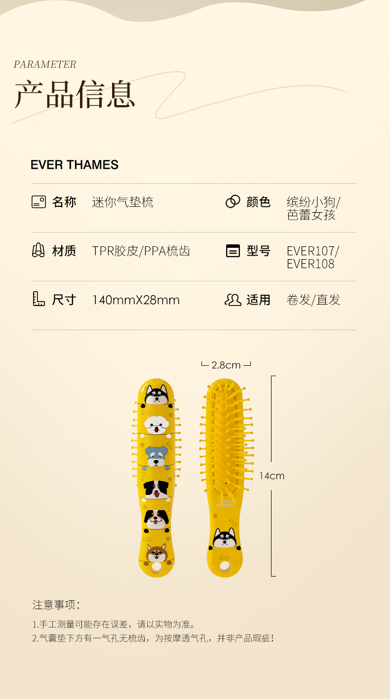 EVER THAMES 蓬松气垫防静电顺发便携手掌梳