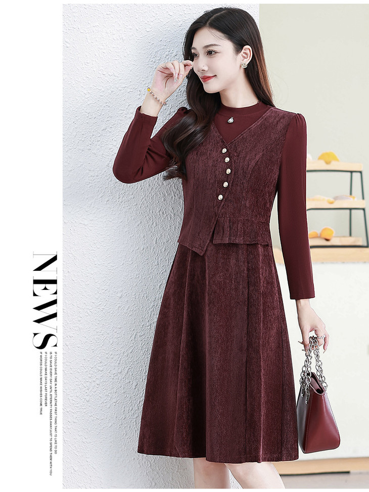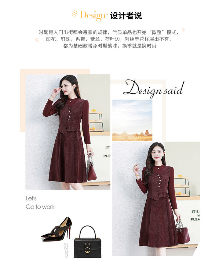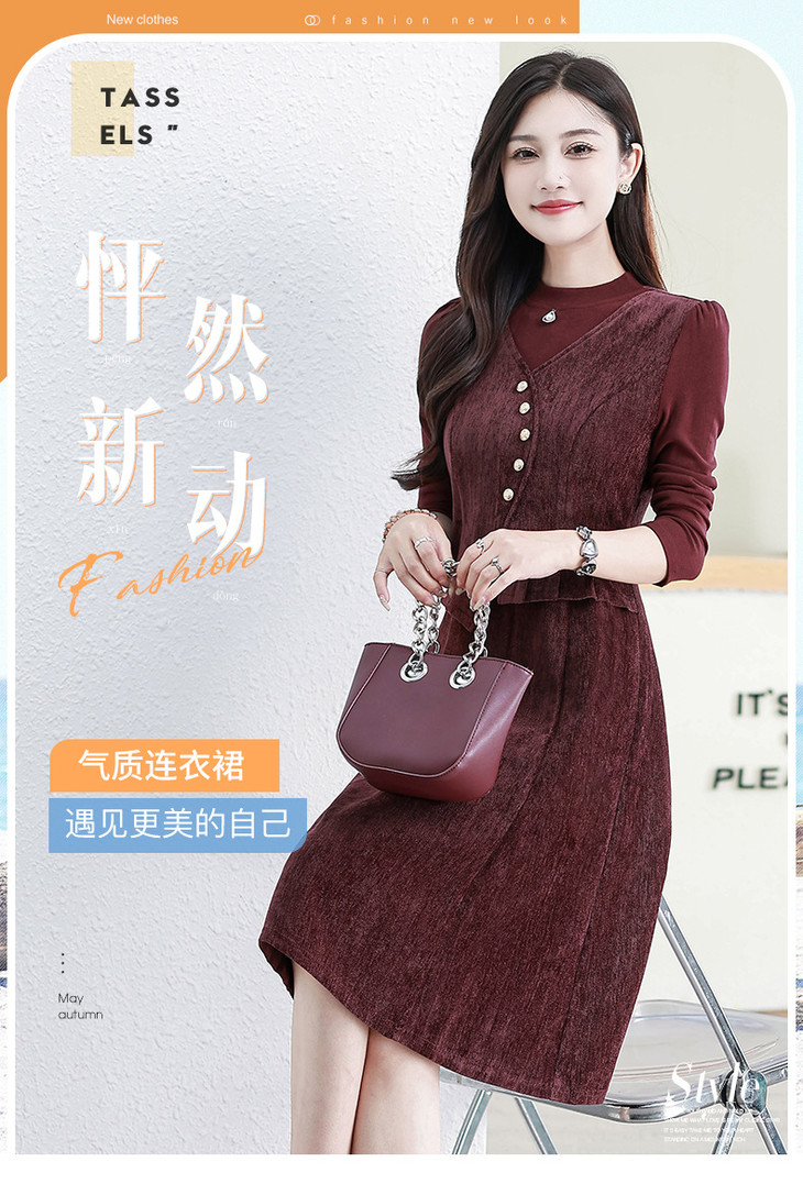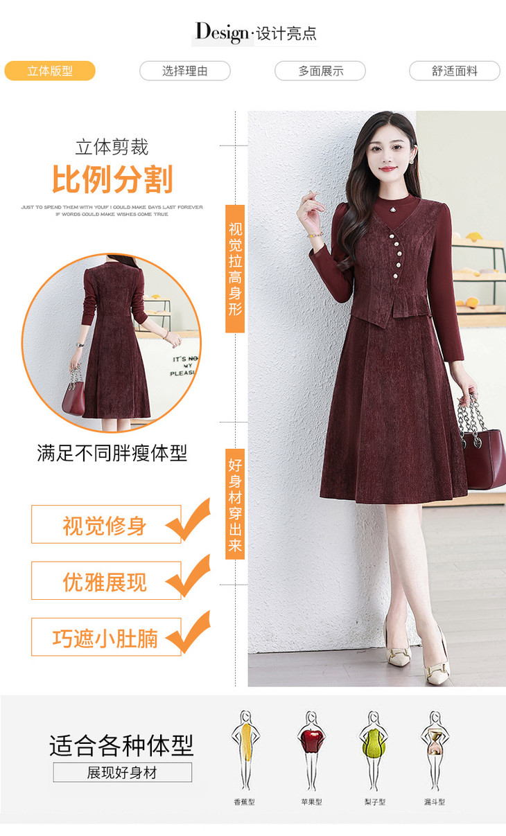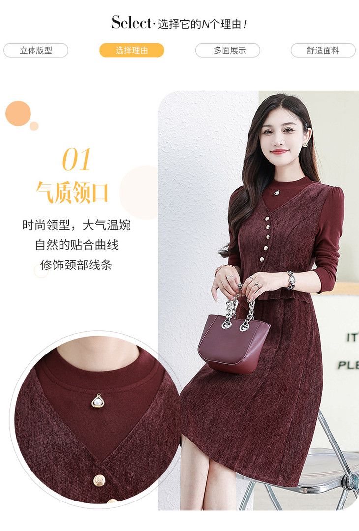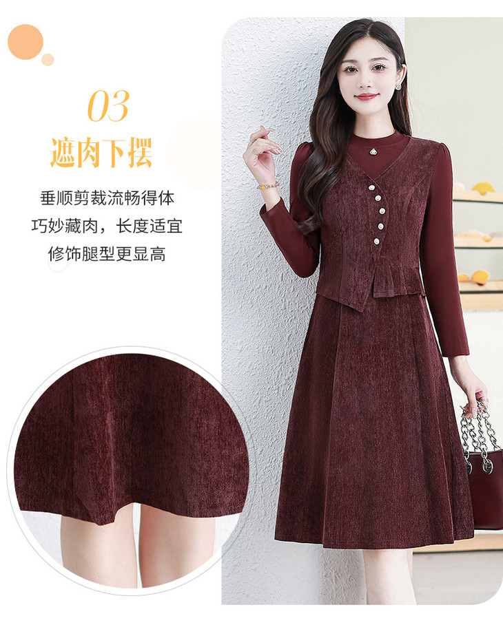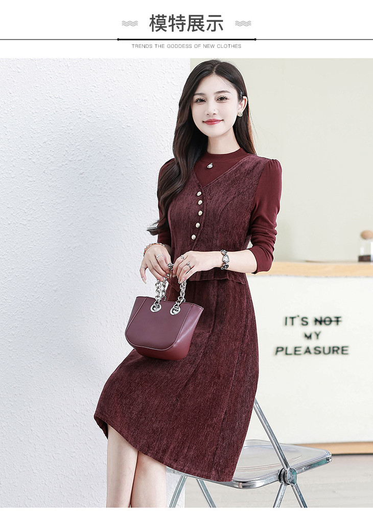 中长款大码假两件连衣裙,韩版修身女装气质a字裙QYM-TYH99H196