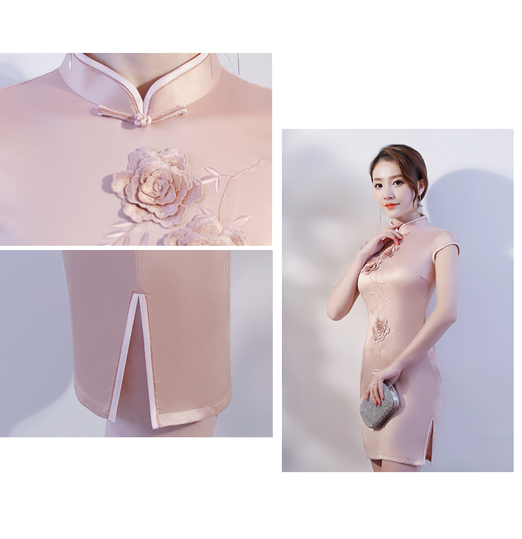WZNH-DDFS8213新款印花图案休闲显瘦修身气质优雅开叉短款旗袍