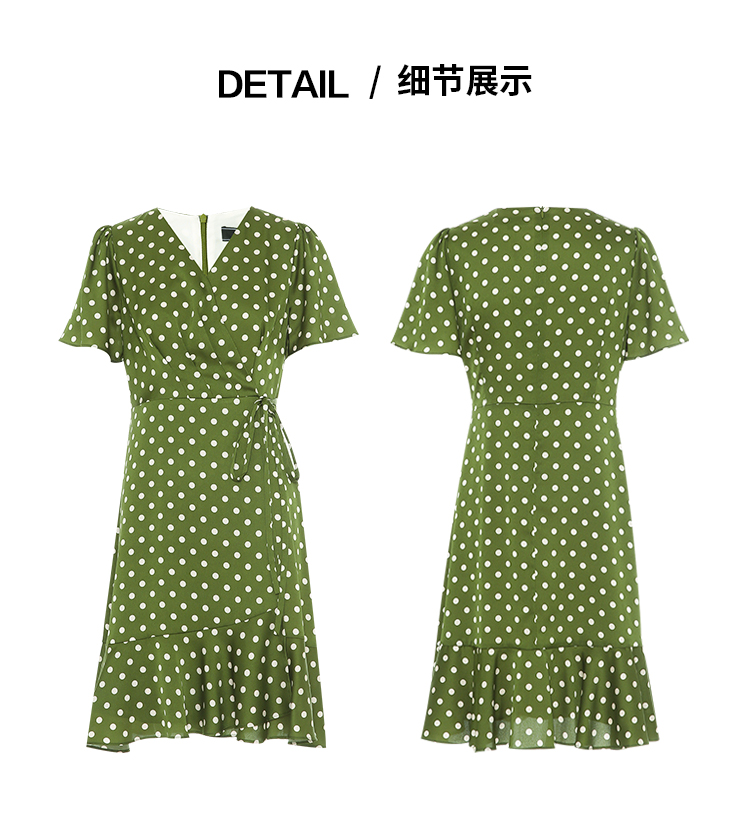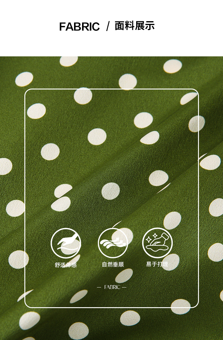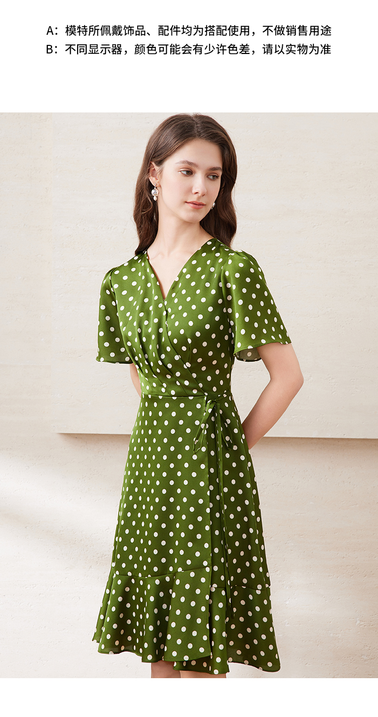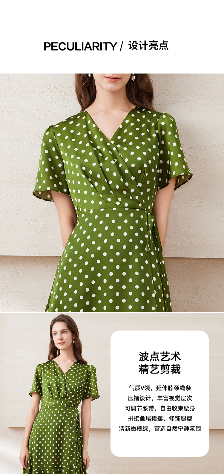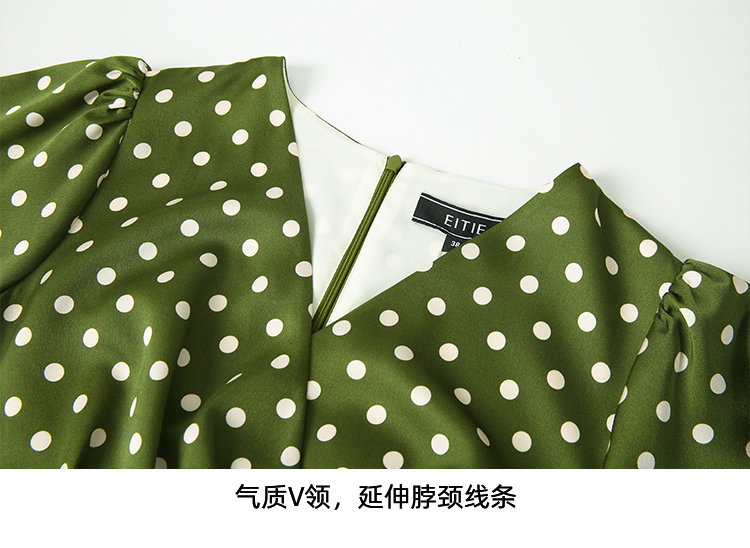 EITIE爱特爱复古绿色波点V领收腰X型显瘦清新连衣裙2025夏季新款B2507616