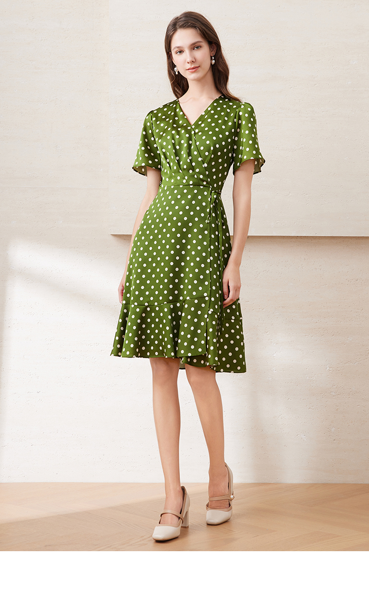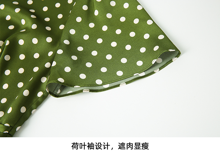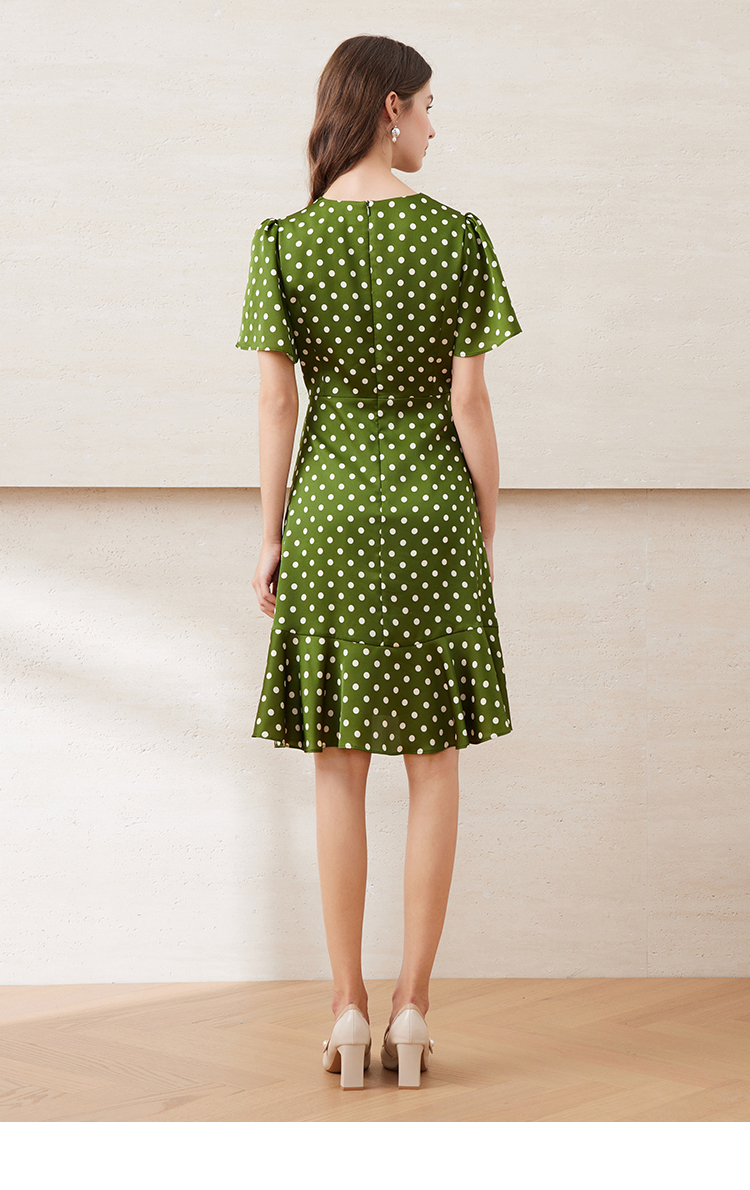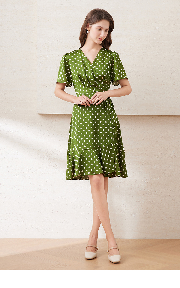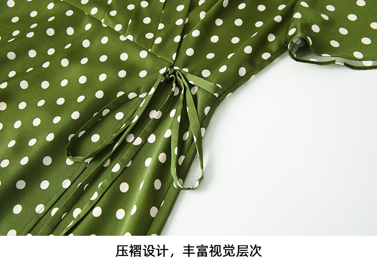 EITIE爱特爱复古绿色波点V领收腰X型显瘦清新连衣裙2025夏季新款B2507616
