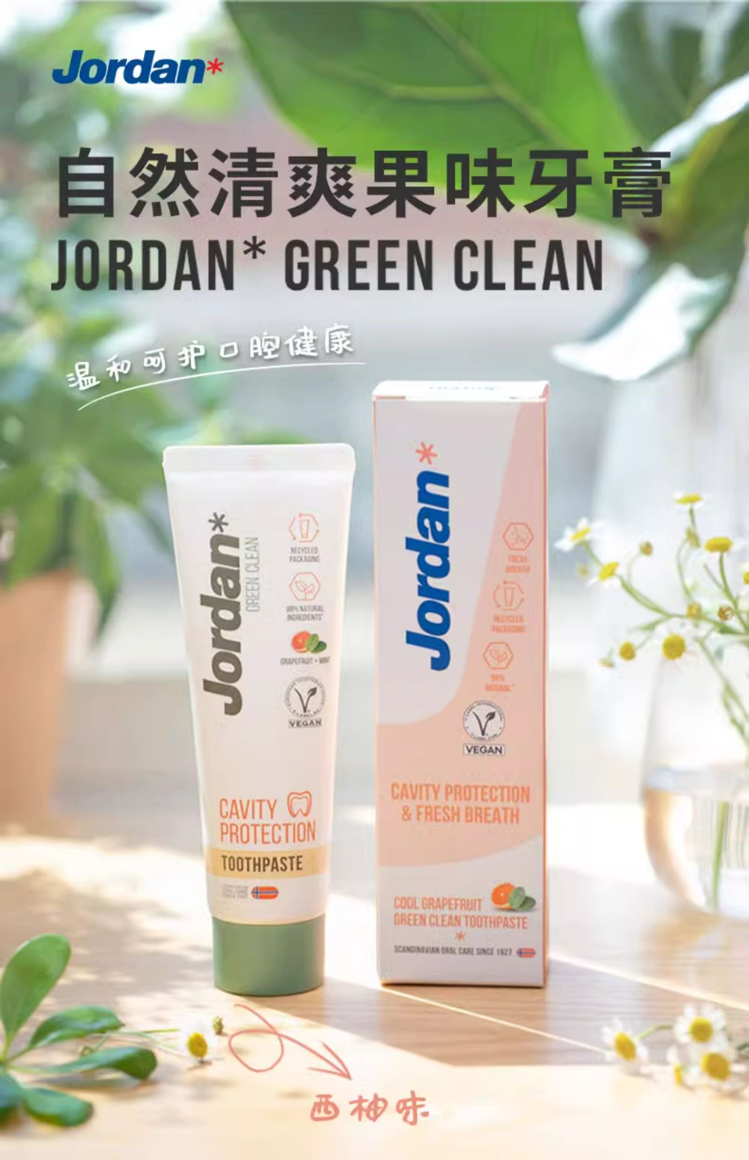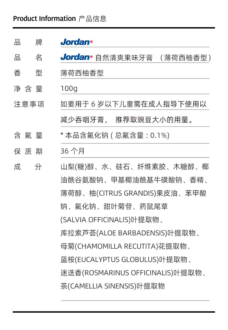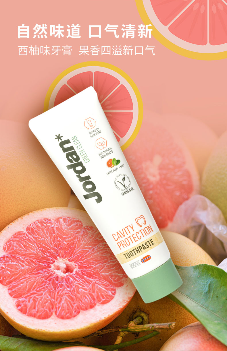 挪威Jordan自然清爽成人牙膏薄荷西柚味