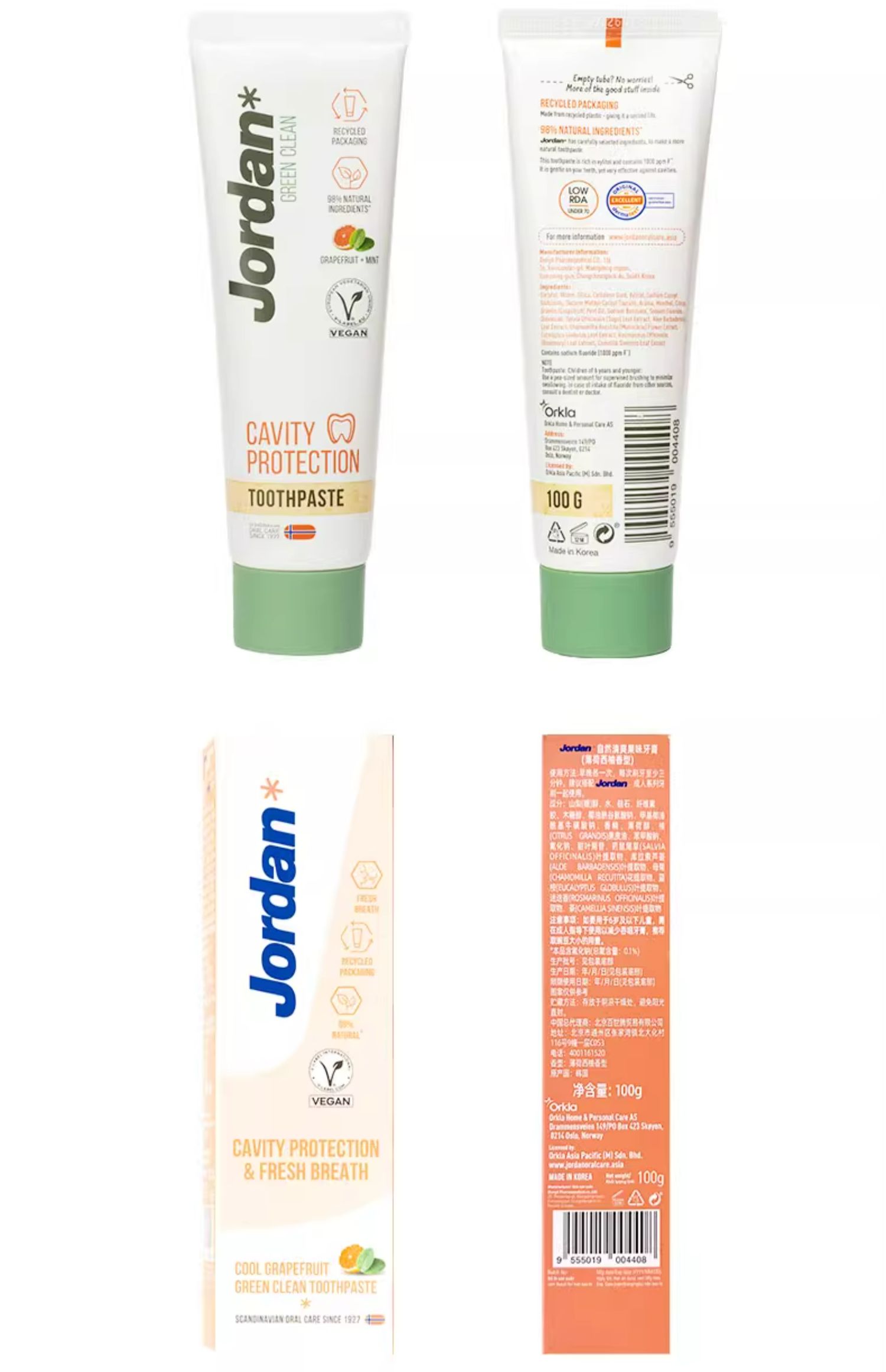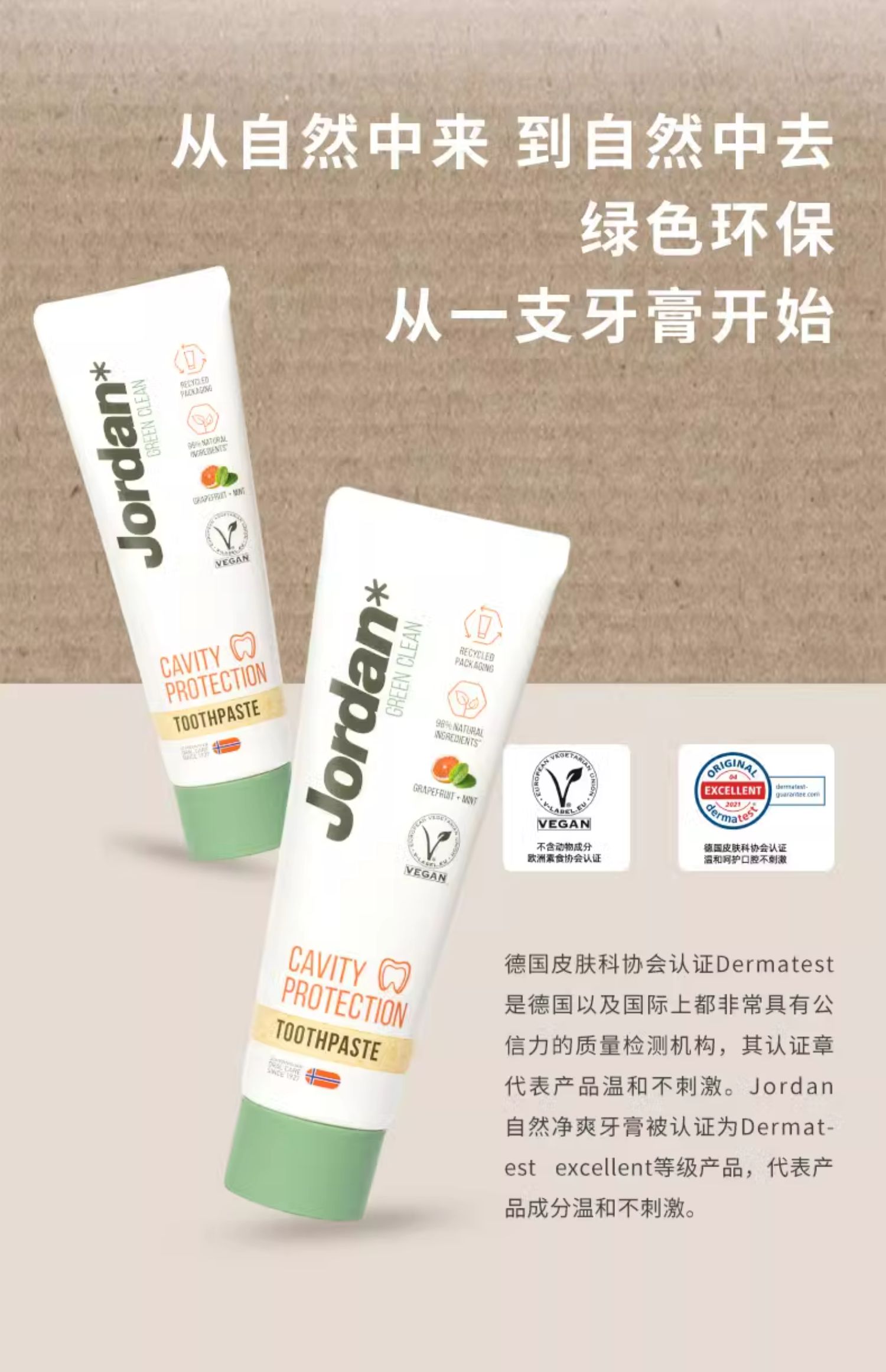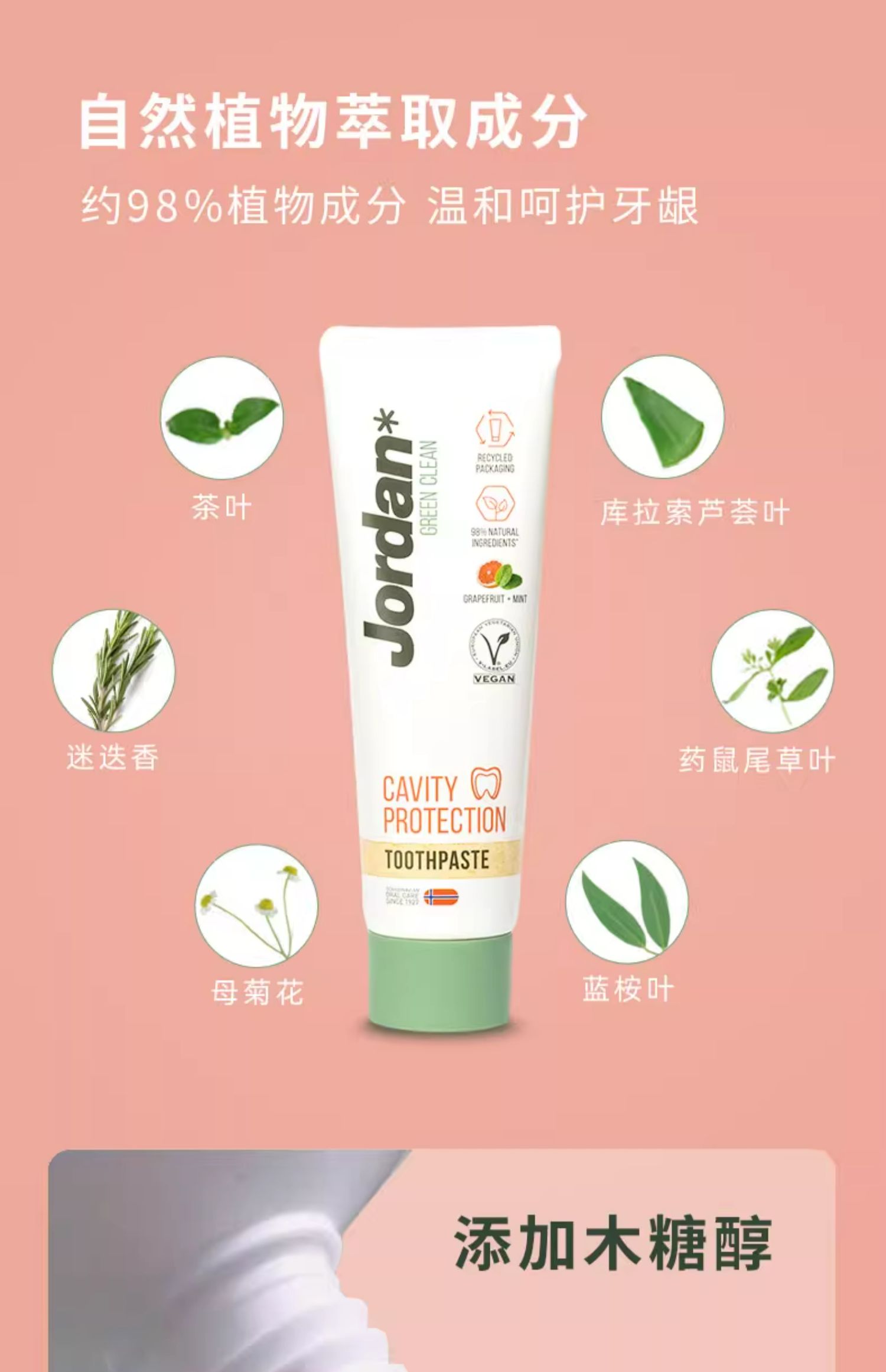 挪威Jordan自然清爽成人牙膏薄荷西柚味
