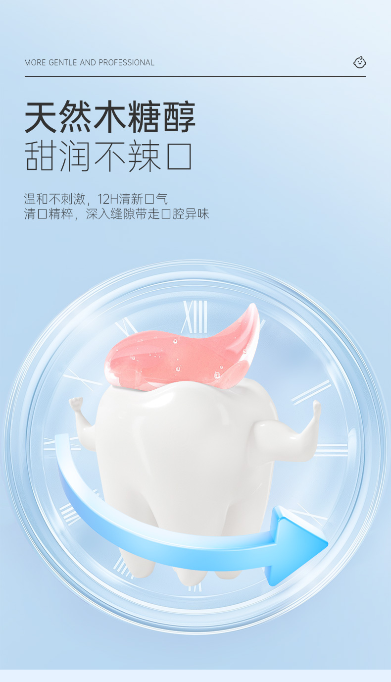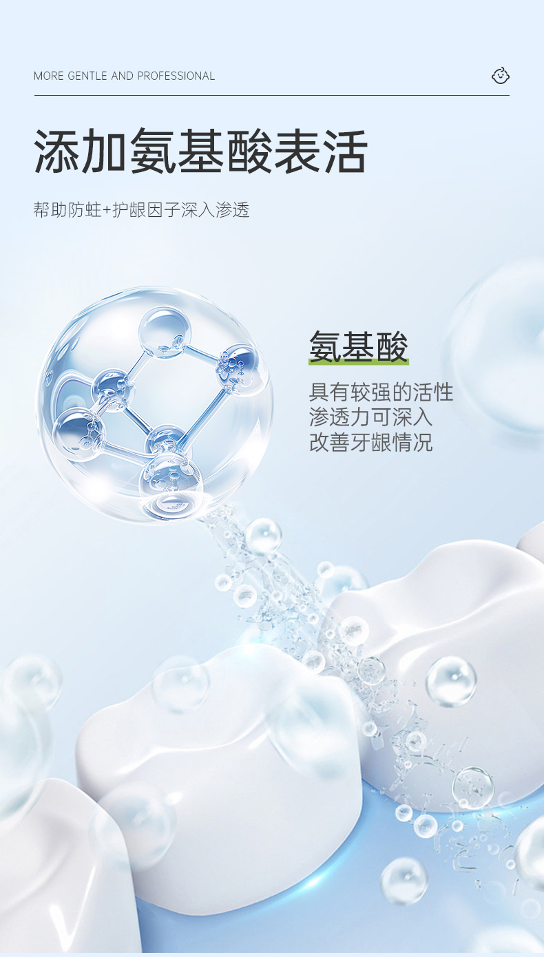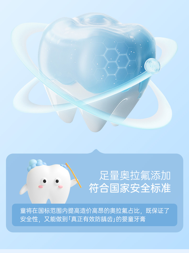 含氟量在标准范围内,不含对口腔造成刺激的表面活性剂,安全性优秀