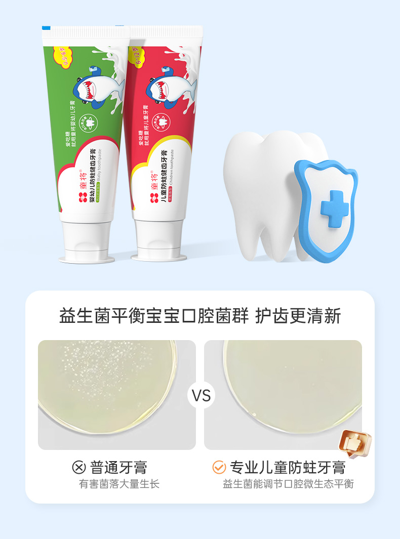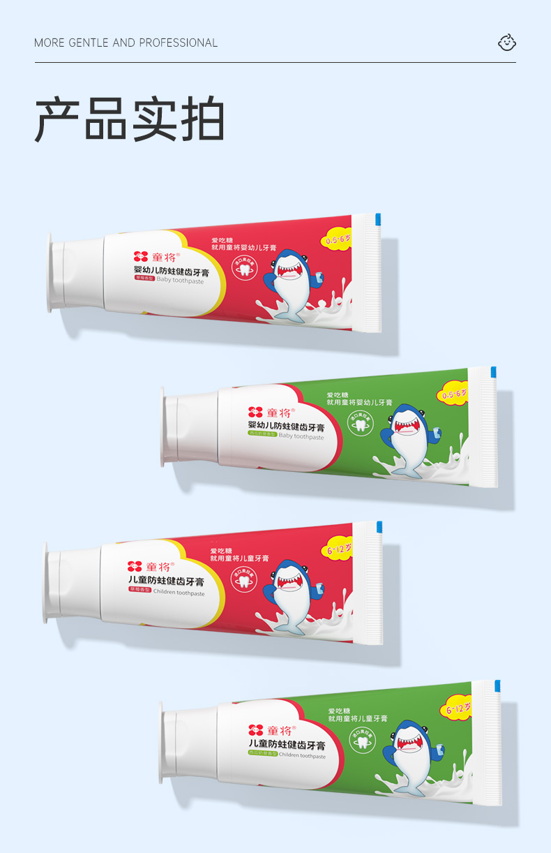 摩擦剂是水合硅石,不易对牙齿造成磨损,适合刚长牙的婴幼儿